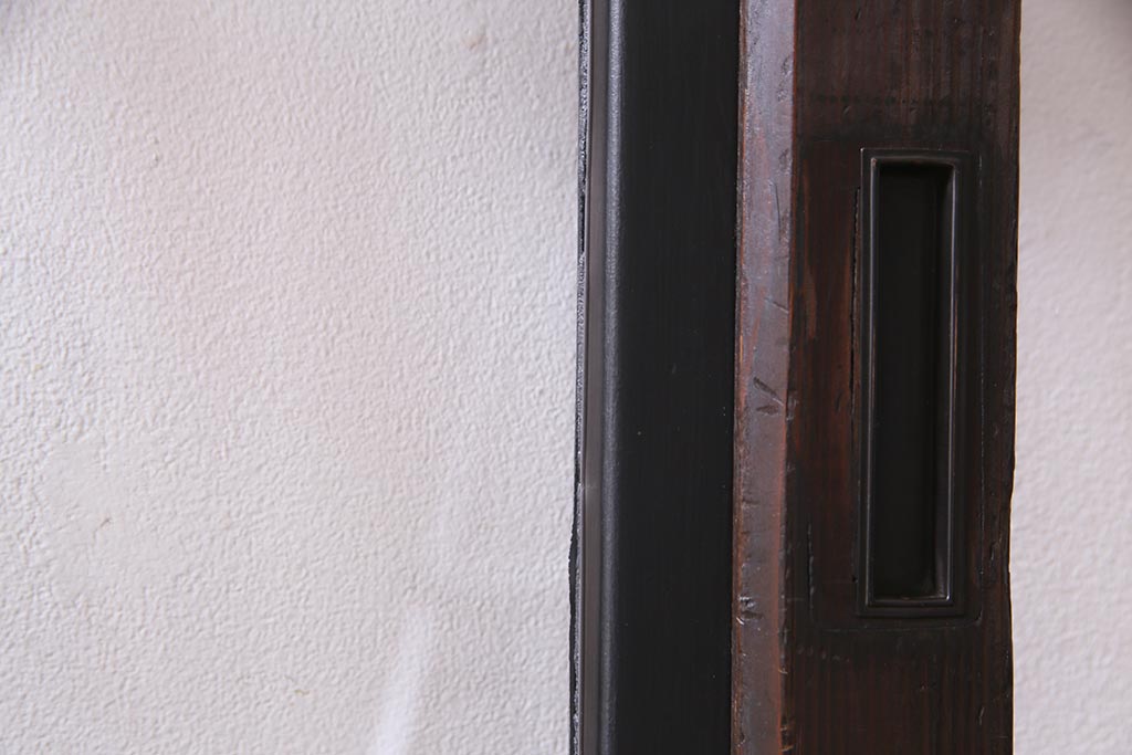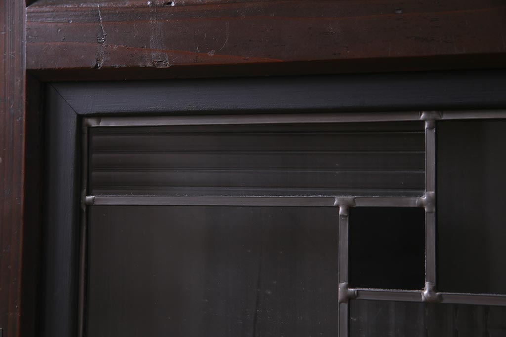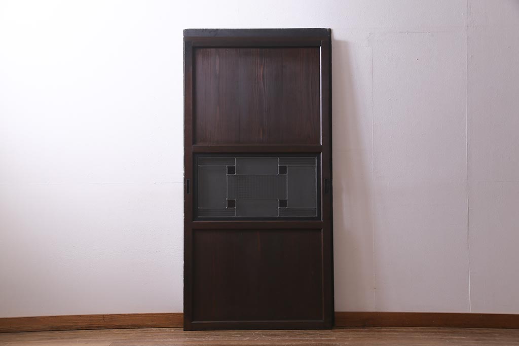 ドア・建具> 引き戸 > アンティーク建具 明治大正期 チェッカーガラス・モールガラス・色ガラス ステンドグラスがお洒落な板戸1枚(建具、ガラス帯戸、引き戸)(R-037577)