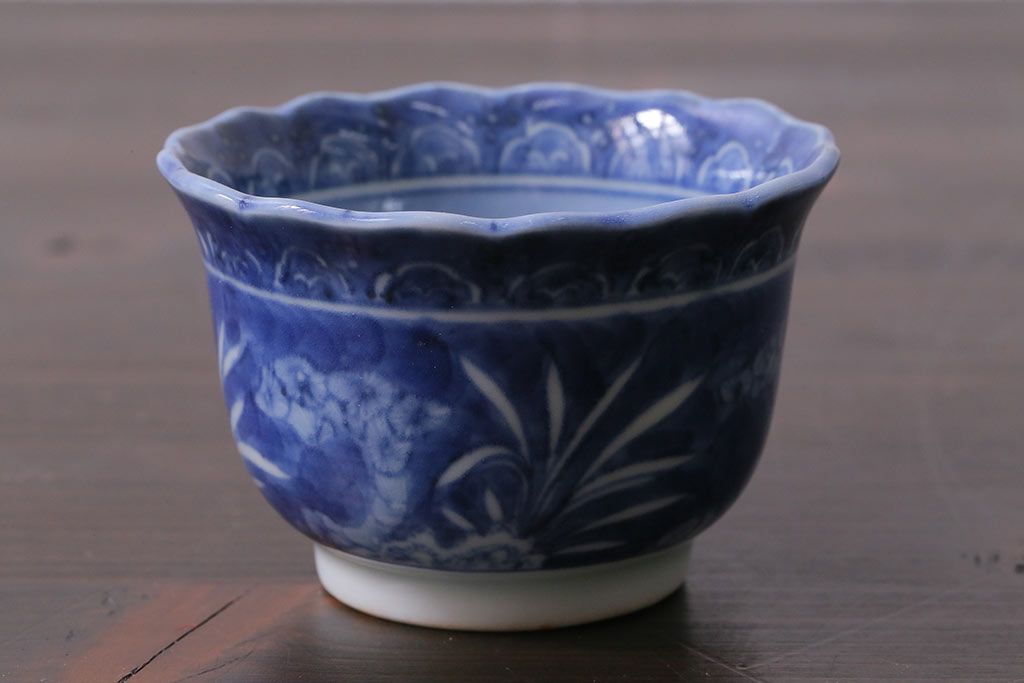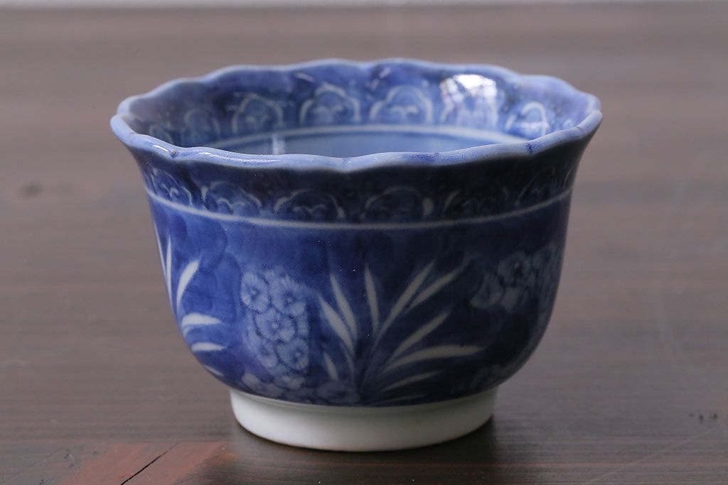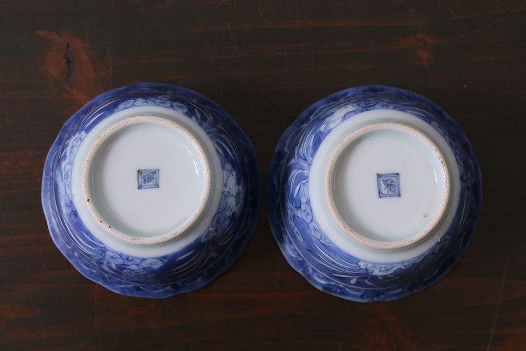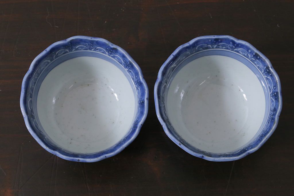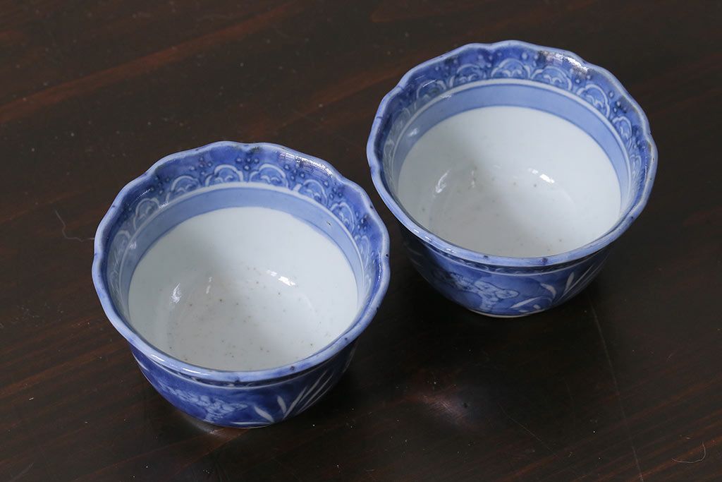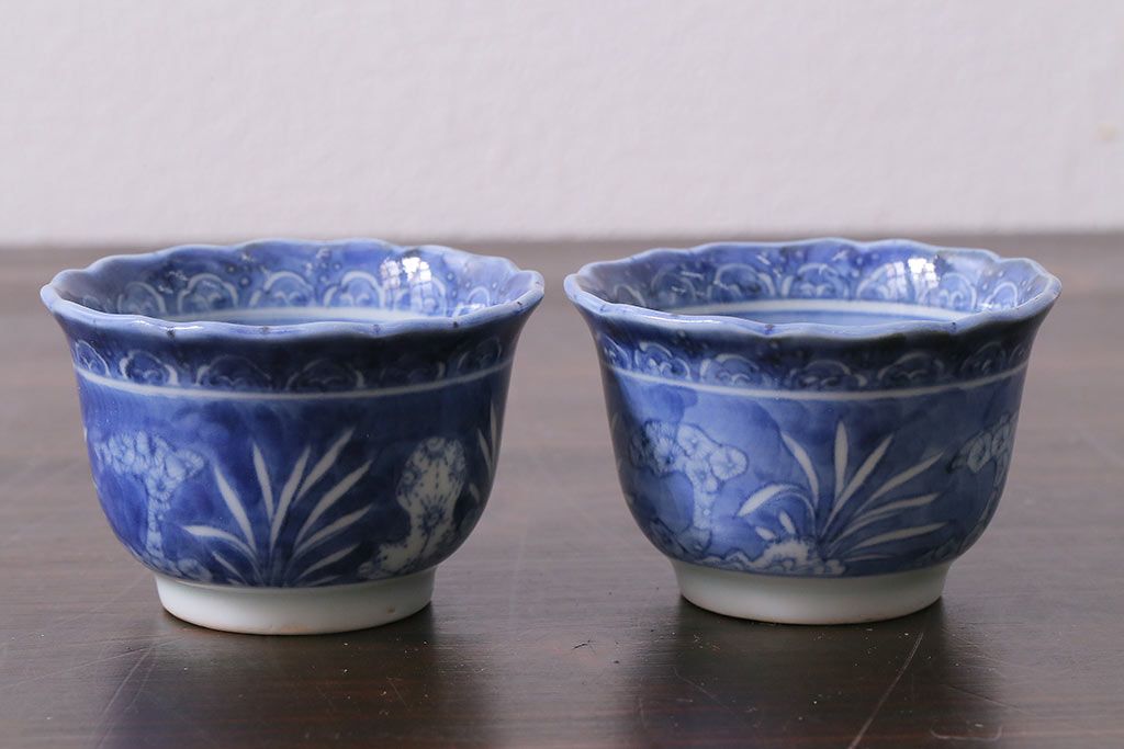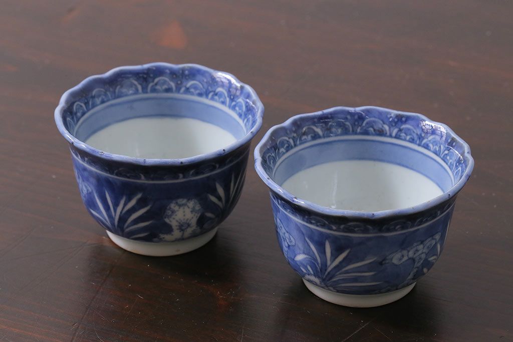 アンティーク雑貨 江戸期 古伊万里 染付 湯呑2客セット(向付、蕎麦猪口)(R-037236)
