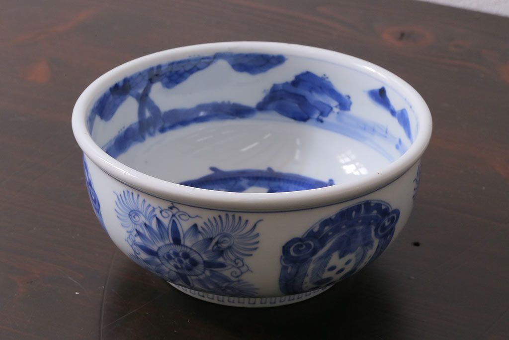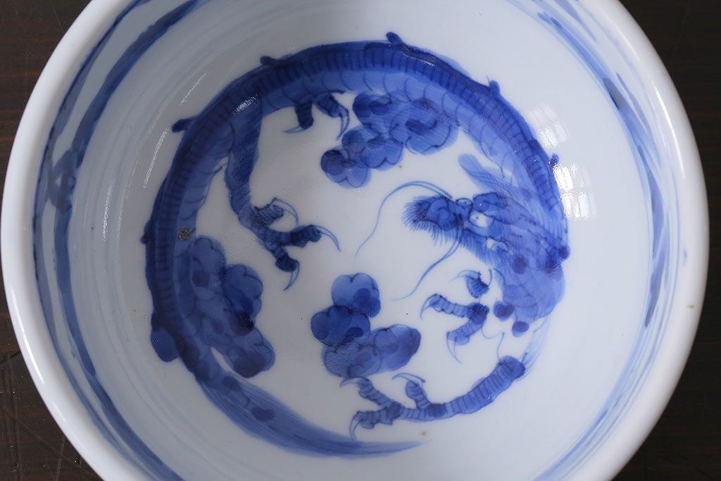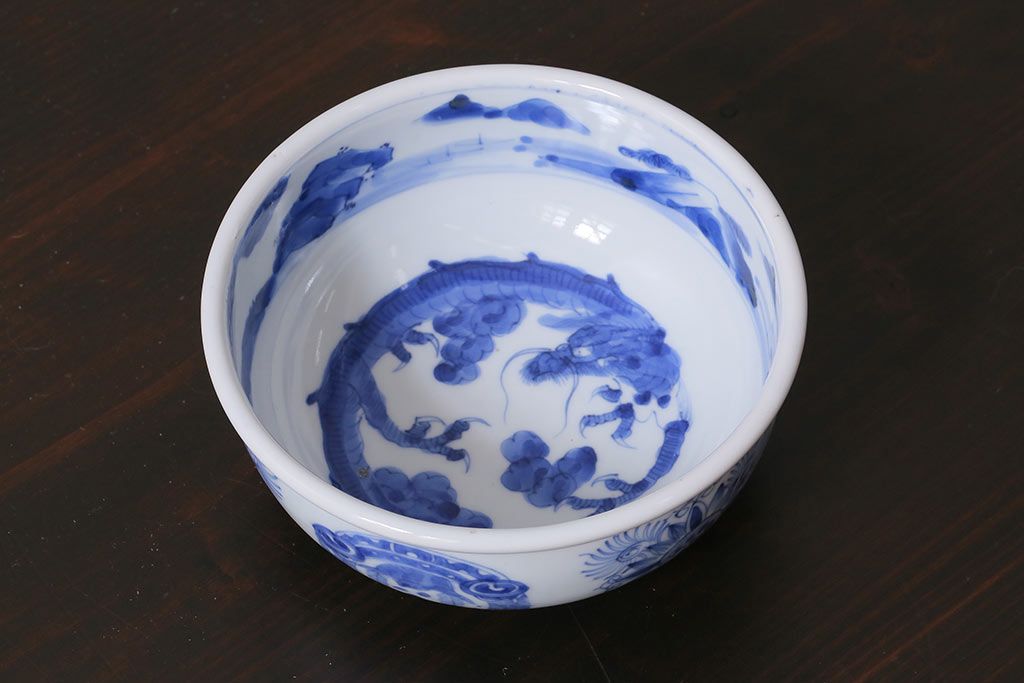 ラフジュ工房> 骨董・美術品> 骨董-陶磁器 > アンティーク雑貨 江戸期 古伊万里 染付 雲龍文 深鉢(深皿)(R-037294)