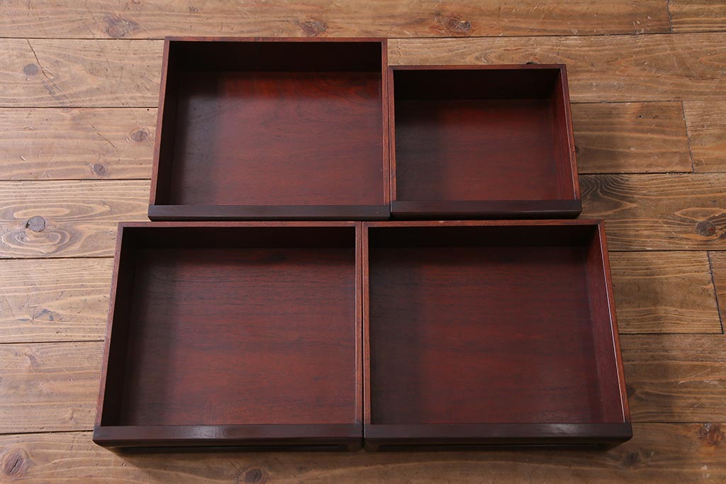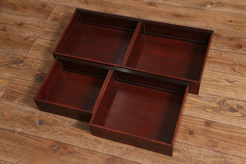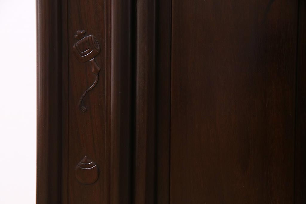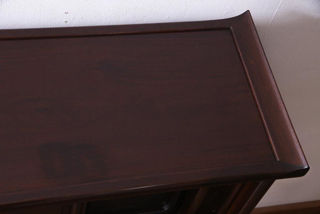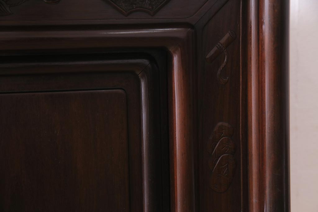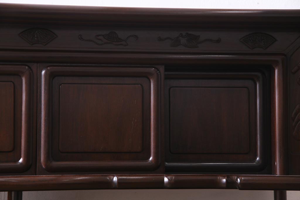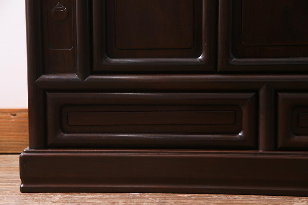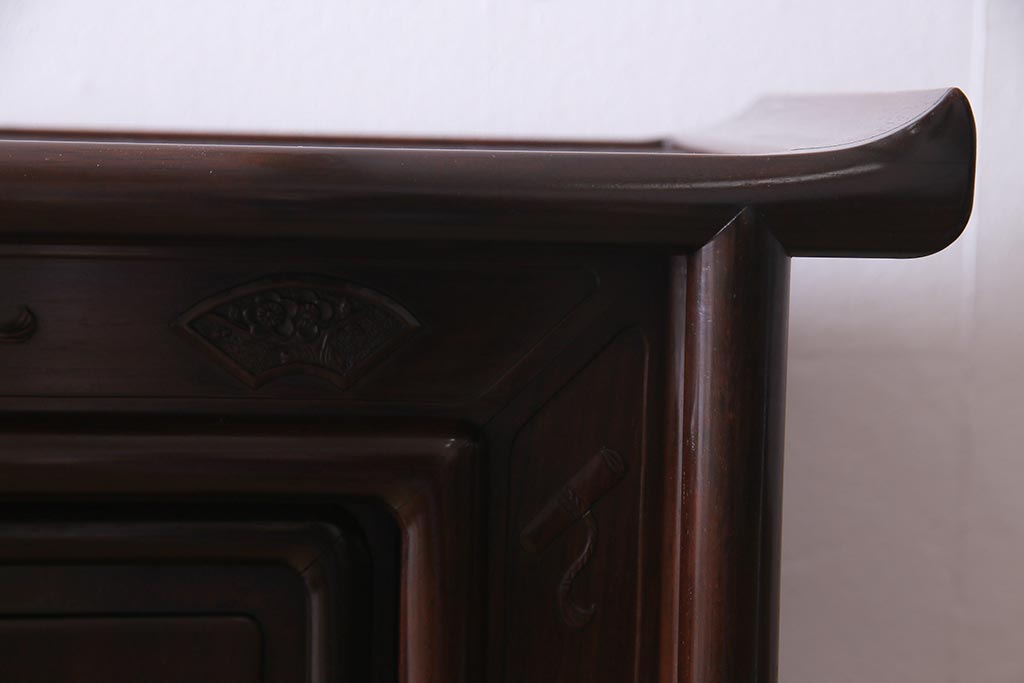 和箪笥 > 中古 伝統工芸品 大阪唐木指物 在銘 紫檀(シタン)材 漆塗り 縁起物の彫りが目を引く飾り棚(違い棚、茶棚)(R-037558)