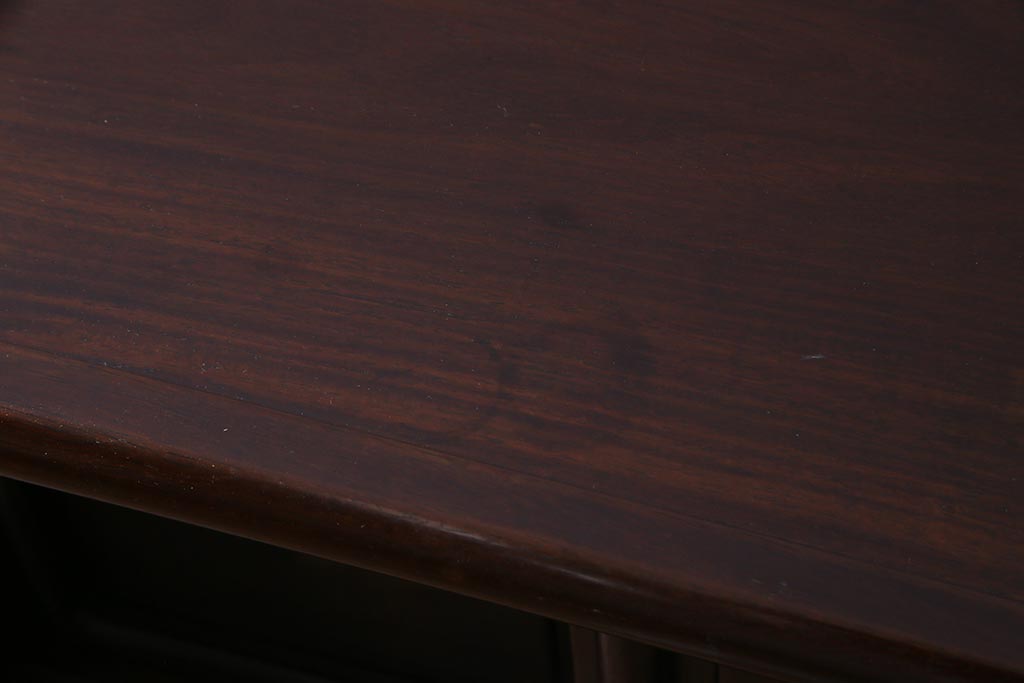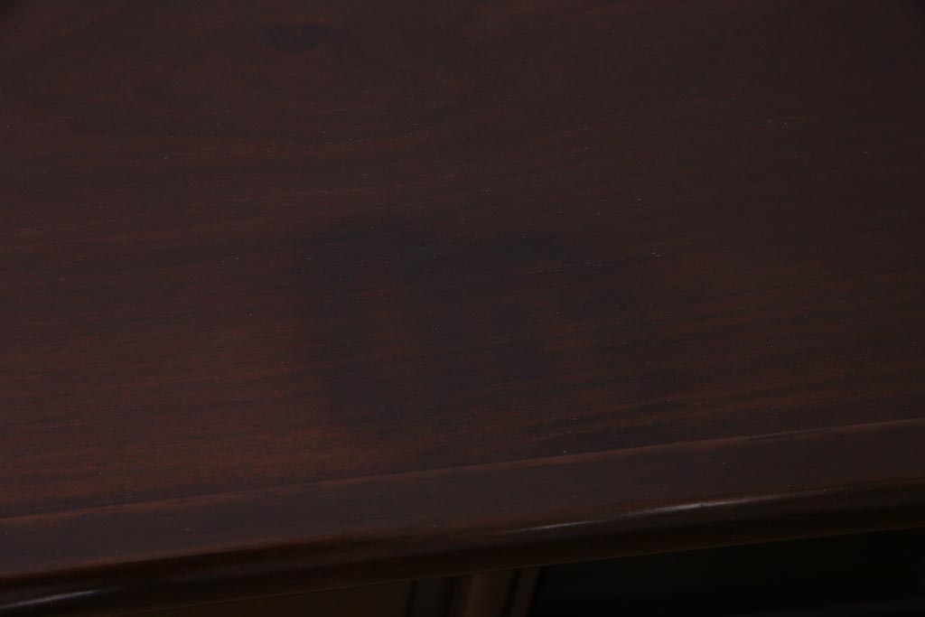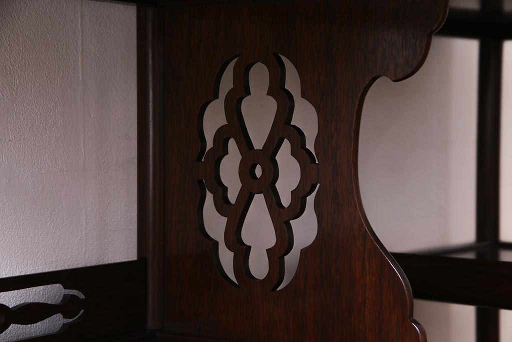 オープンラック・シェルフ > 中古 伝統工芸品 大阪唐木指物 在銘 紫檀(シタン)材 漆塗り 縁起物の彫りが目を引く飾り棚(違い棚、茶棚)(R-037558)