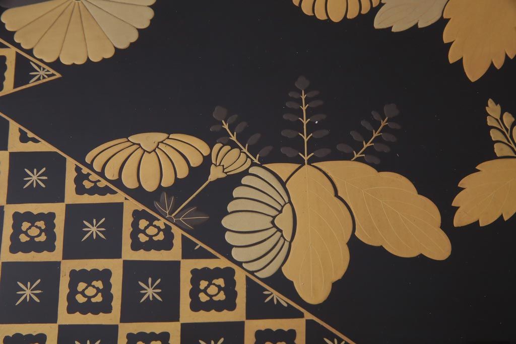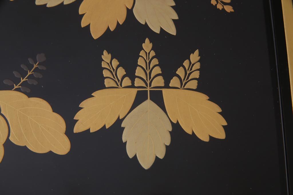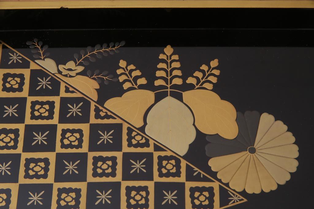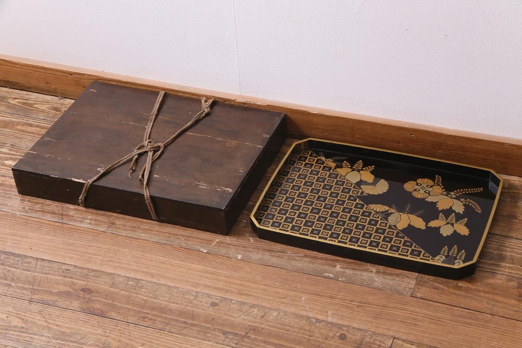 ラフジュ工房> 骨董・美術品> 骨董-漆器 > アンティーク雑貨 黒漆 桐文 金蒔絵 木製盆(漆器)