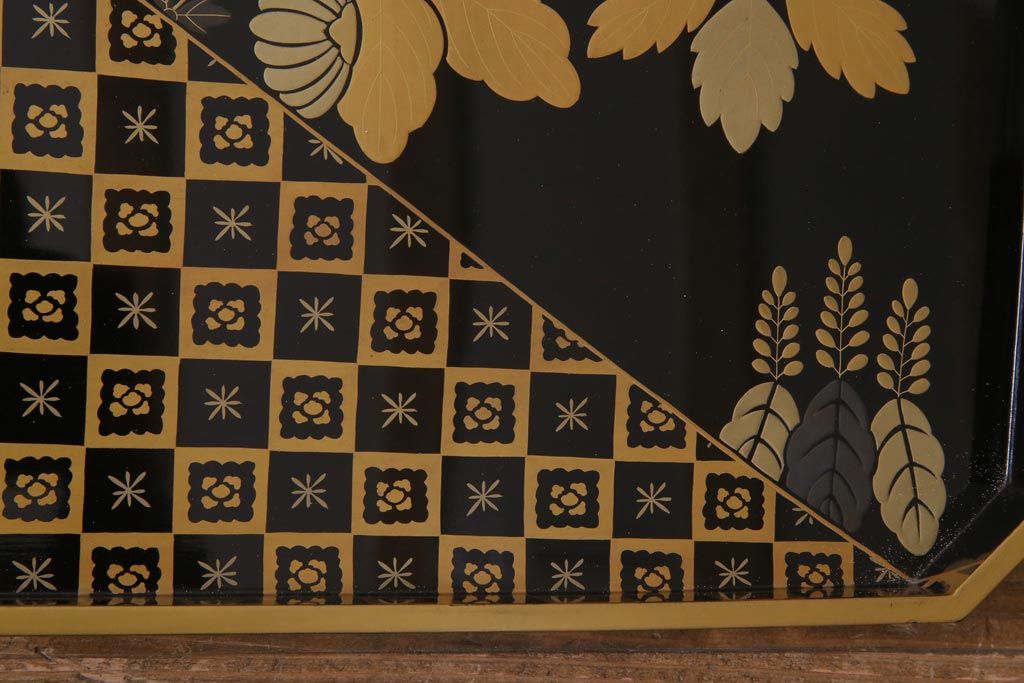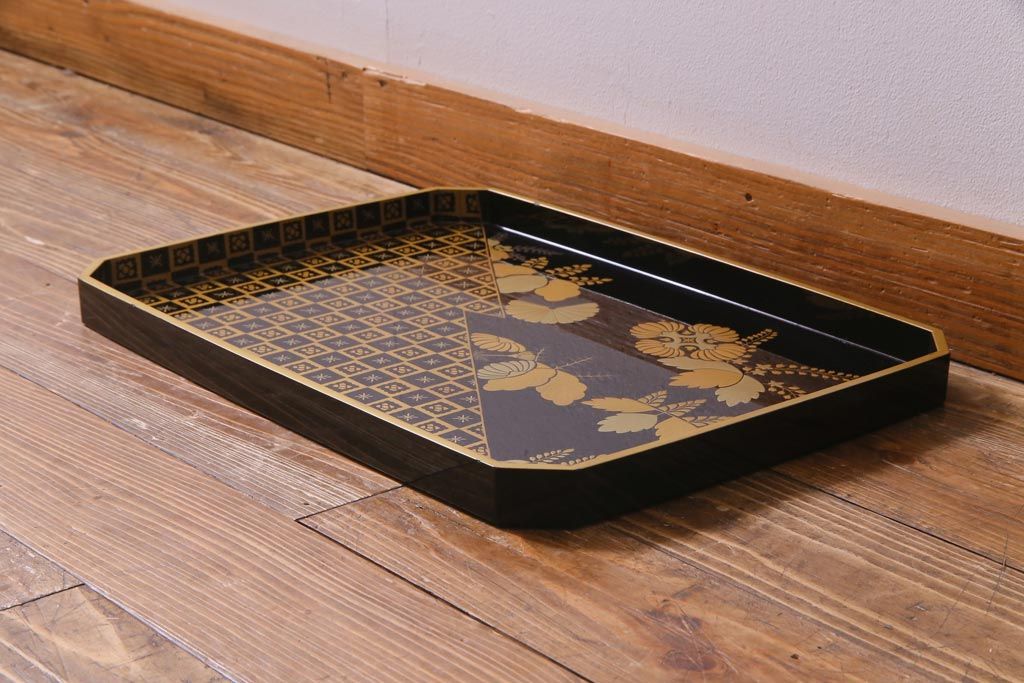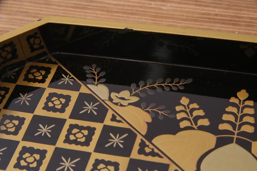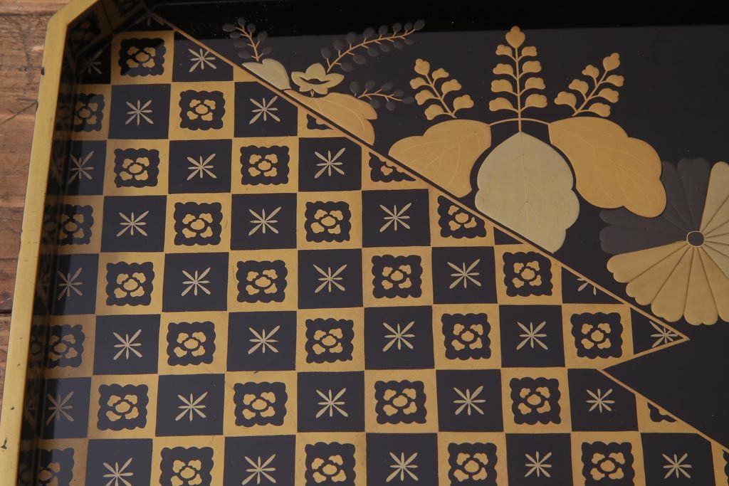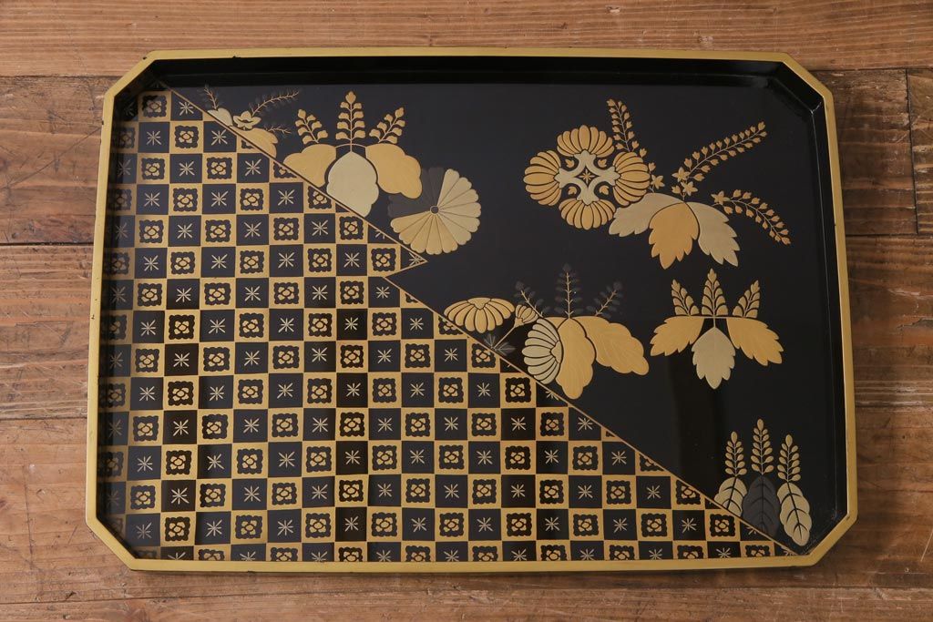 ラフジュ工房> 和食器・茶道具> お盆・お膳・お重 > アンティーク雑貨 黒漆 桐文 金蒔絵 木製盆(漆器)