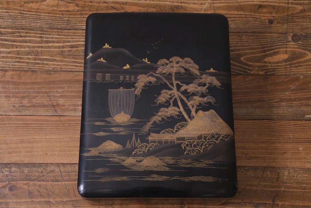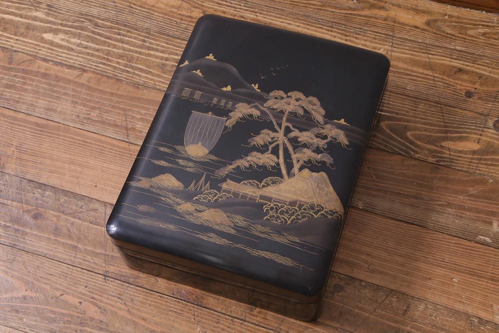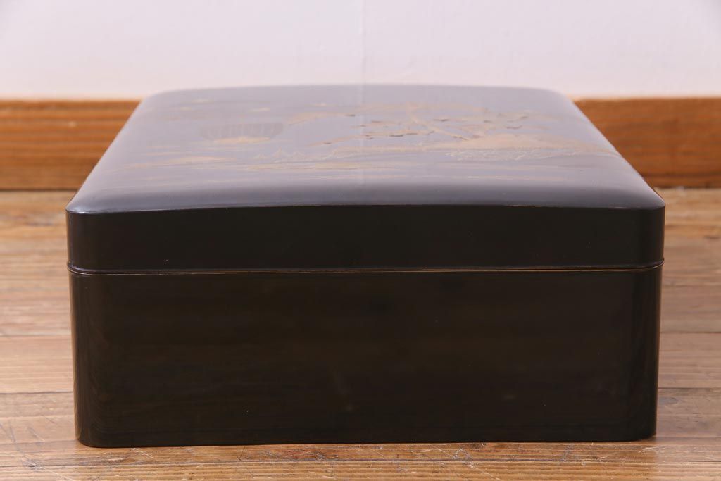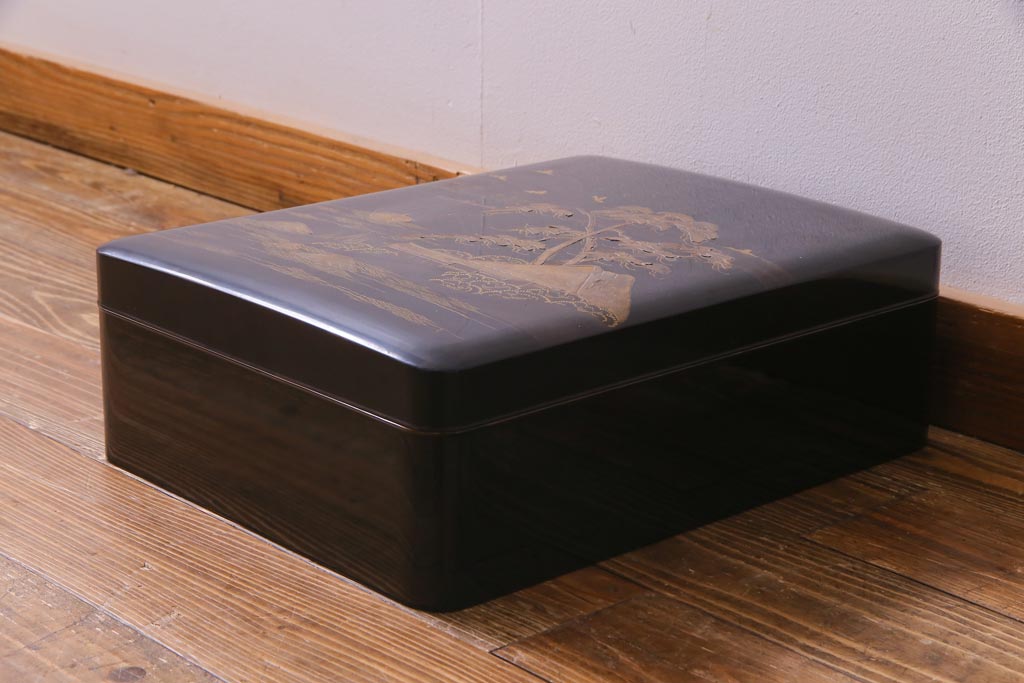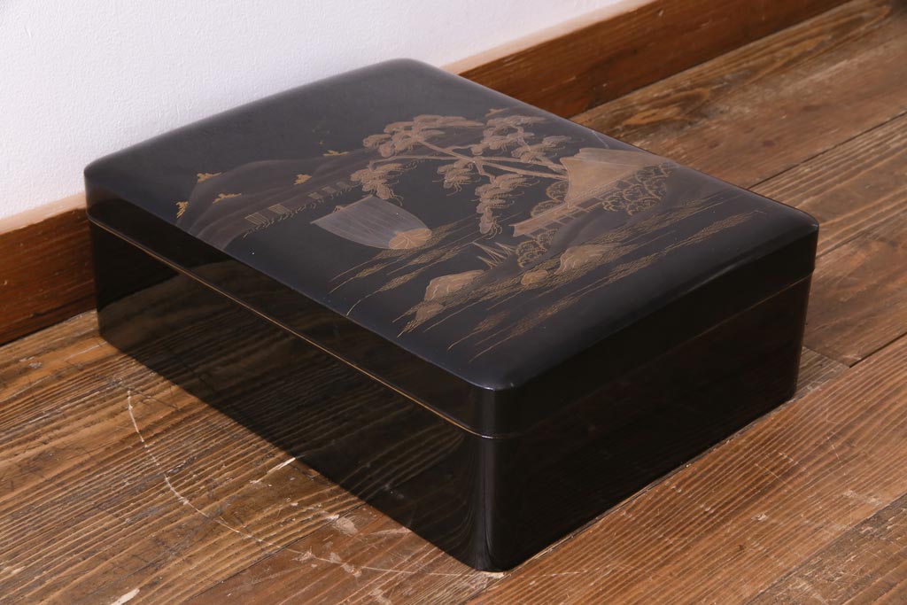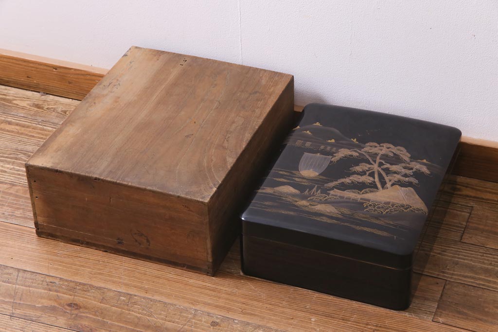 アンティーク雑貨 明治十年 黒塗梨地 金蒔絵 木製文箱(漆器硯箱)