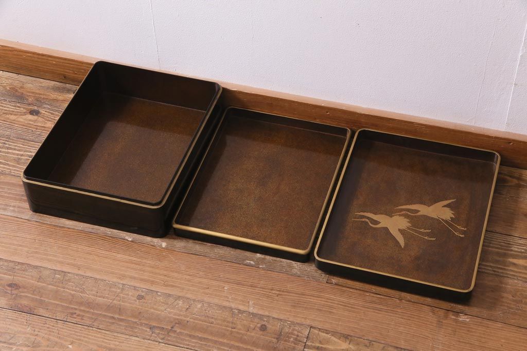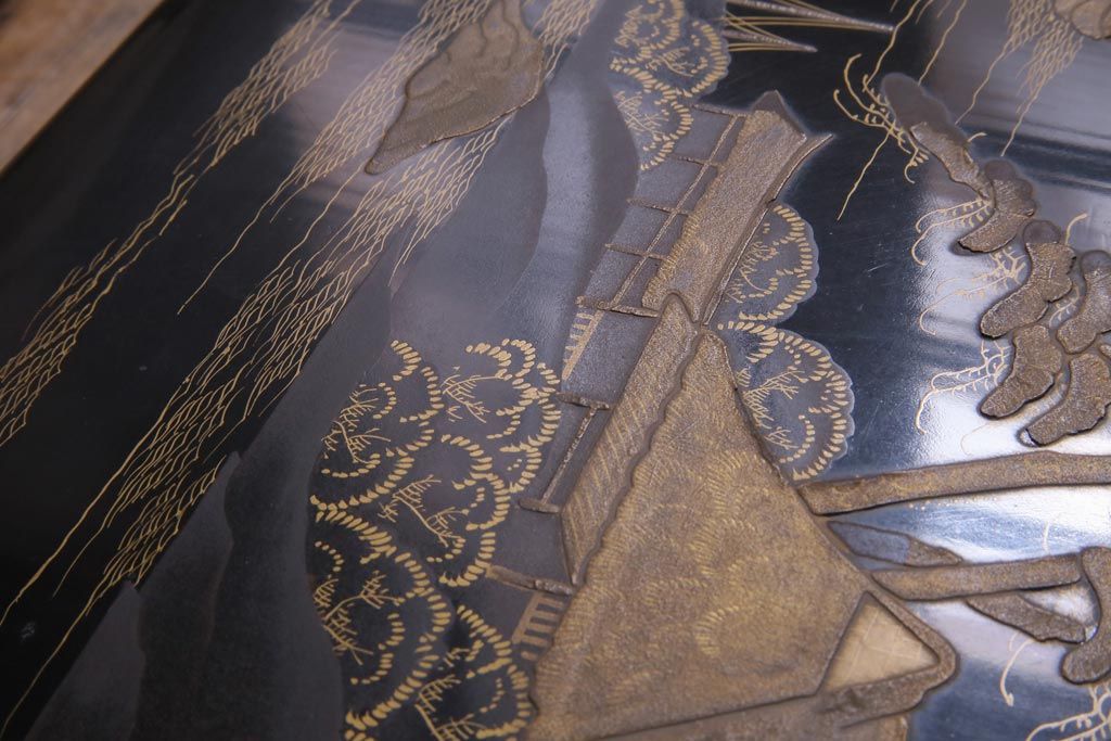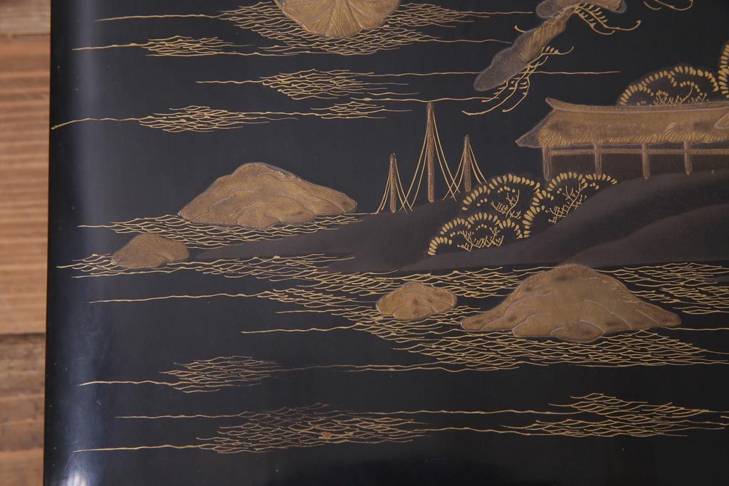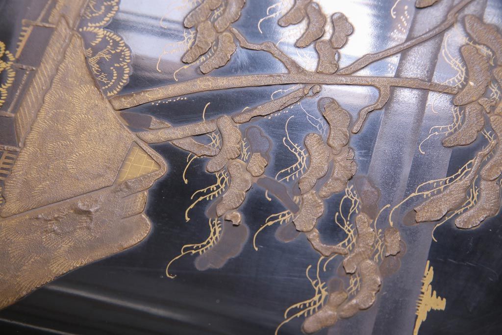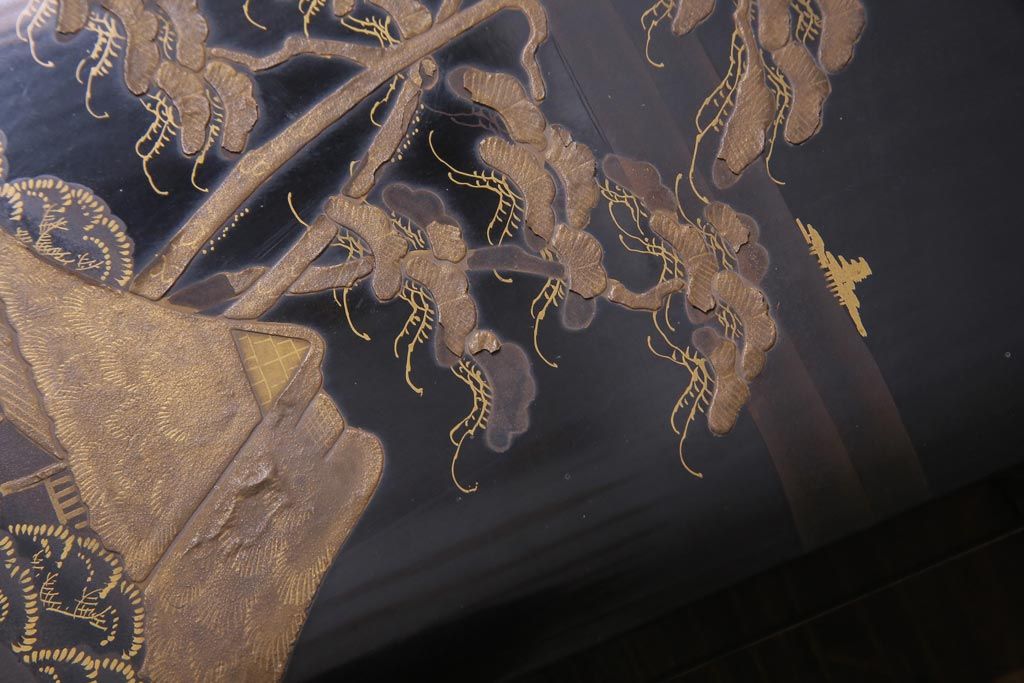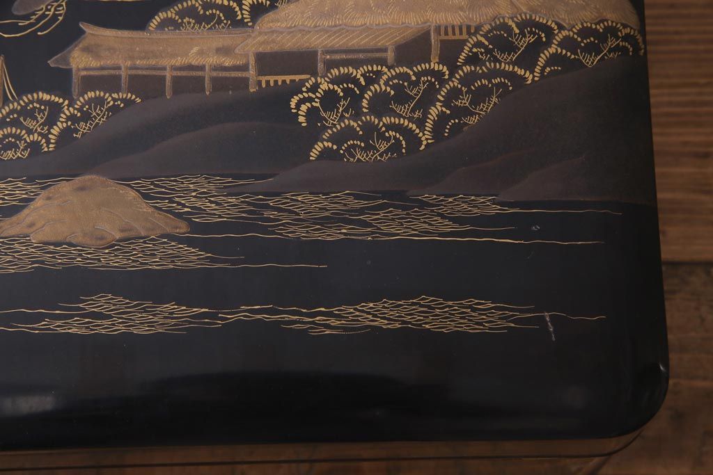 アンティーク雑貨 明治十年 黒塗梨地 金蒔絵 木製文箱(漆器硯箱)