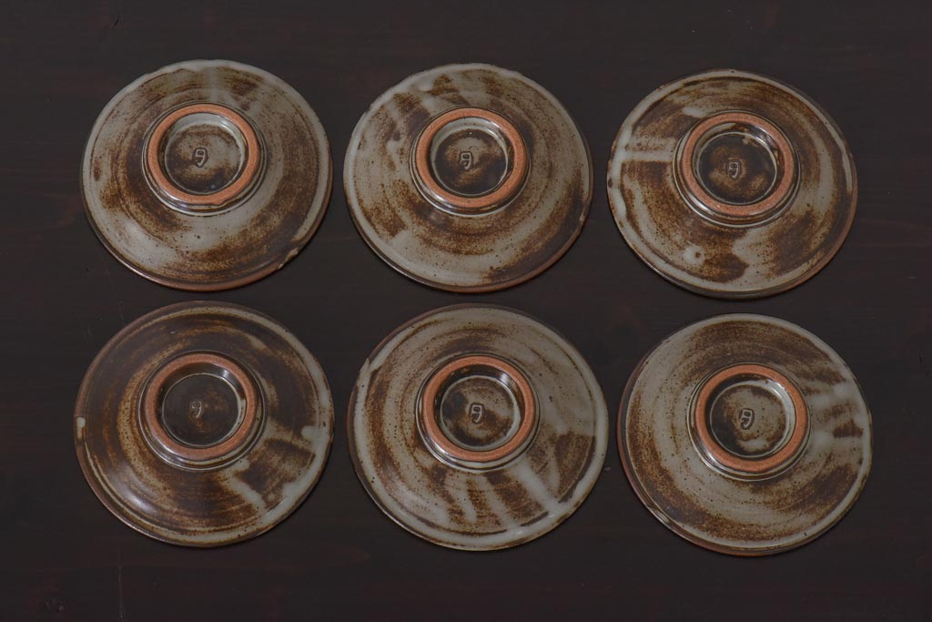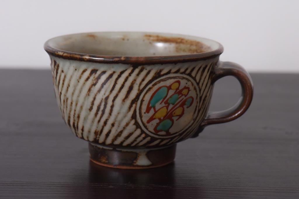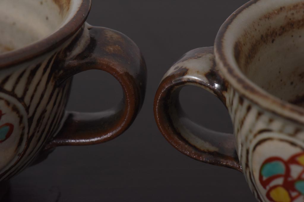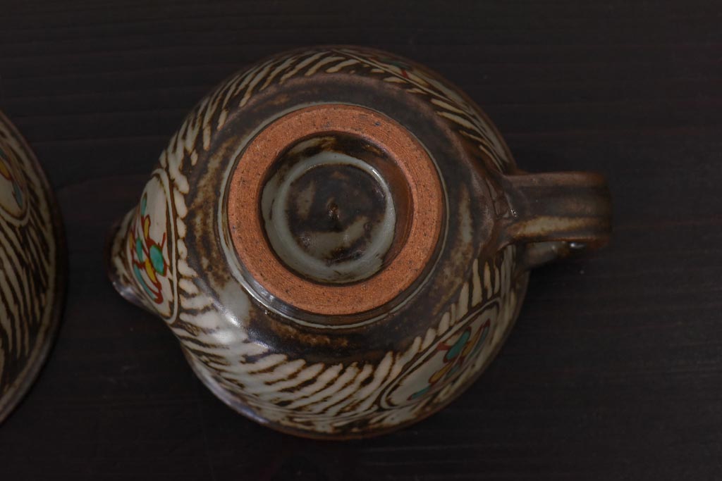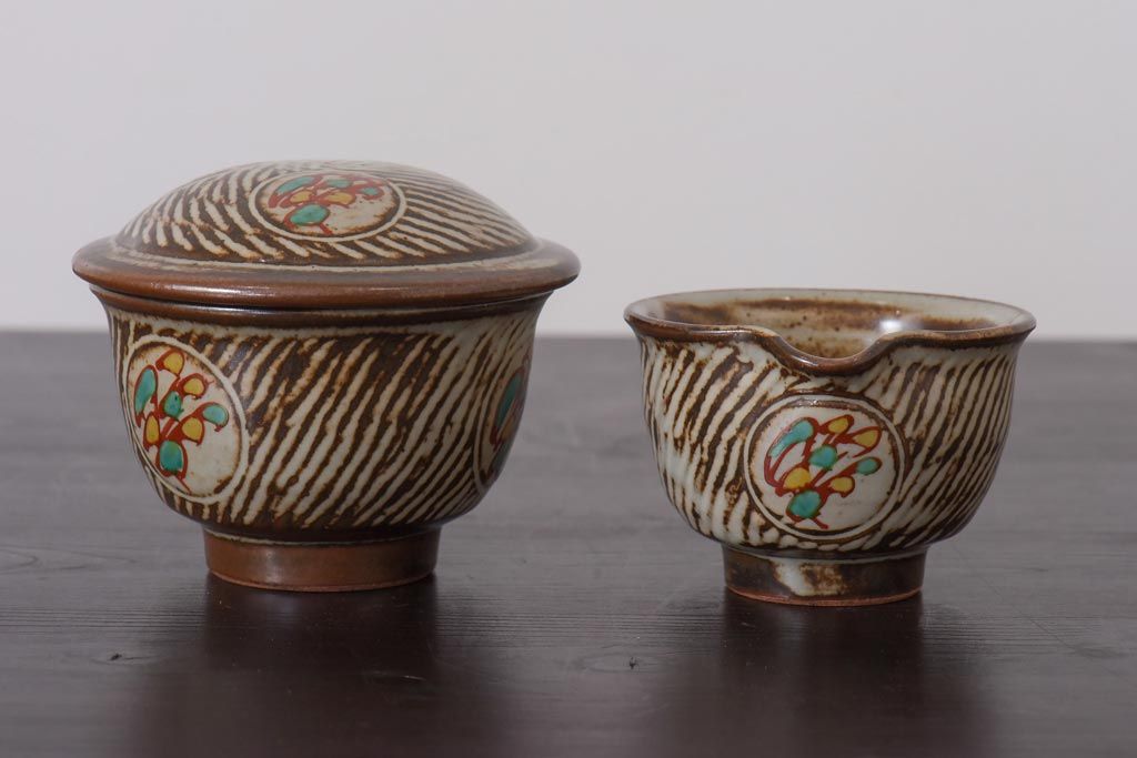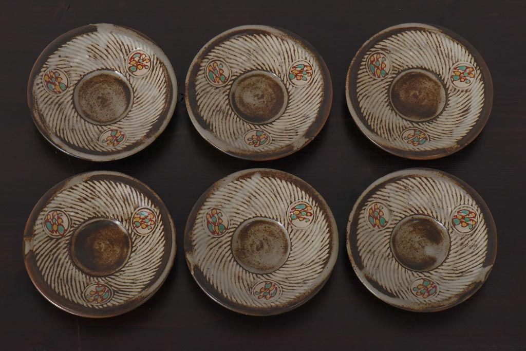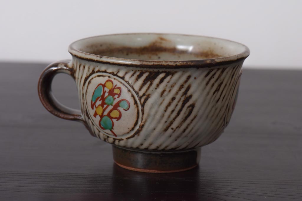 人間国宝 島岡達三 象嵌赤絵 草花文コーヒーセット(カップ&ソーサー、クリーマー、シュガーポット)
