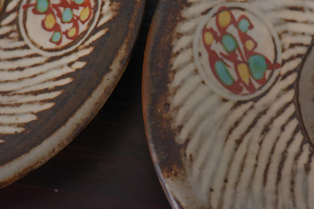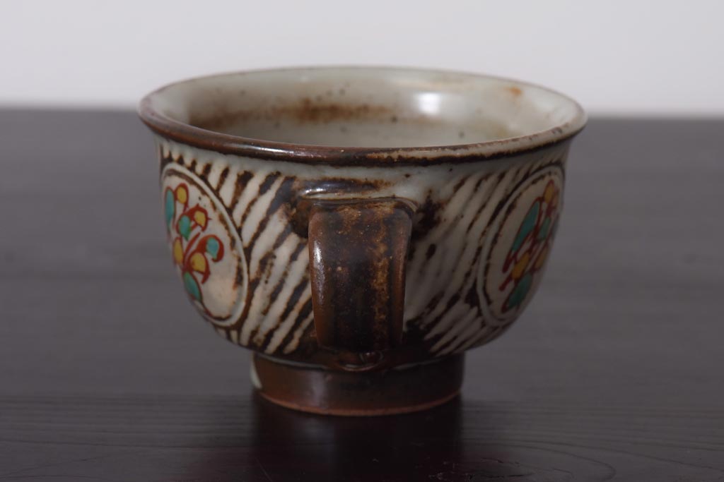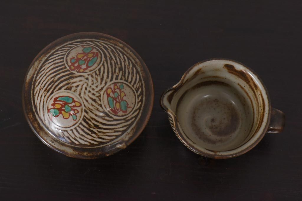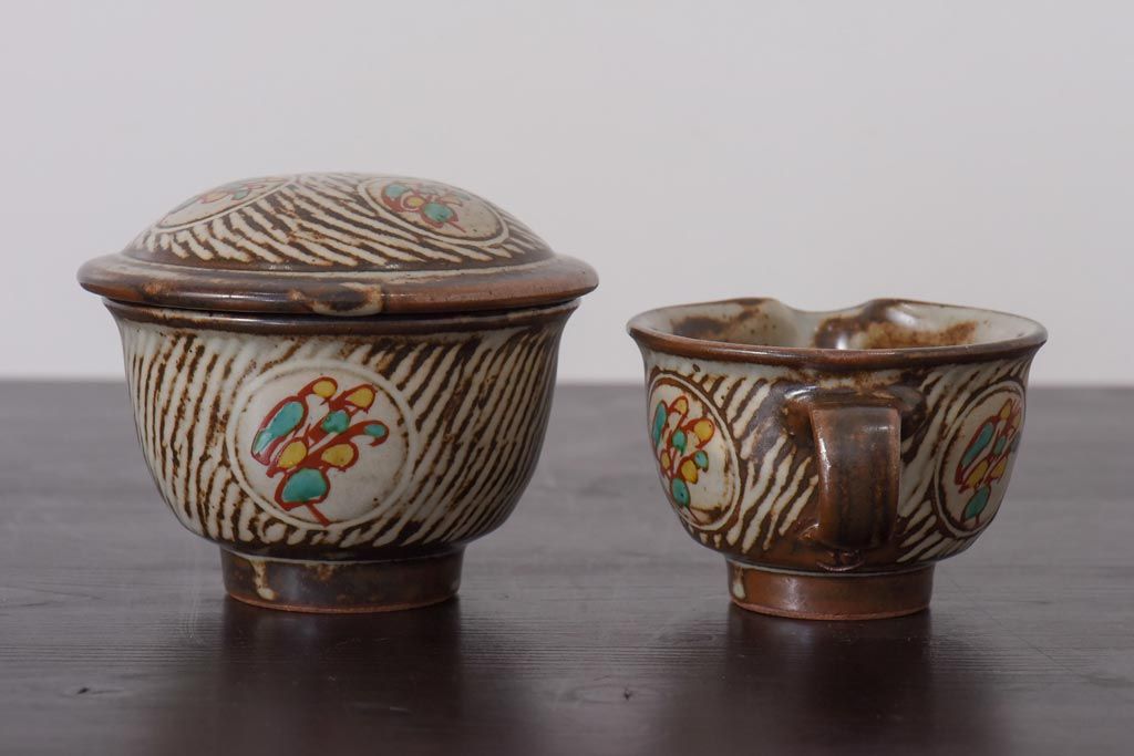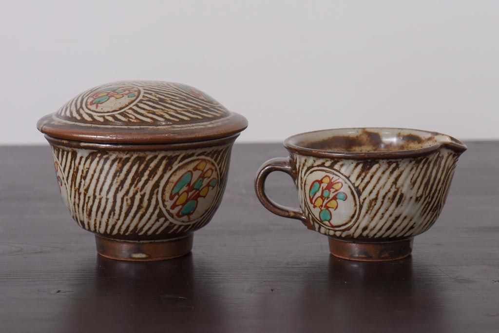 ラフジュ工房> 洋食器・キッチン用品> ポット・シュガーポット・クリーマー > 人間国宝 島岡達三 象嵌赤絵 草花文コーヒーセット(カップ&ソーサー、クリーマー、シュガーポット)