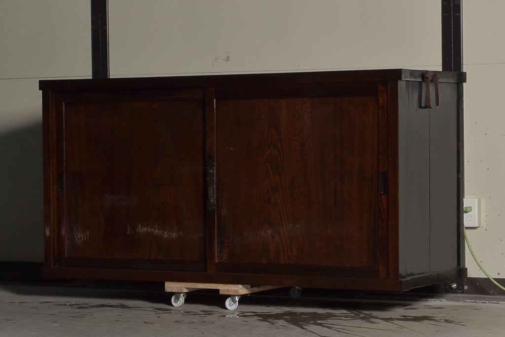 和箪笥 > 和製アンティーク 木製引き戸のシンプルな収納箪笥サイドボード(収納棚、戸棚、夜具箪笥、布団箪笥)(R-036604)