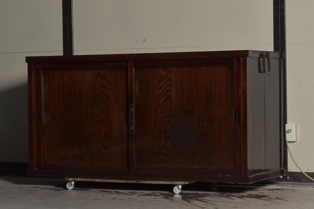 和箪笥 > 和製アンティーク 木製引き戸のシンプルな収納箪笥サイドボード(収納棚、戸棚、夜具箪笥、布団箪笥)(R-036605)