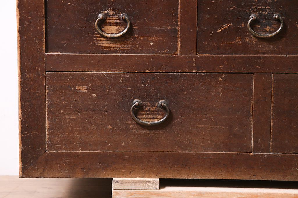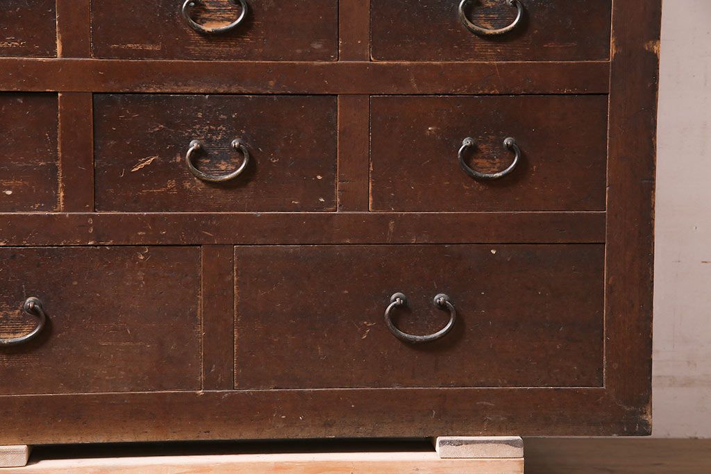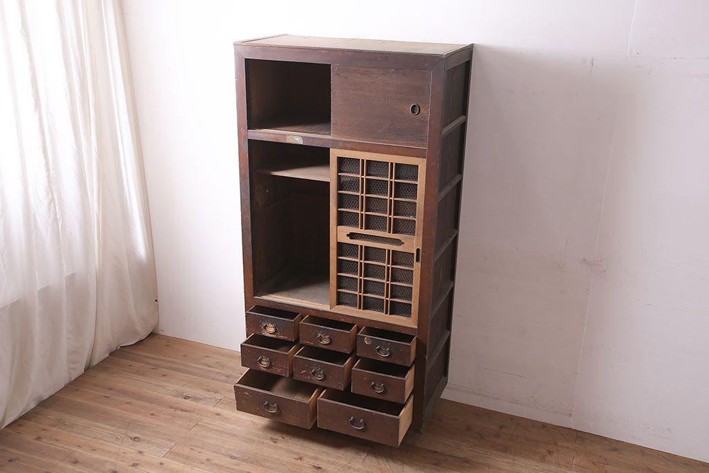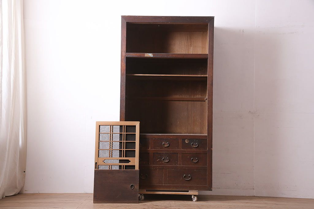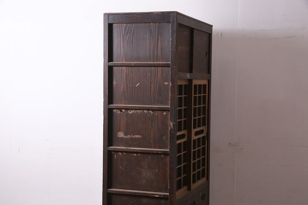 ラフジュ工房> 和箪笥> 水屋箪笥 > アンティーク家具 大正昭和初期 レアデザイン!マス目格子の水屋キャビネット(戸棚、茶箪笥)(R-036617)