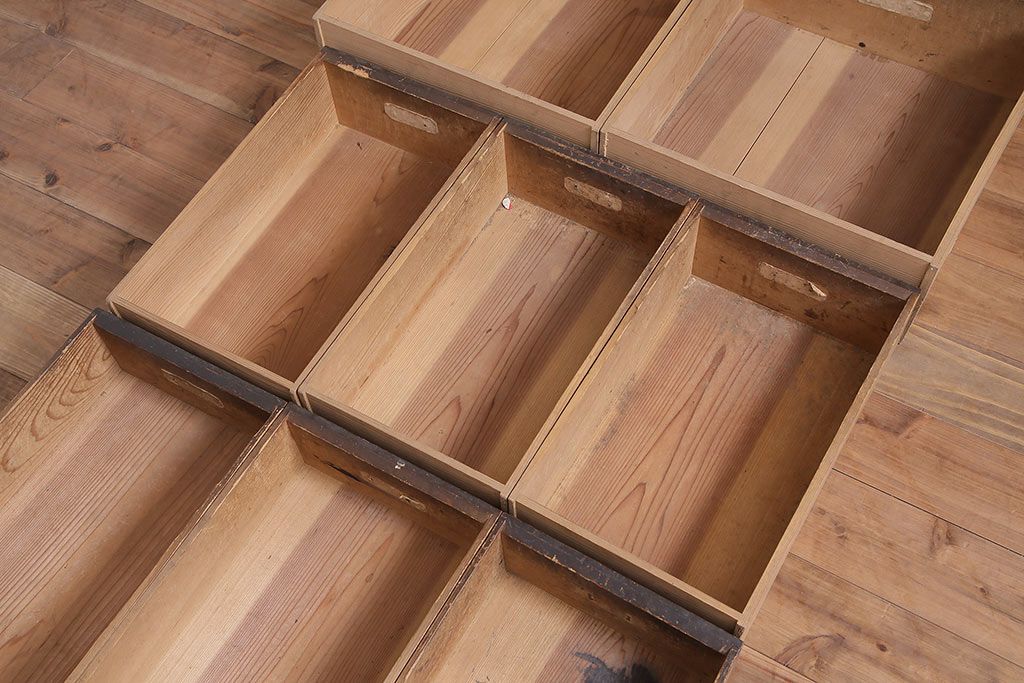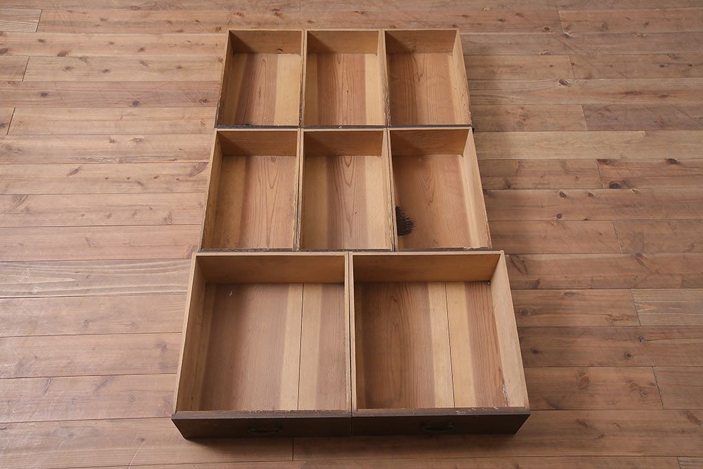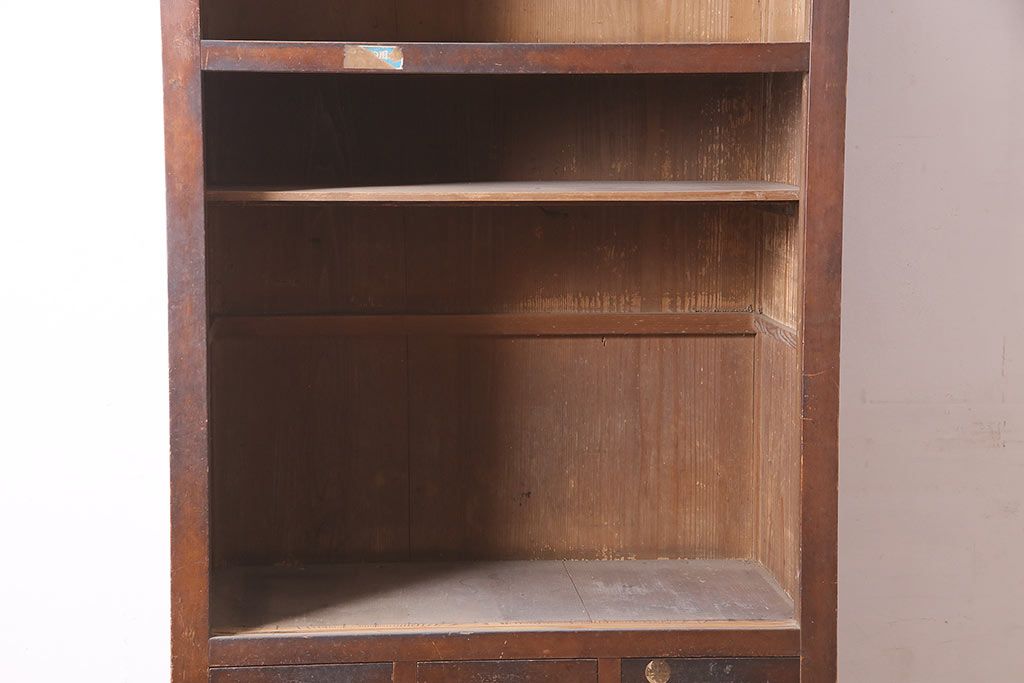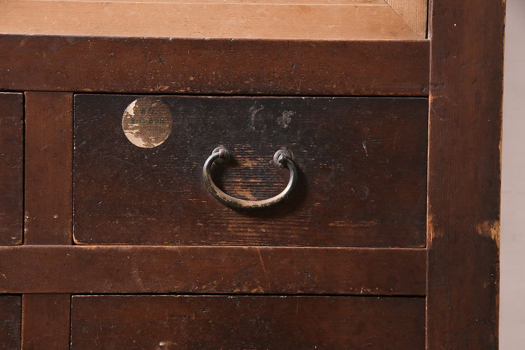 ラフジュ工房> キャビネット・戸棚> 食器棚・カップボード > アンティーク家具 大正昭和初期 レアデザイン!マス目格子の水屋キャビネット(戸棚、茶箪笥)(R-036617)
