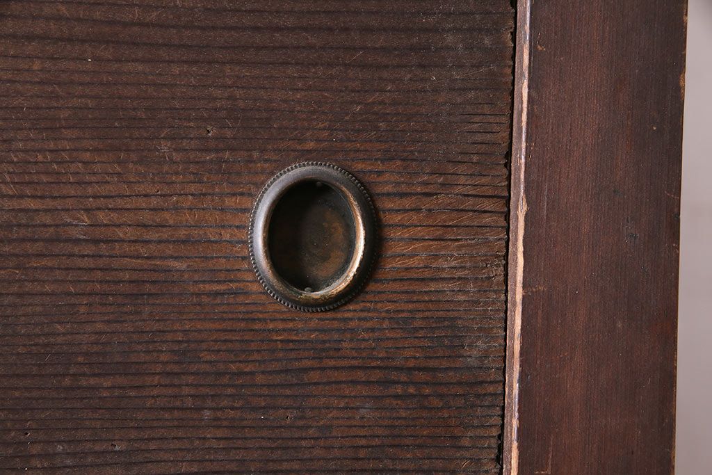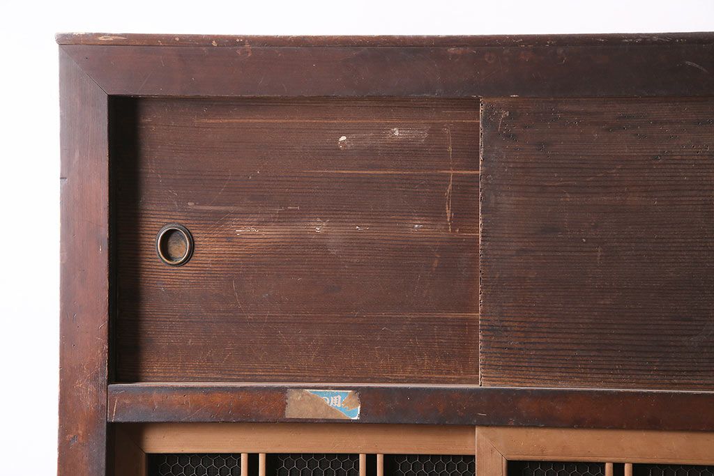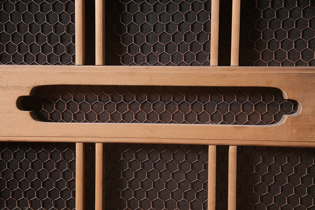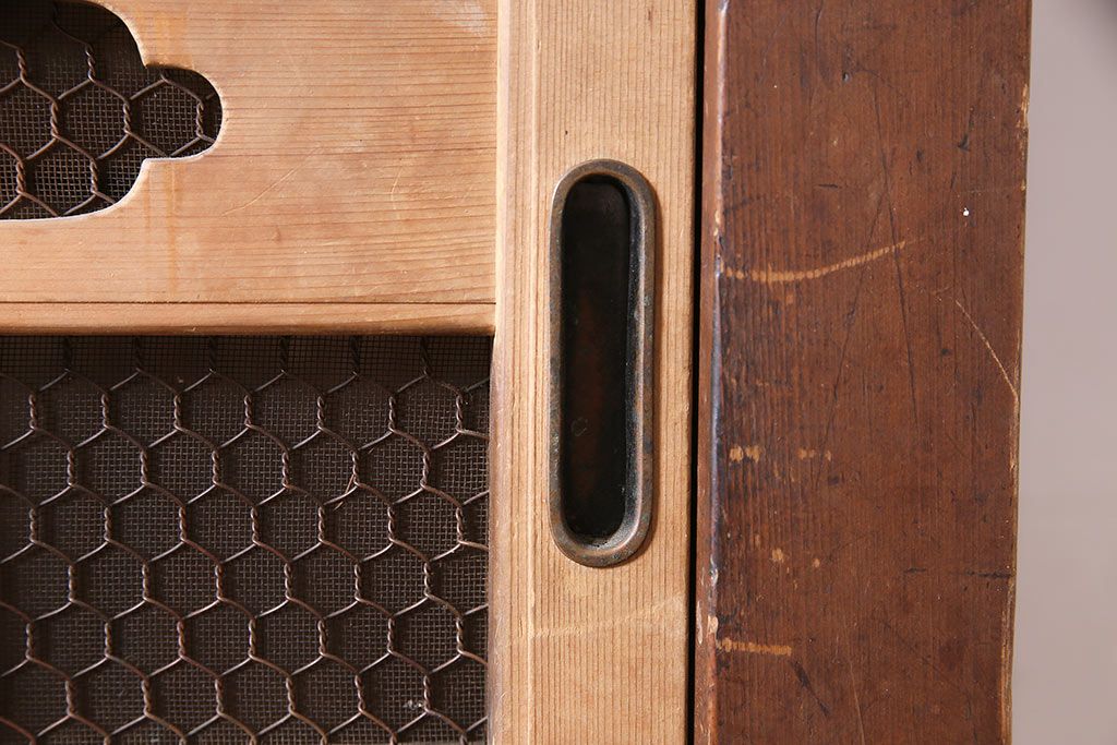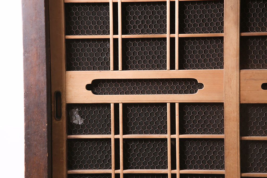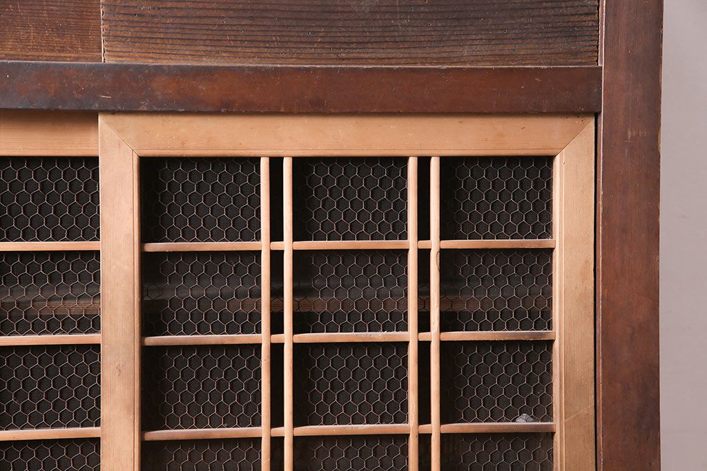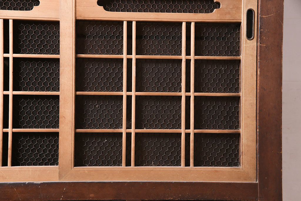 アンティーク家具 大正昭和初期 レアデザイン!マス目格子の水屋キャビネット(戸棚、茶箪笥)(R-036617)