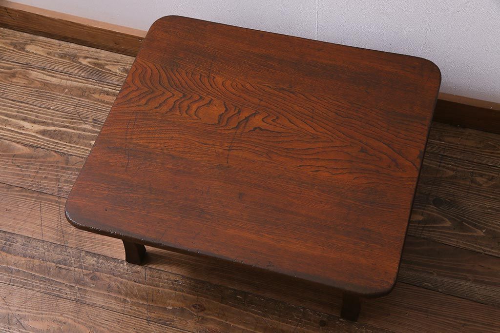 レトロ家具 折りたたみ 味のある昭和レトロな角ちゃぶ台(ローテーブル)(R-037561)