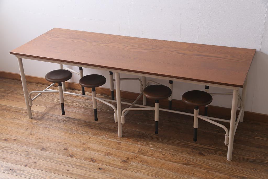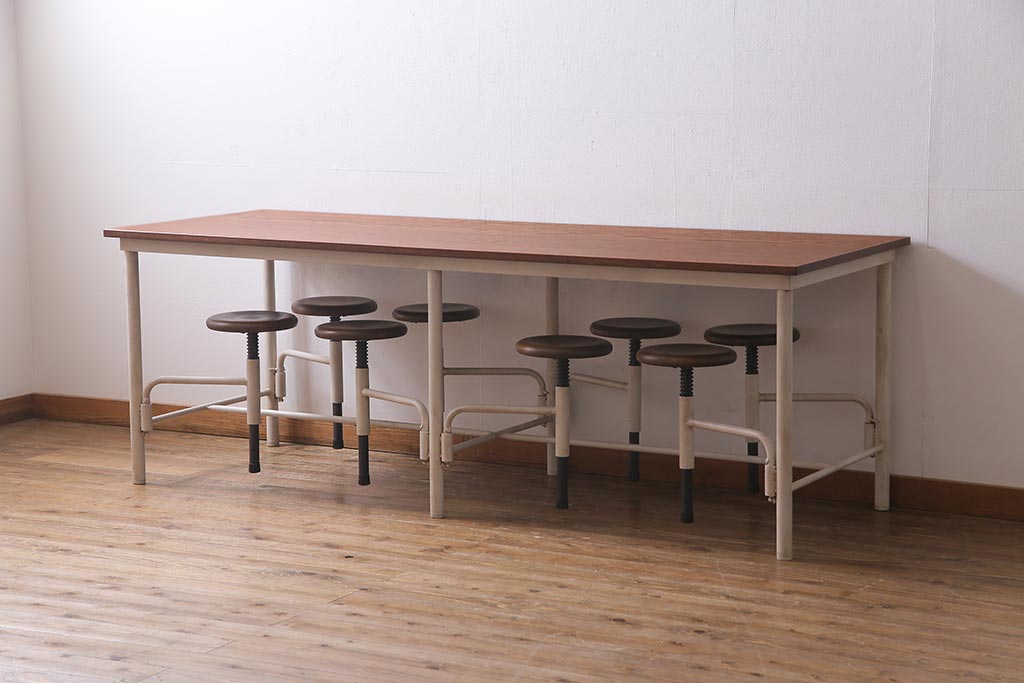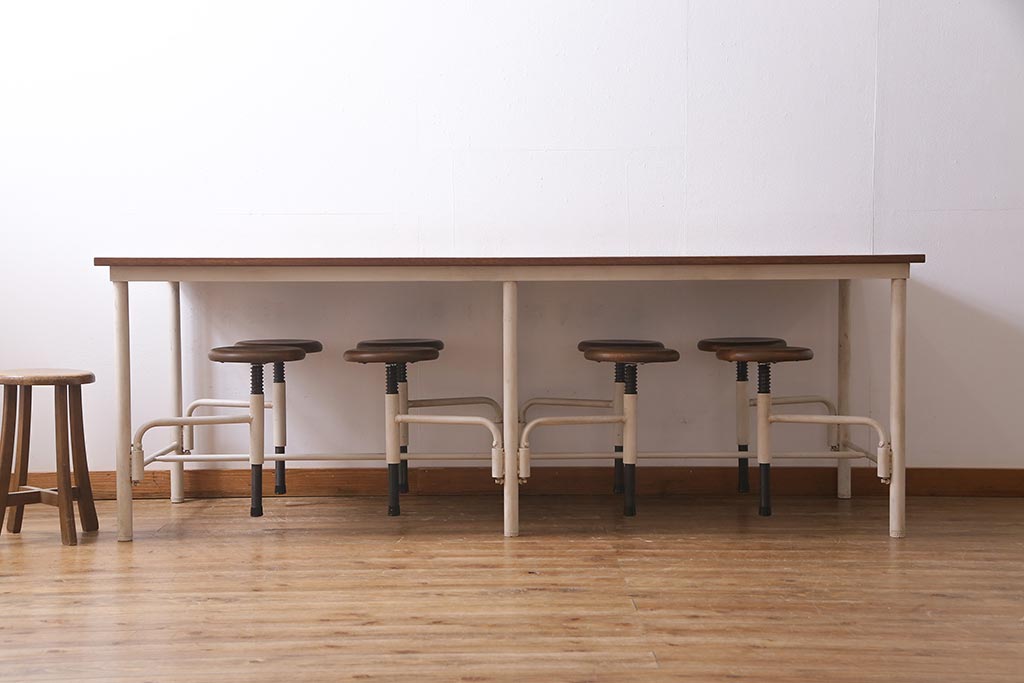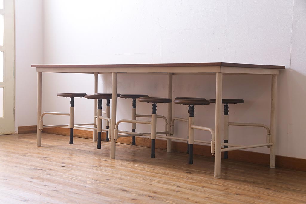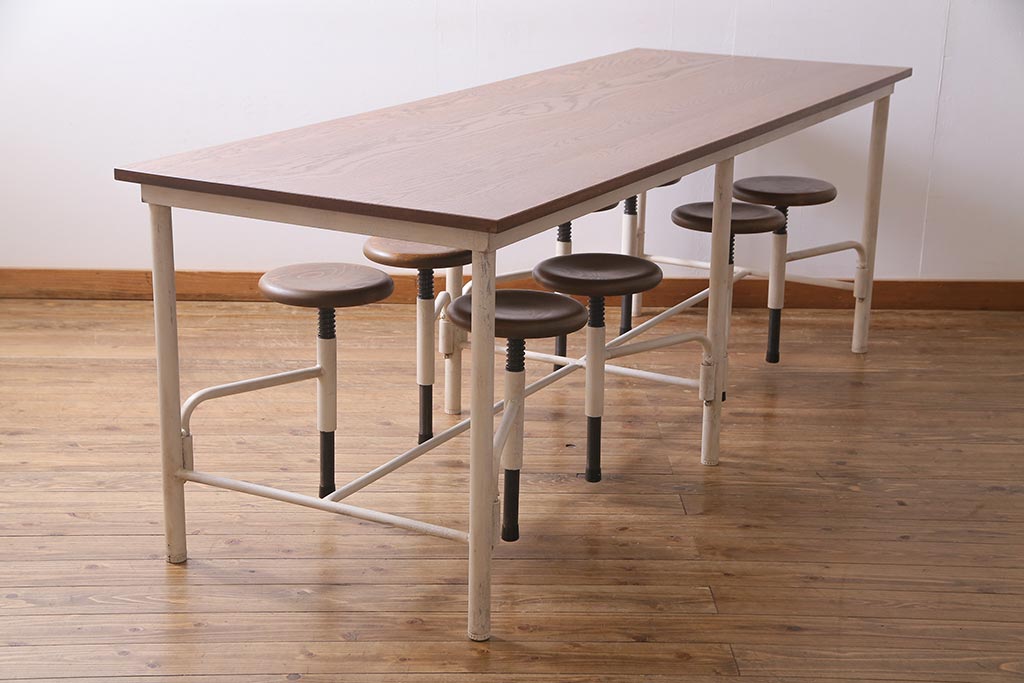 ラフジュ工房> テーブル> 鉄脚テーブル > ラフジュ工房オリジナル ペイント 格納スツール付き8人掛けテーブル(ダイニングテーブル、作業台)(R-037539)
