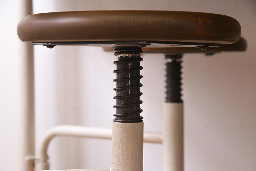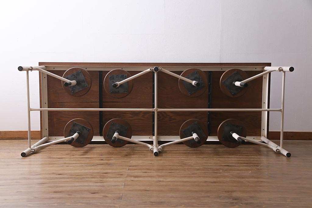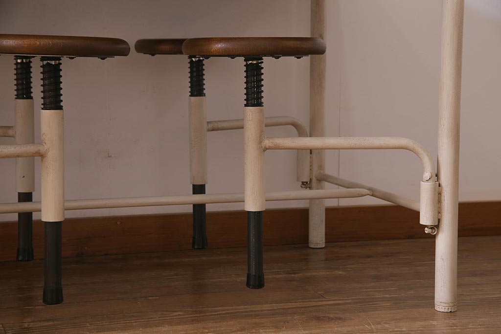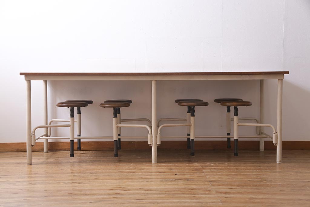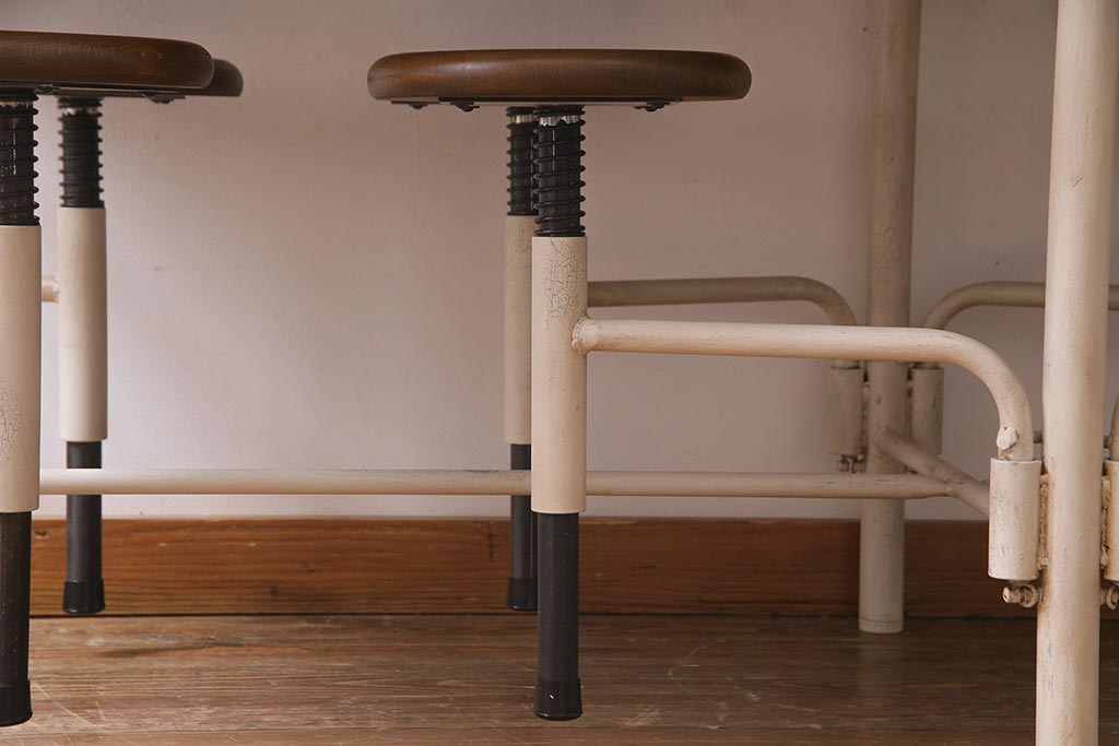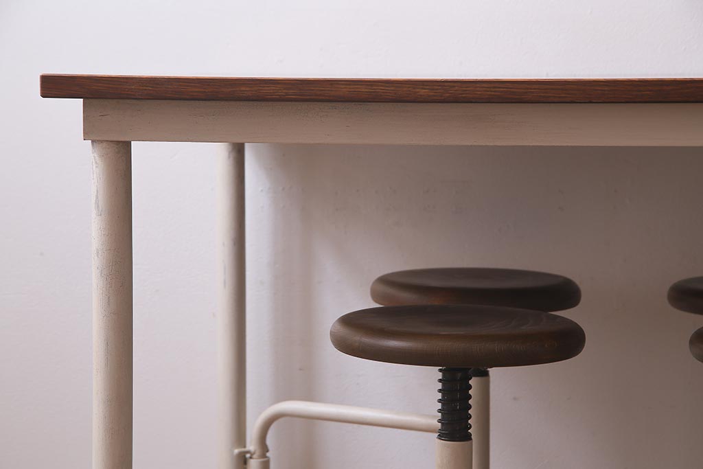 ラフジュ工房> テーブル> 鉄脚テーブル > ラフジュ工房オリジナル ペイント 格納スツール付き8人掛けテーブル(ダイニングテーブル、作業台)(R-037539)