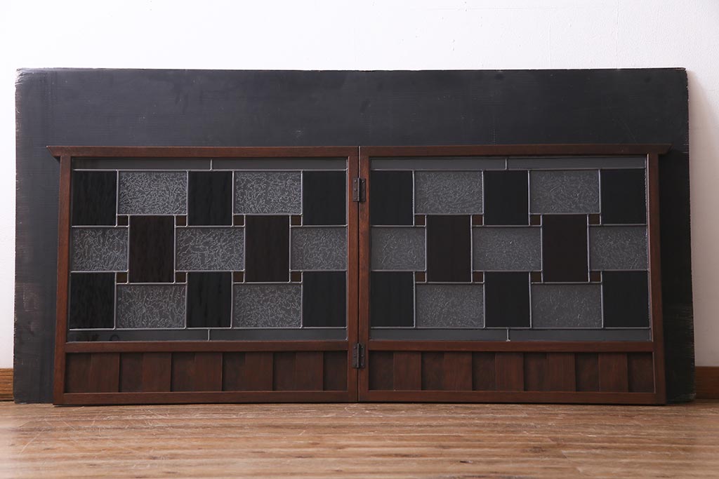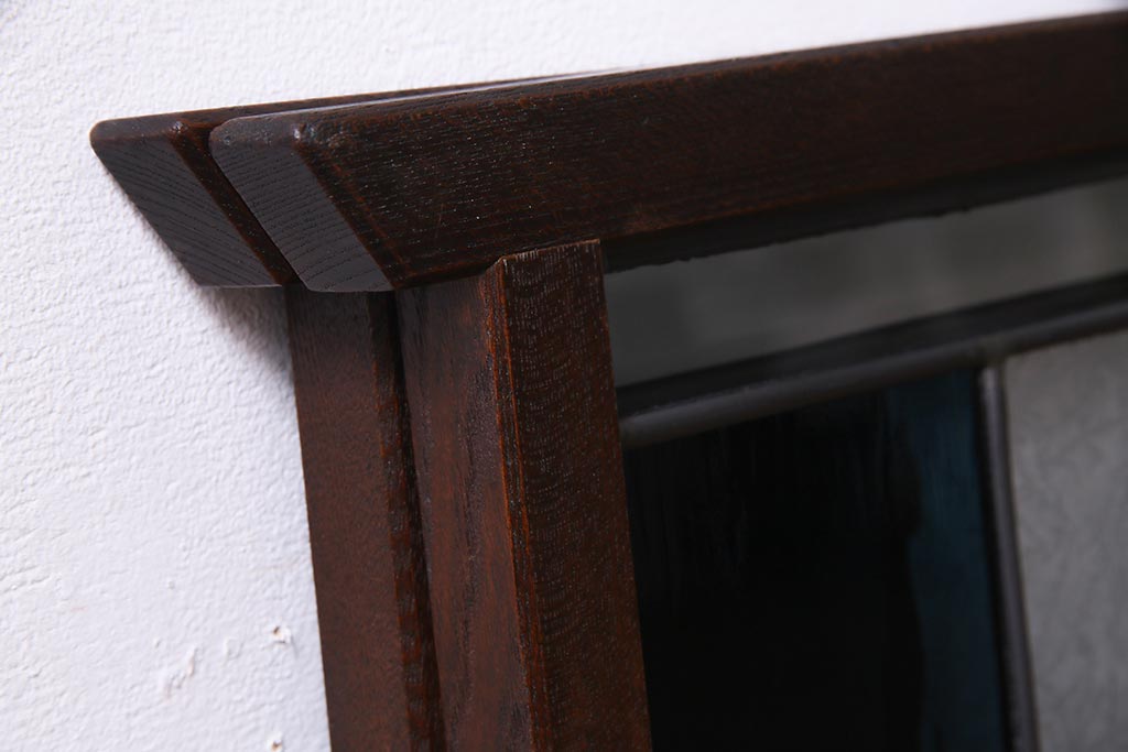 アンティーク家具 ラフジュ工房オリジナルステンドグラス 明治大正期 総ケヤキ材 色ガラス・結霜ガラス入り レトロモダンなステンドグラスのリメイクパーテーション(衝立)(R-037593)です。