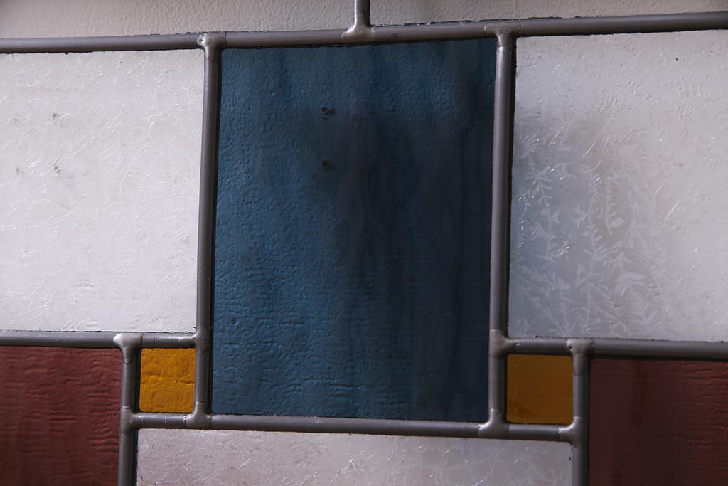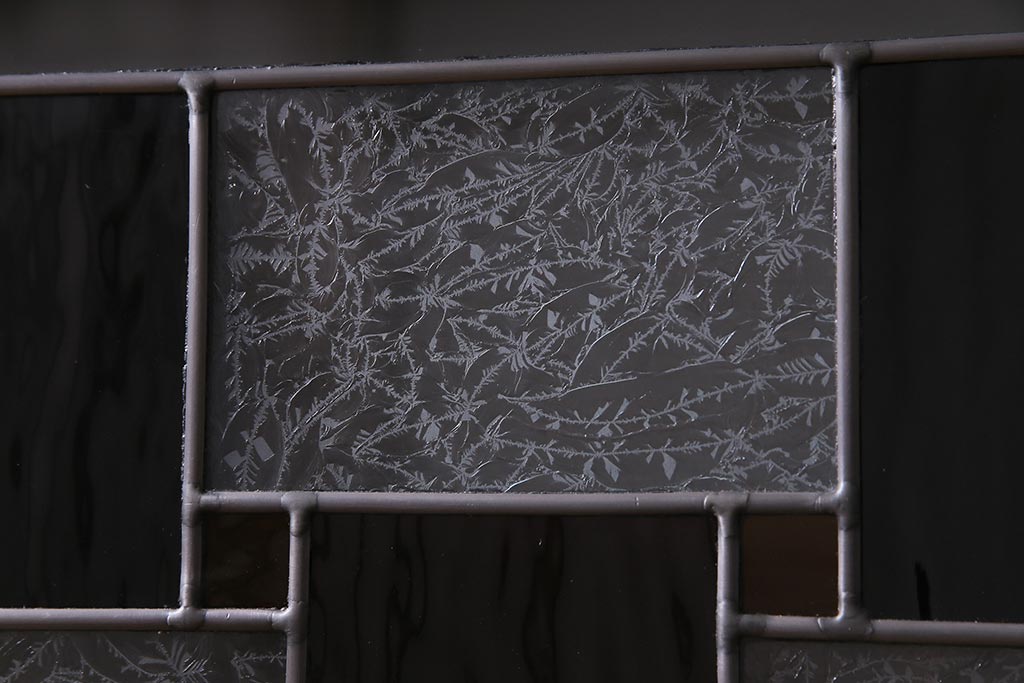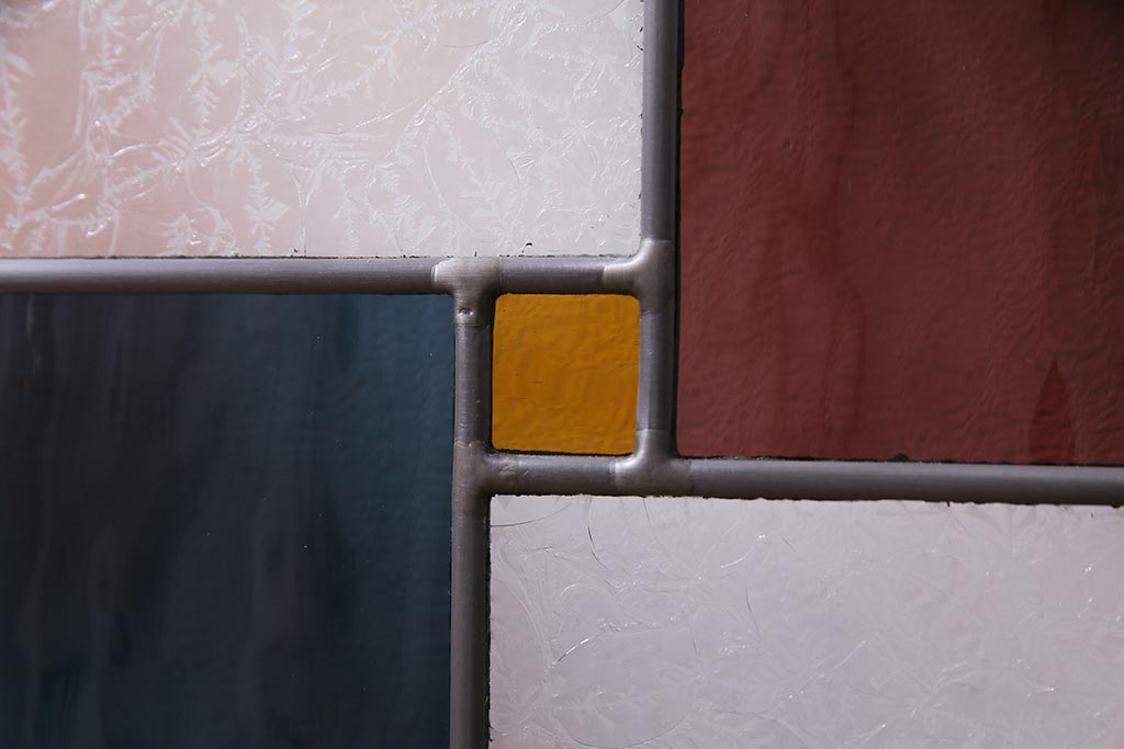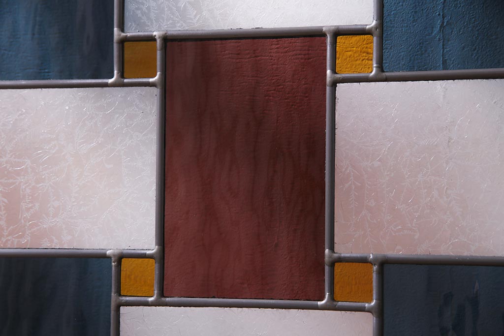 ステンドグラスには3色の色ガラスと結霜ガラスが使用されており、