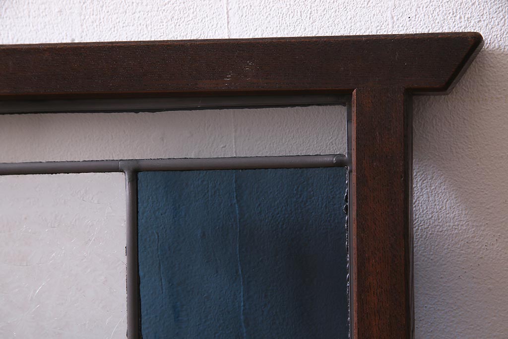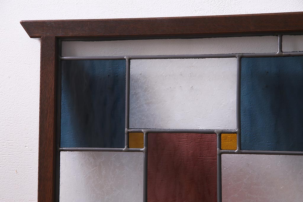 ステンドグラス > アンティーク建具 ラフジュ工房オリジナルステンドグラス 明治大正期 総ケヤキ材 色ガラス・結霜ガラス入り レトロモダンなステンドグラスのリメイクパーテーション(衝立)(R-037593)