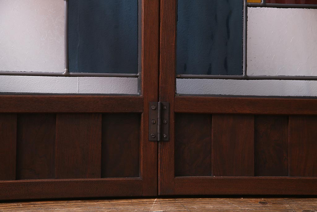 アンティーク建具 ラフジュ工房オリジナルステンドグラス 明治大正期 総ケヤキ材 色ガラス・結霜ガラス入り レトロモダンなステンドグラスのリメイクパーテーション(衝立)(R-037593)