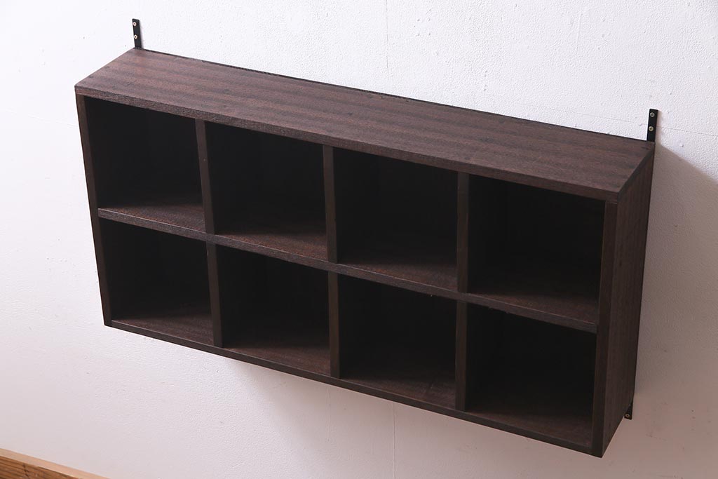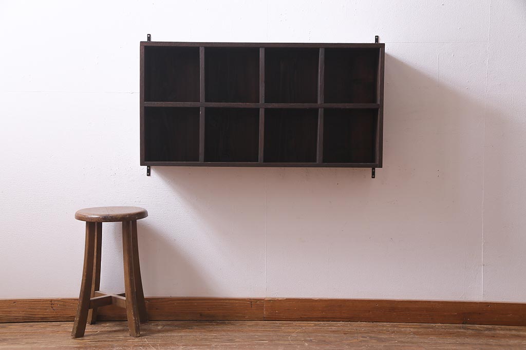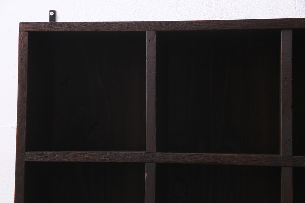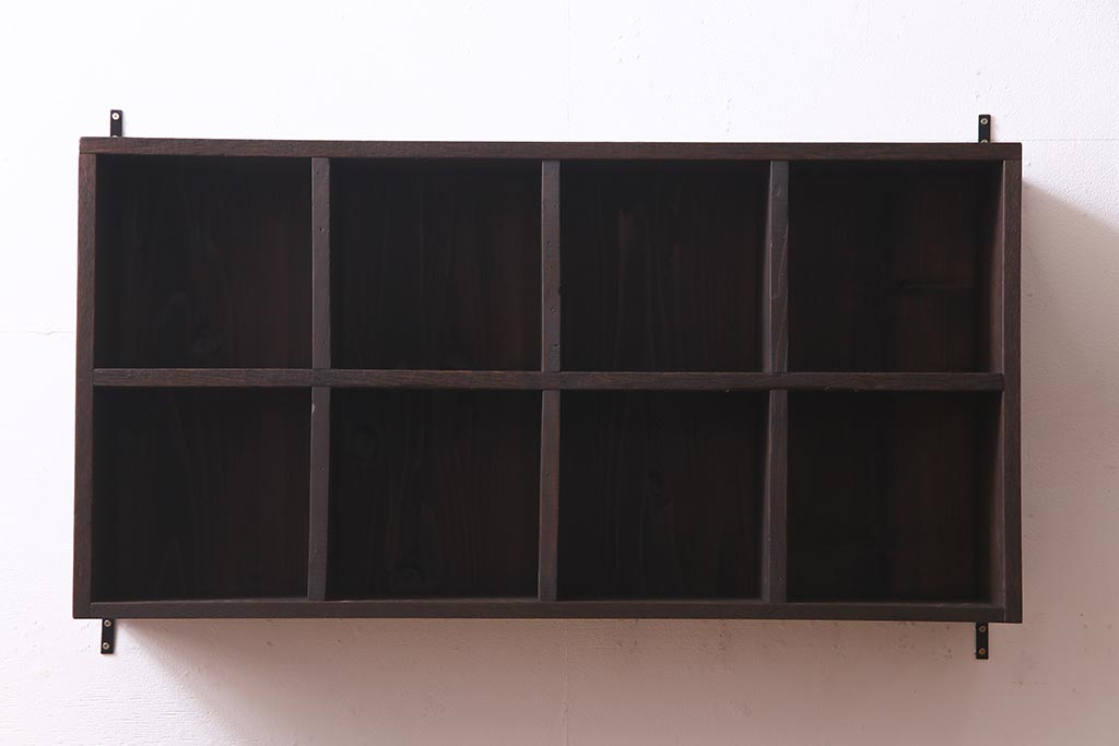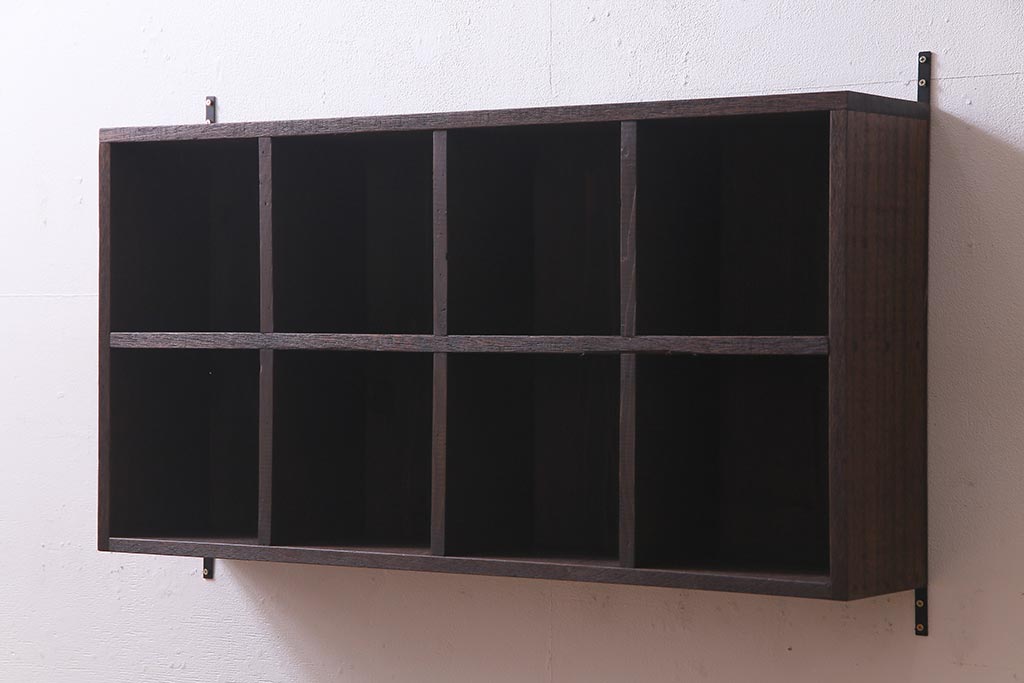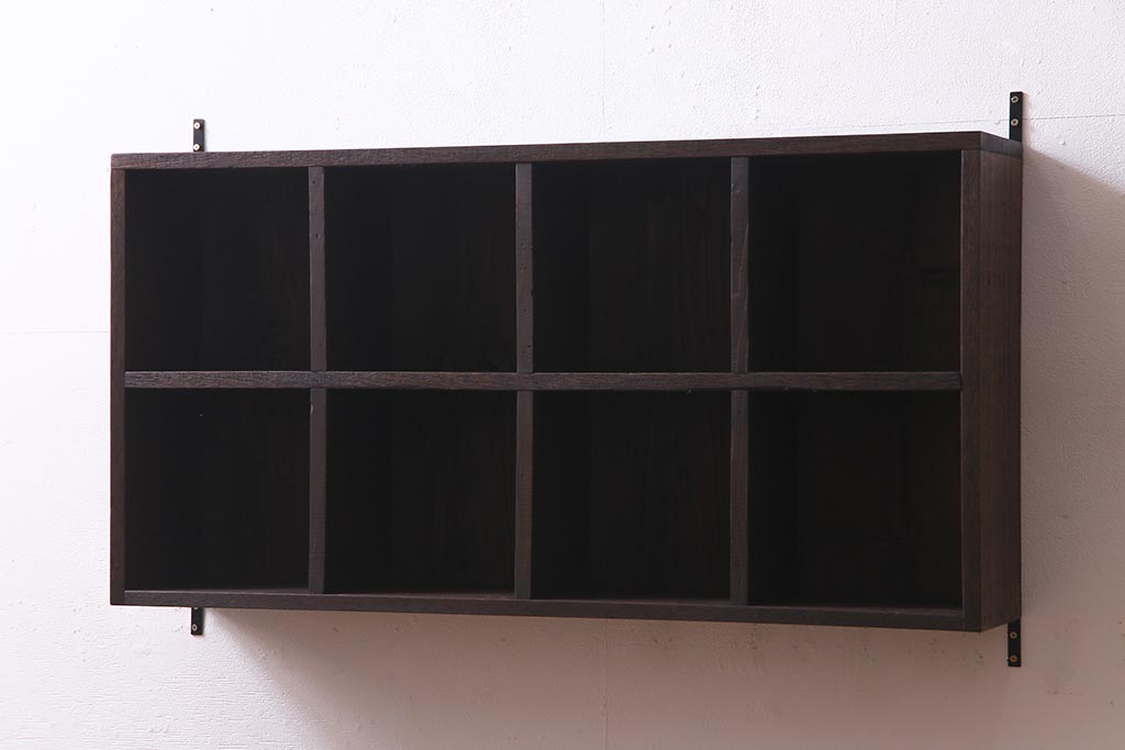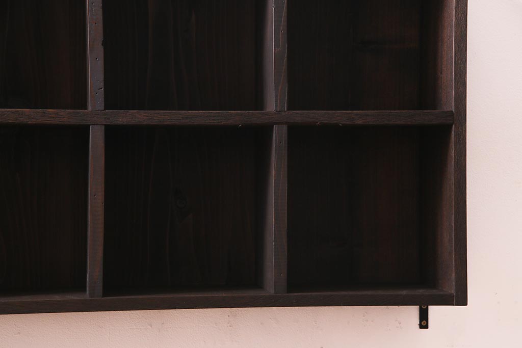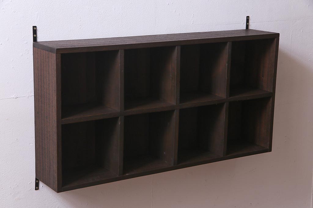 ラフジュ工房オリジナル 古材リメイク家具 2×4マス 収納とディスプレイが楽しめる壁掛けマス目棚(壁掛け収納棚、ウォールラック)(R-037581)