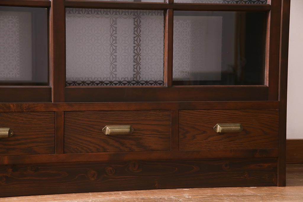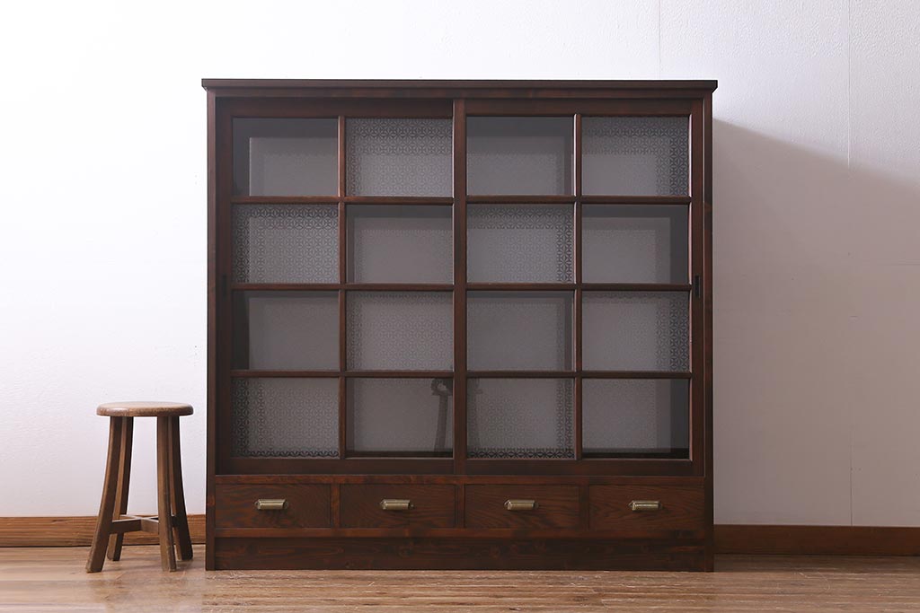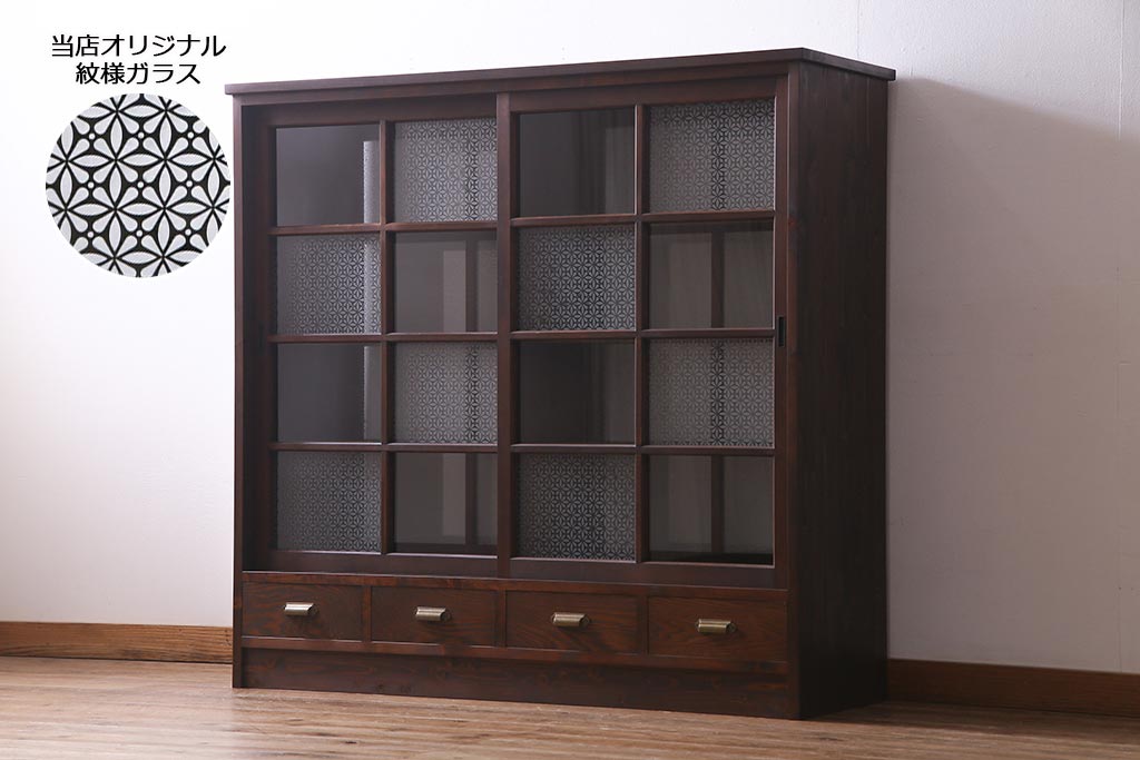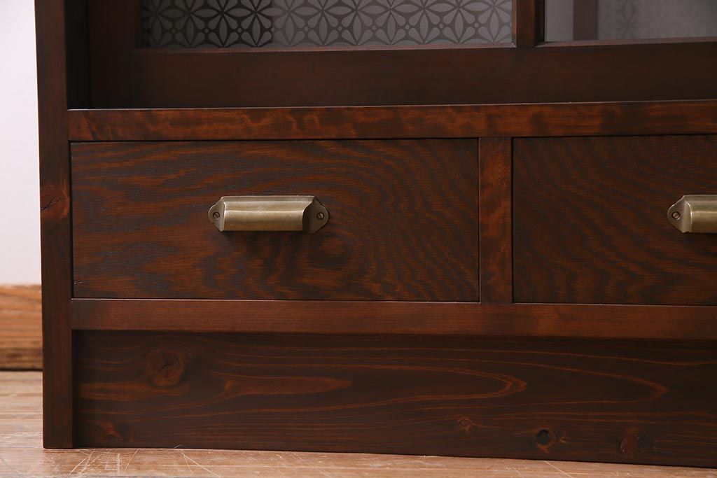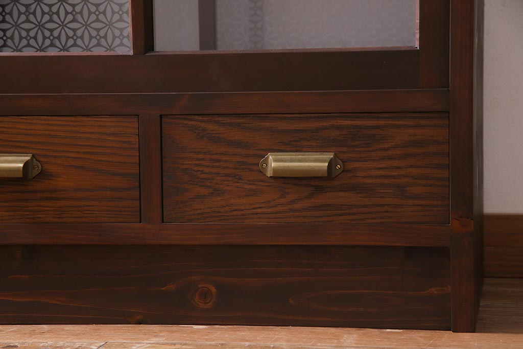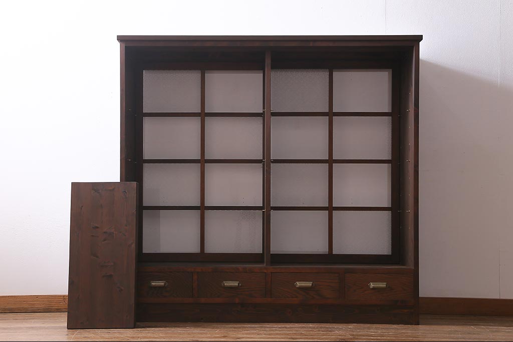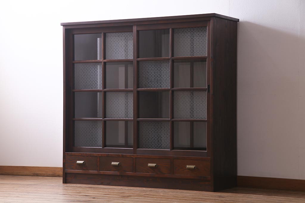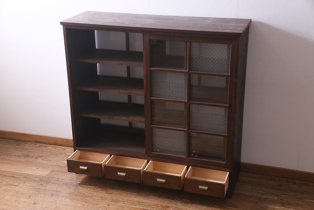 ラフジュ工房オリジナル 引き出し付き 両面引き戸 レトロモダンな戸棚(キャビネット、収納棚)(R-037598)です。