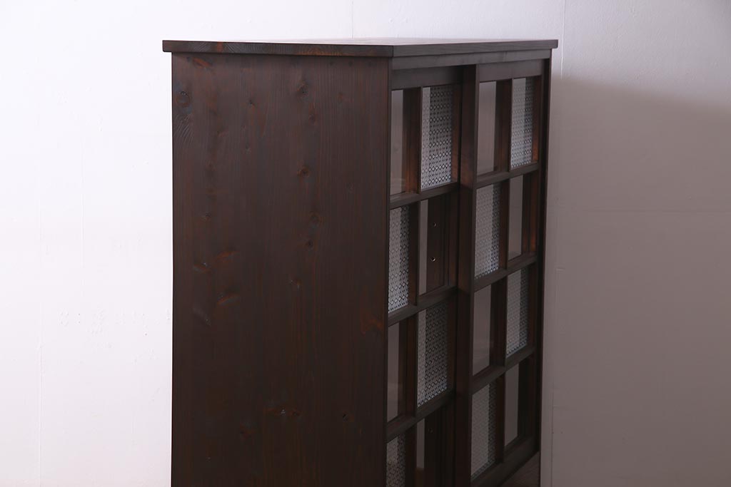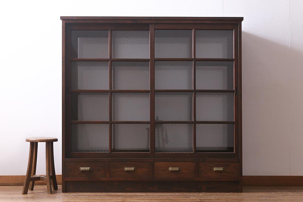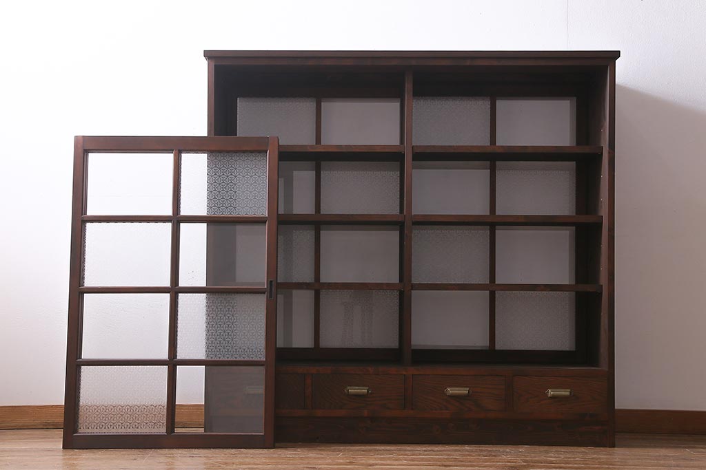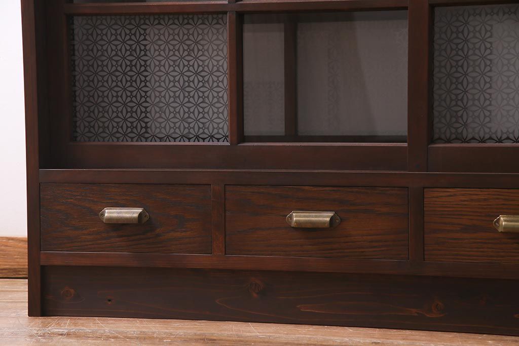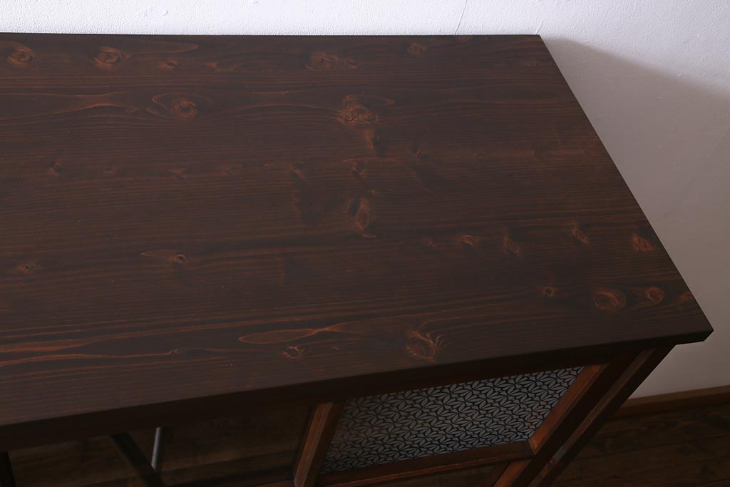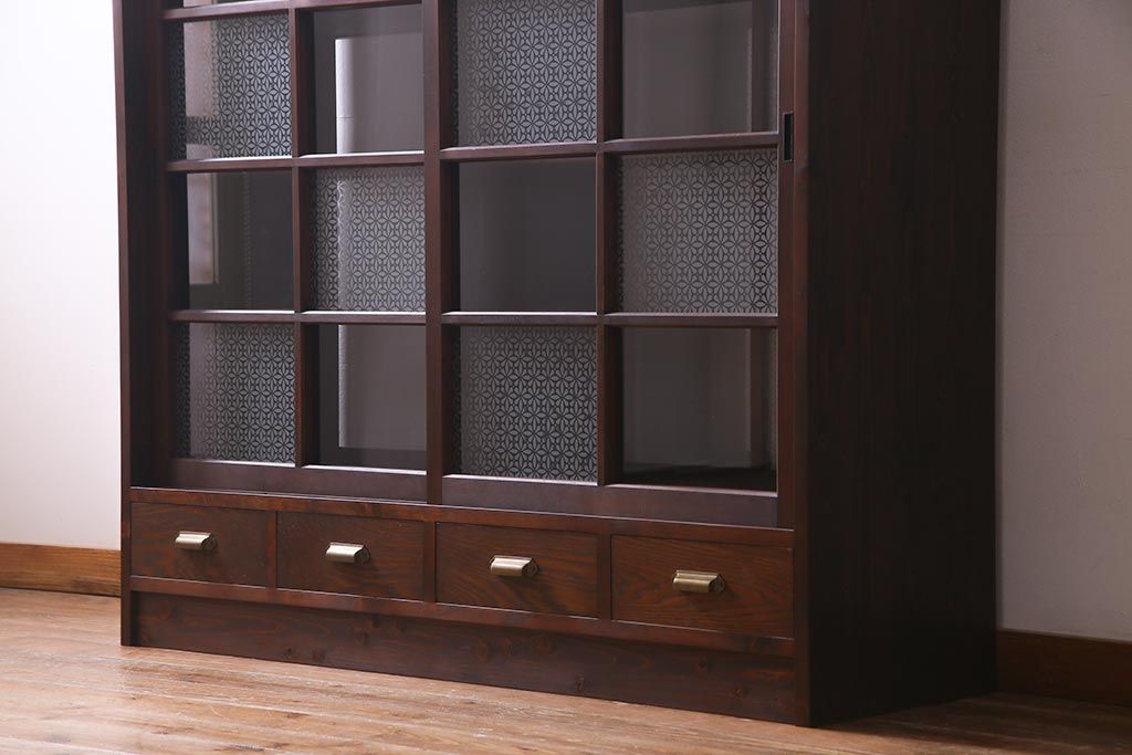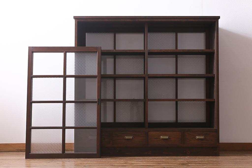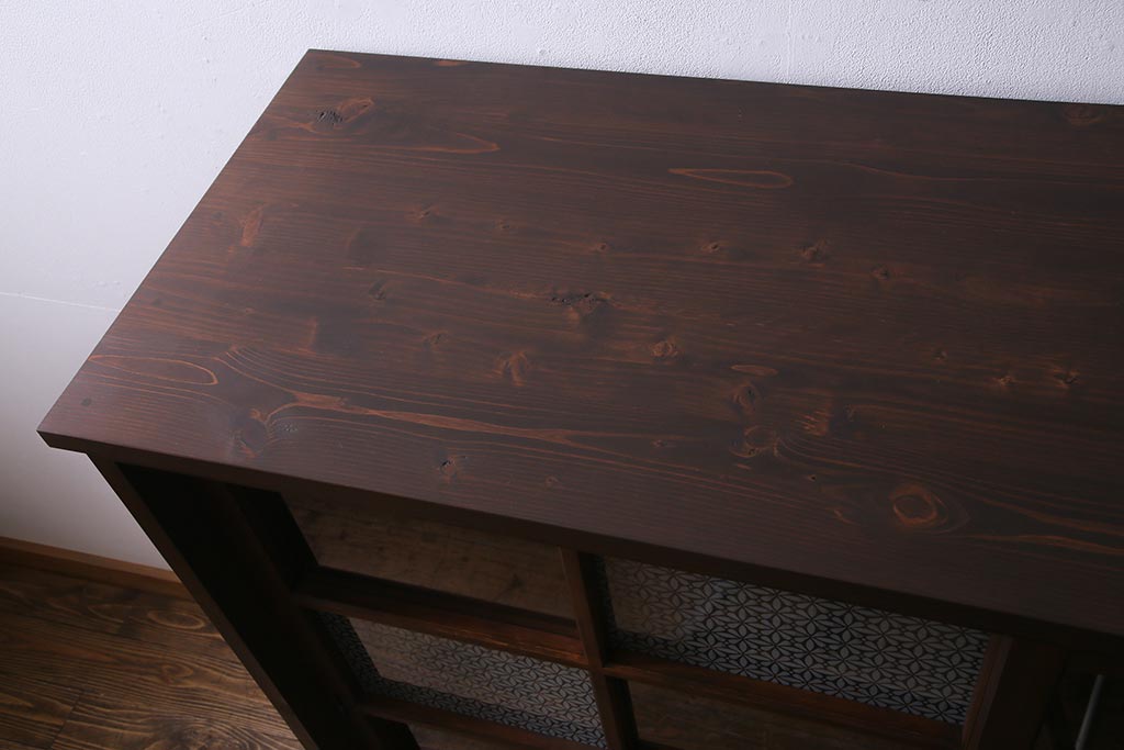 ラフジュ工房オリジナル 引き出し付き 両面引き戸 レトロモダンな戸棚(キャビネット、収納棚)(R-037598)です。