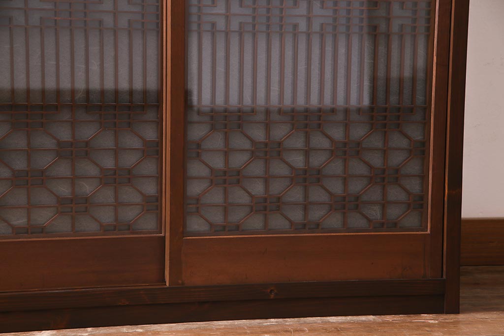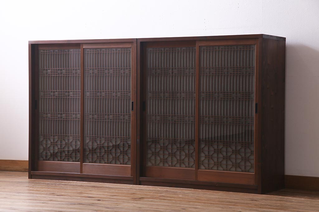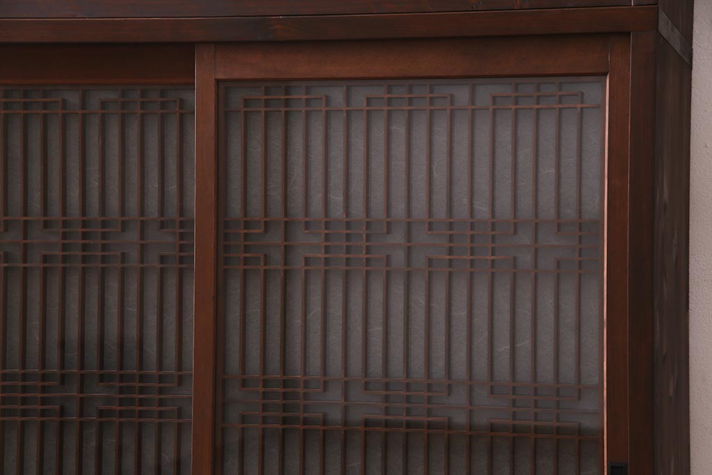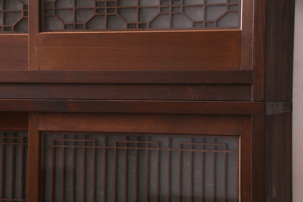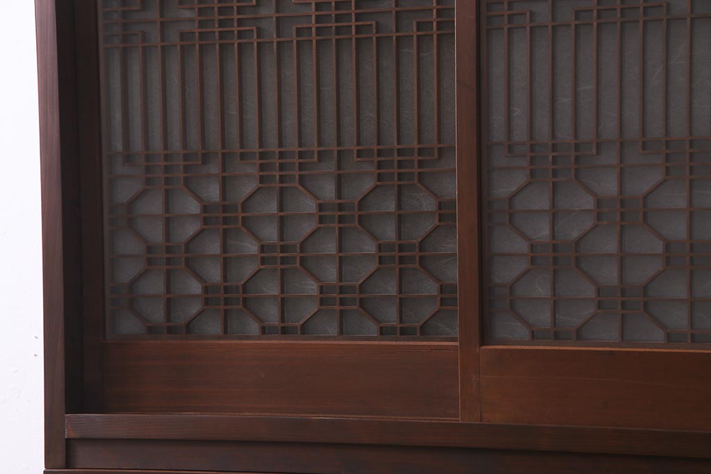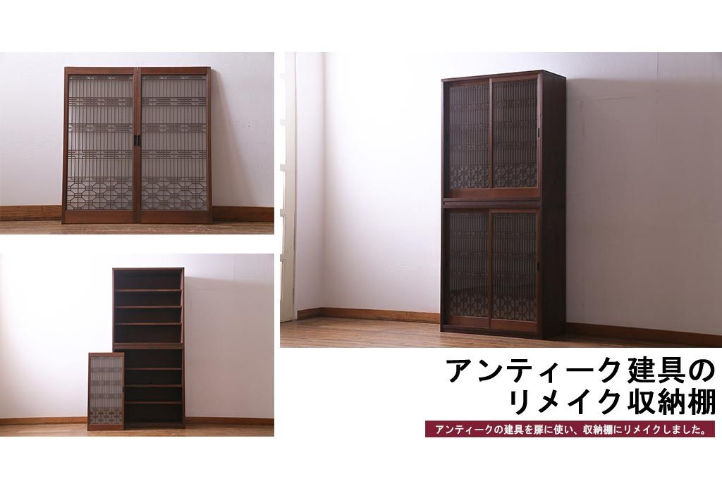 ラフジュ工房オリジナル アンティーク古建具リメイク 和レトロな組子引き戸の重ねキャビネット(収納棚、戸棚、書院戸)(R-037601)です。