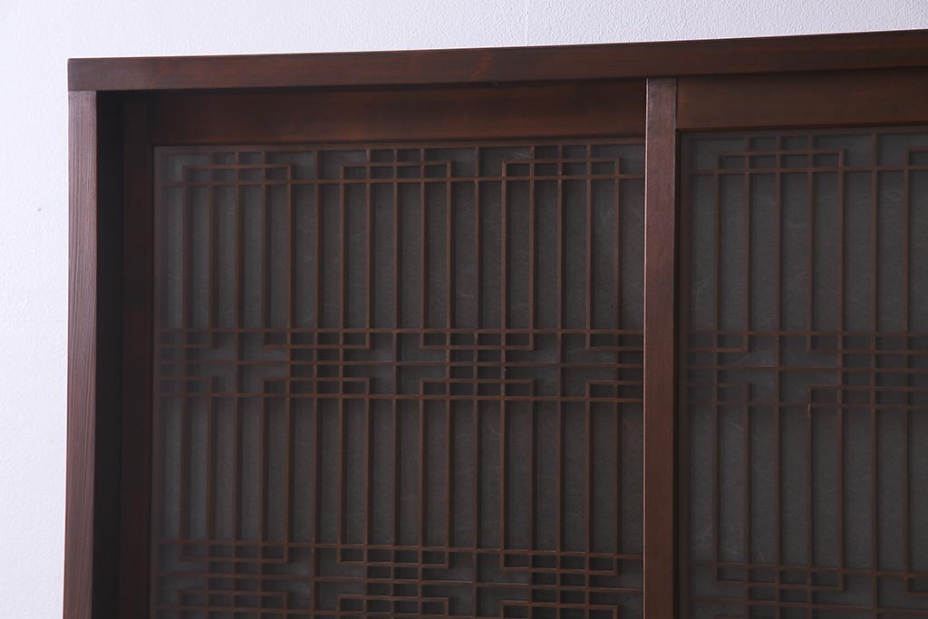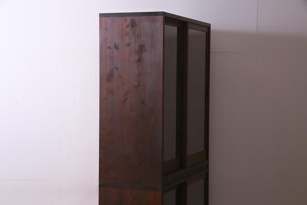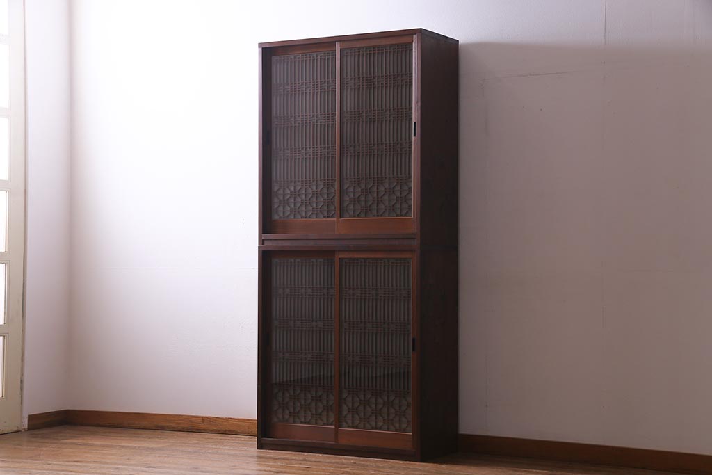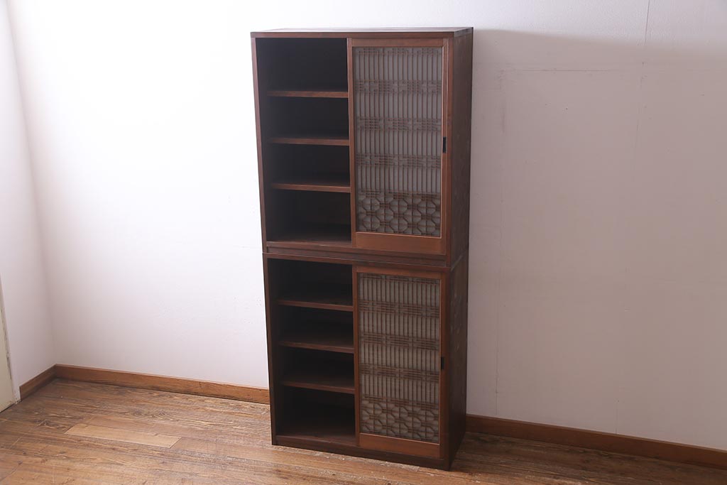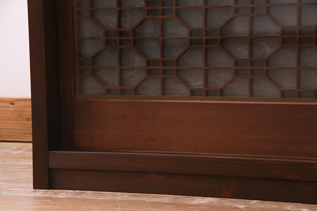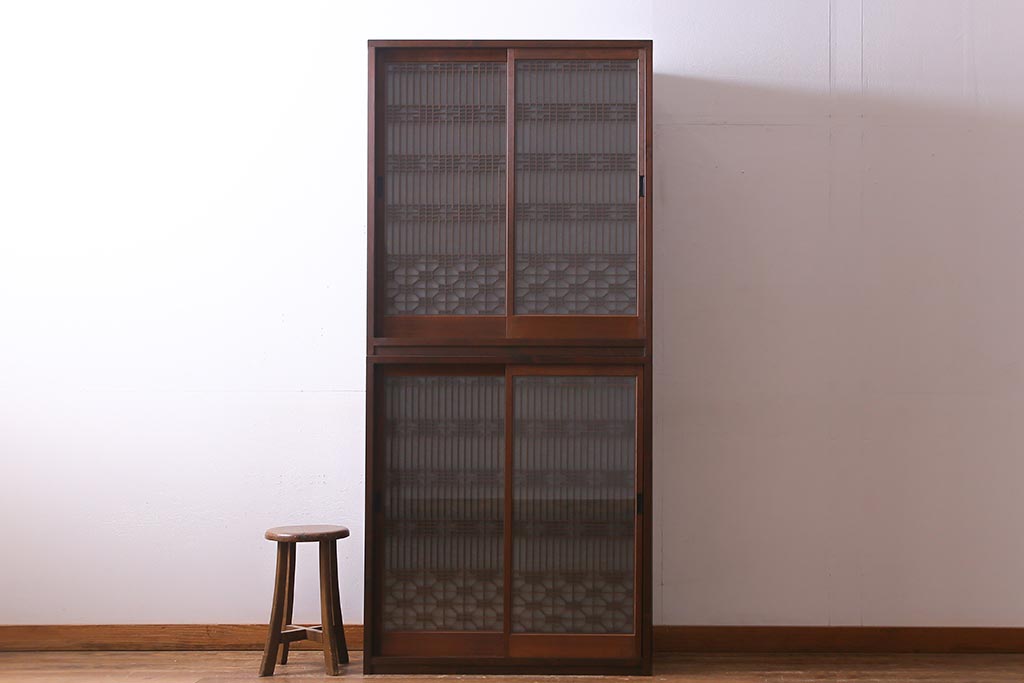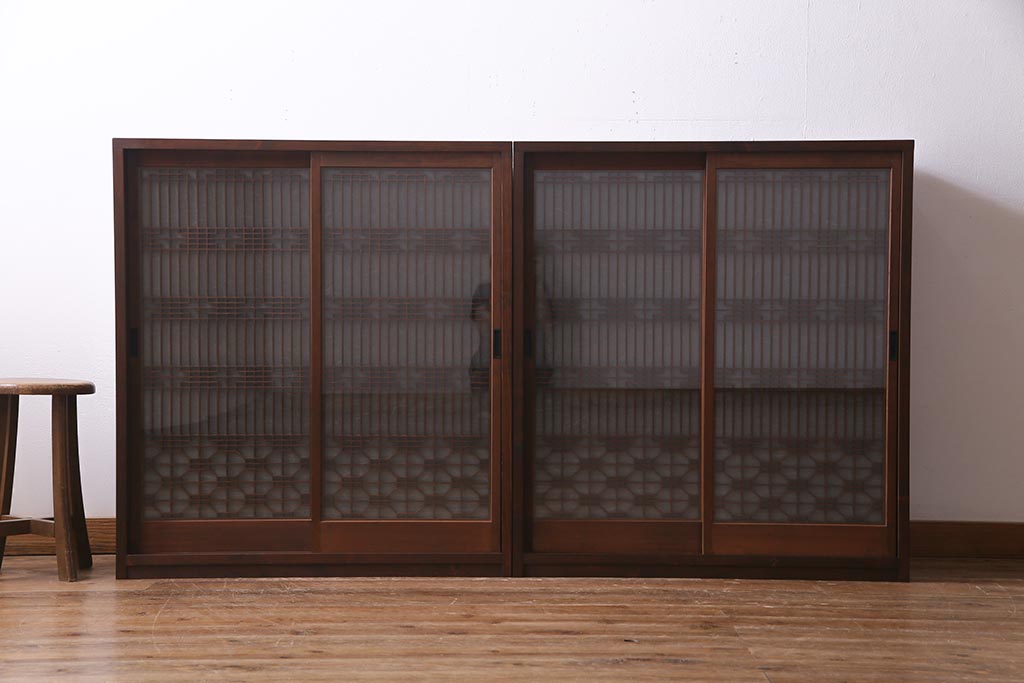 ラフジュ工房オリジナル アンティーク古建具リメイク 和レトロな組子引き戸の重ねキャビネット(収納棚、戸棚、書院戸)(R-037601)です。