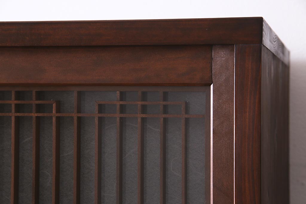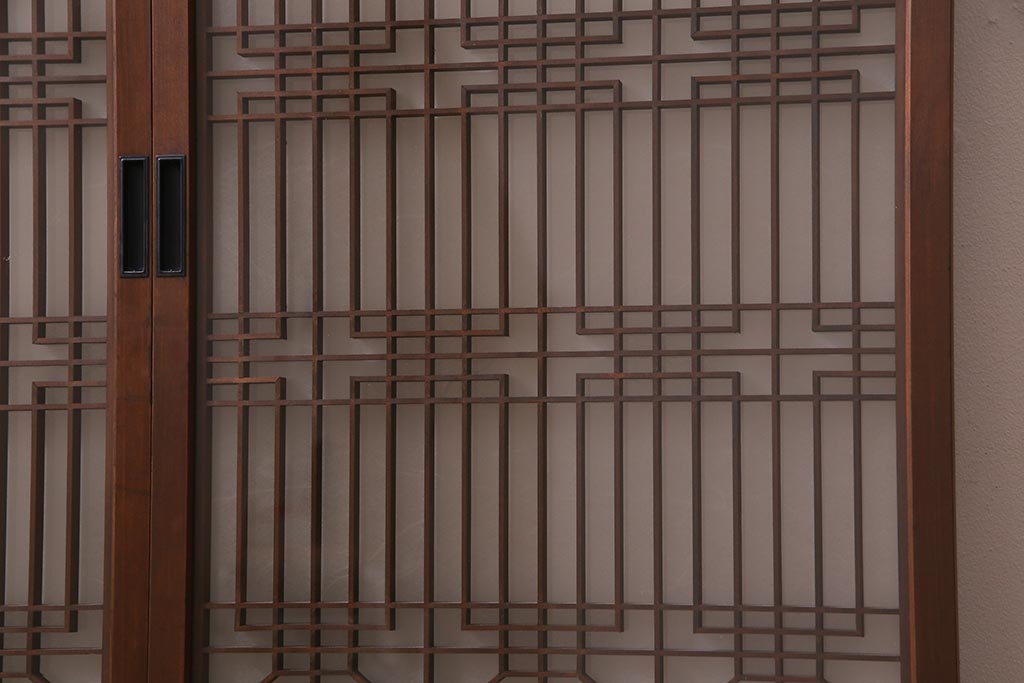 ラフジュ工房オリジナル アンティーク古建具リメイク 和レトロな組子引き戸の重ねキャビネット(収納棚、戸棚、書院戸)(R-037601)