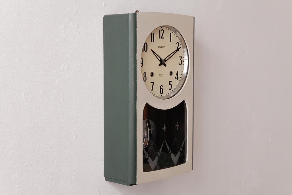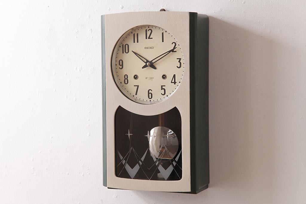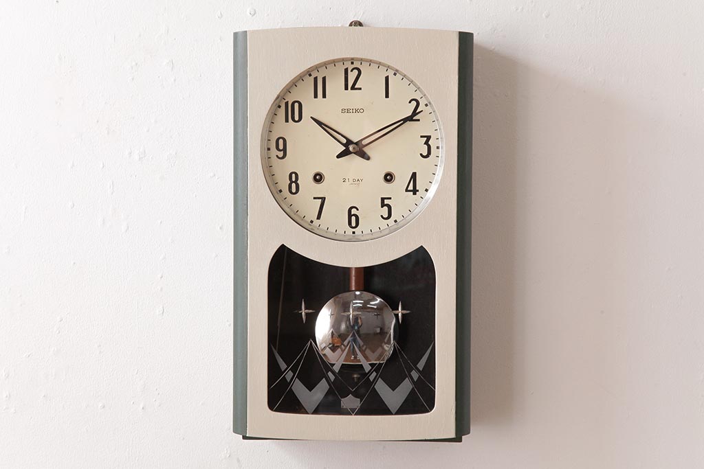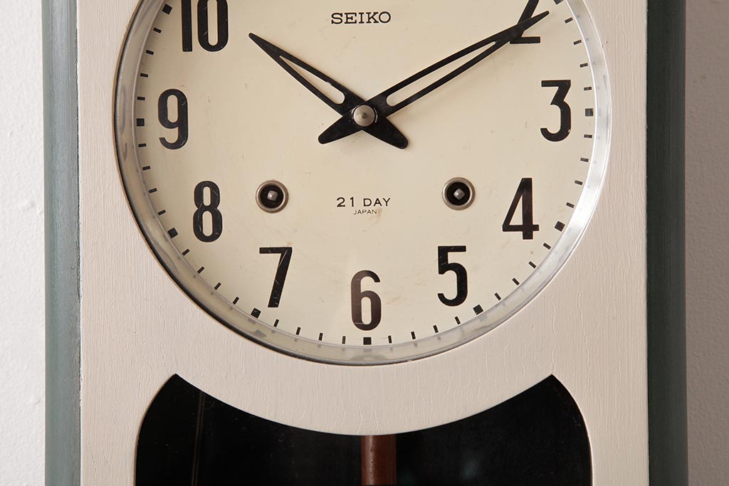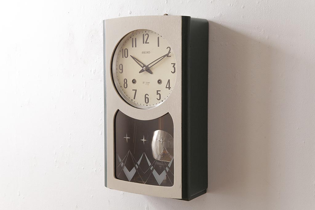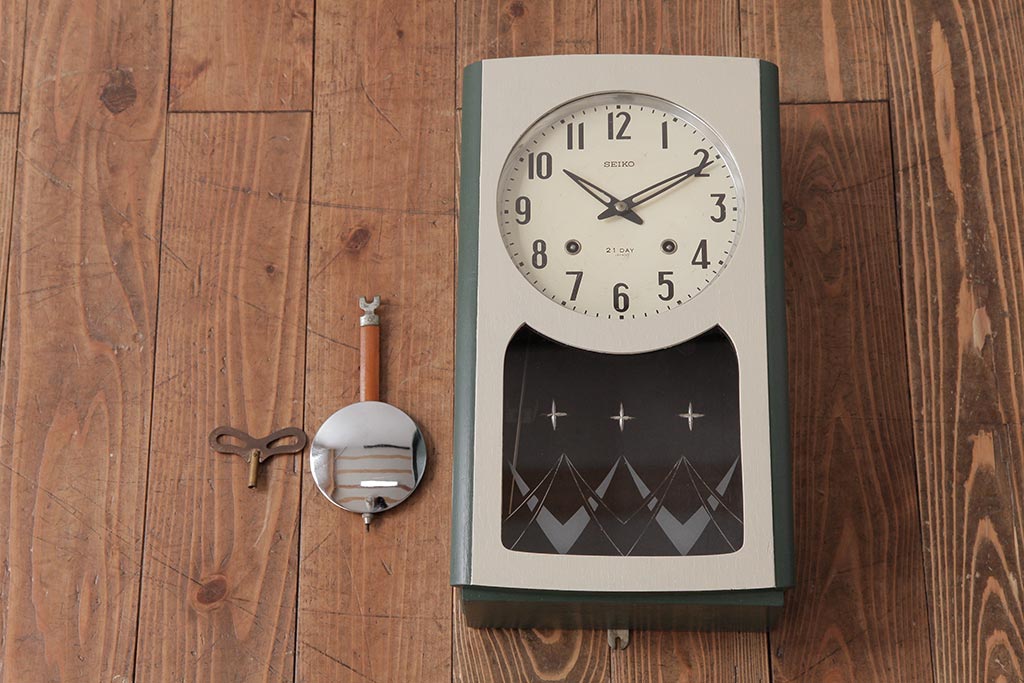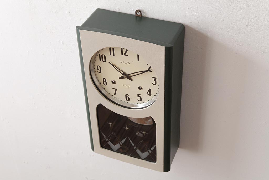 時計> 掛け時計 > 昭和レトロ雑貨 セイコー(SEIKO) 手巻き式 21DAY レトロなツートンカラーのペイント柱時計(掛け時計、振り子時計)(R-037662)
