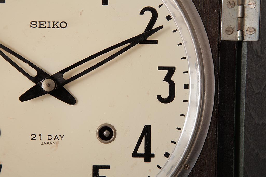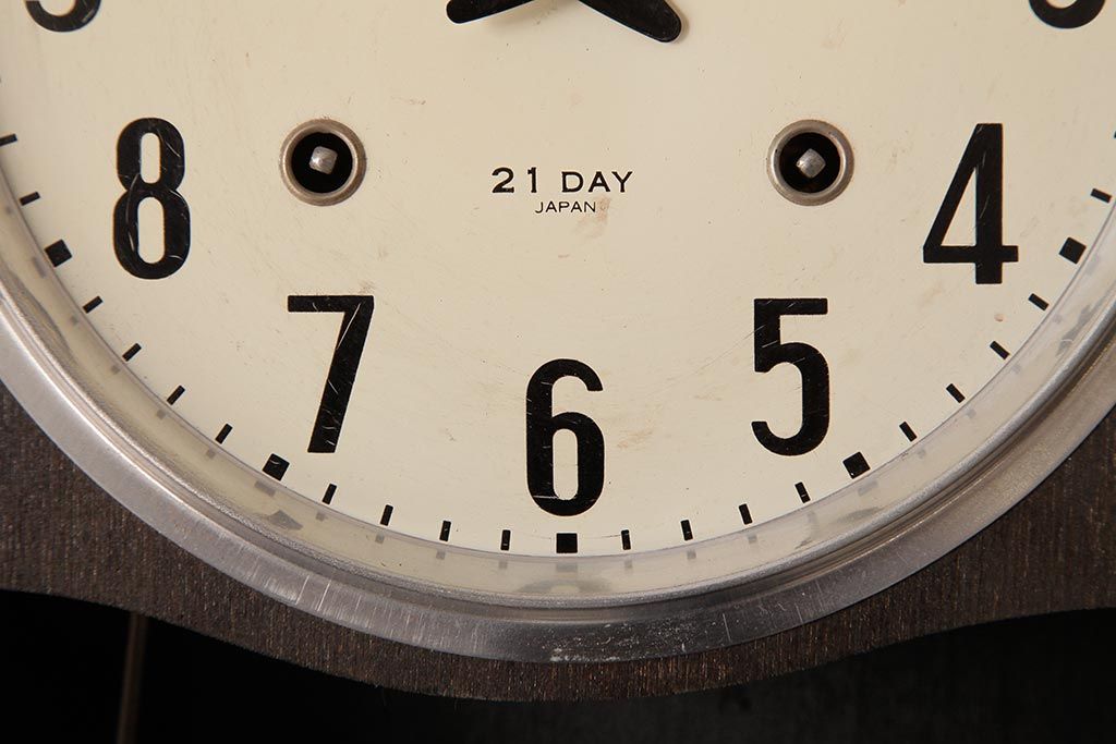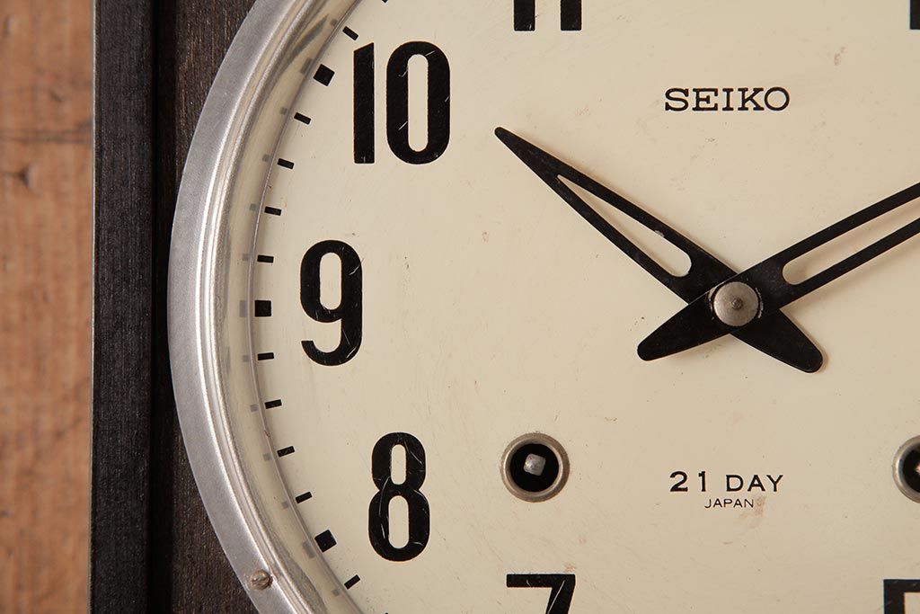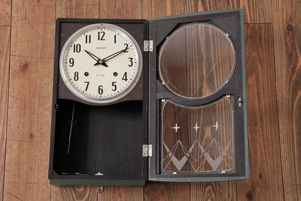 昭和レトロ雑貨 セイコー(SEIKO) 手巻き式 21DAY レトロなツートンカラーのペイント柱時計(掛け時計、振り子時計)(R-037662)