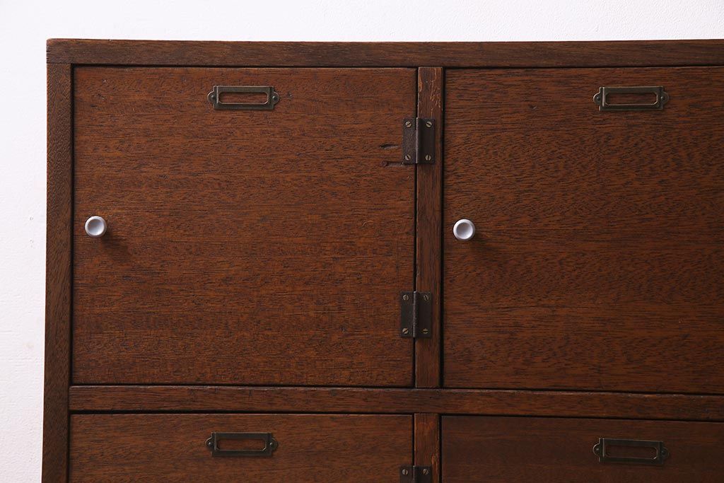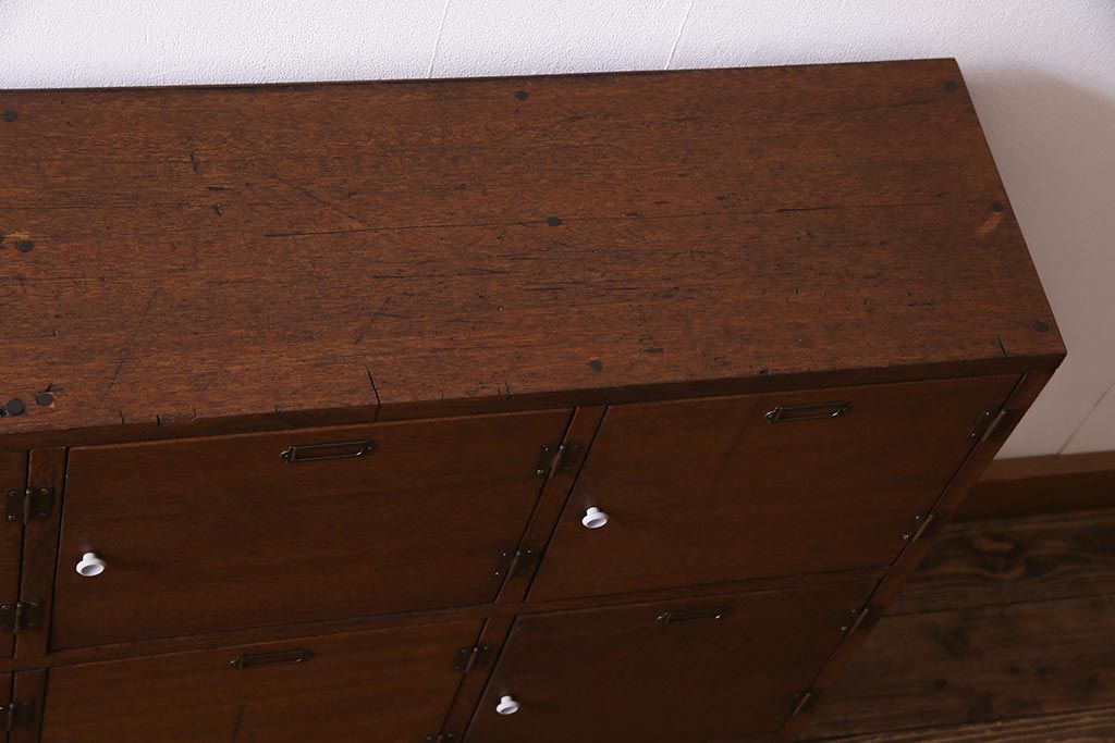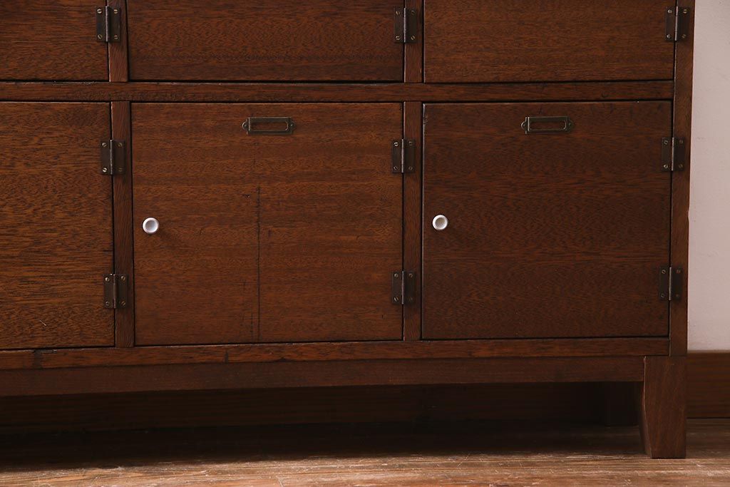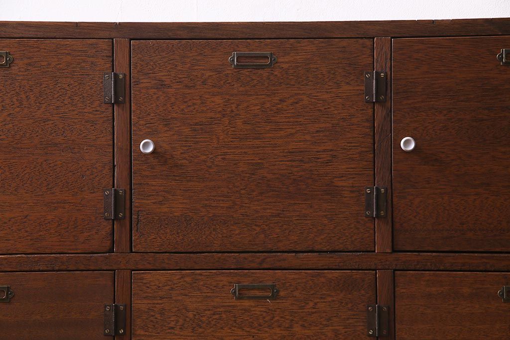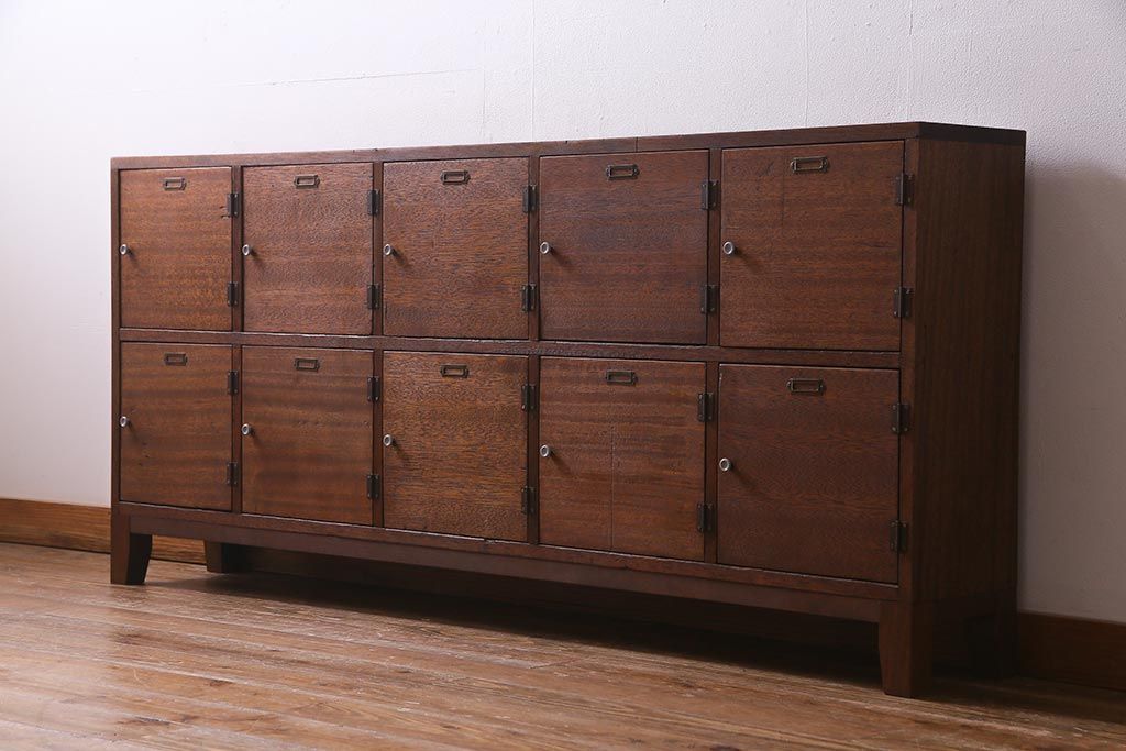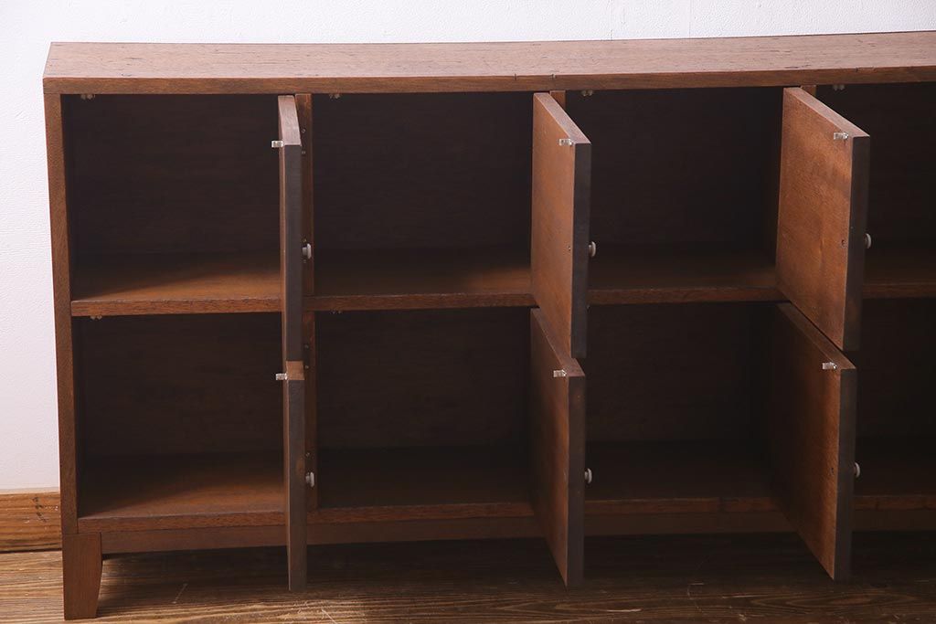 レトロ家具 木製脚付き レトロやナチュラルインテリアにぴったりなネームプレート付きの横型ロッカー(マス目戸棚)(R-037594)
