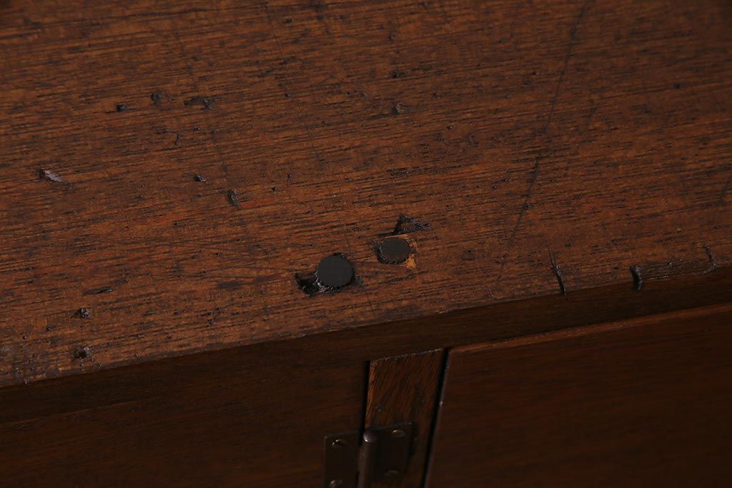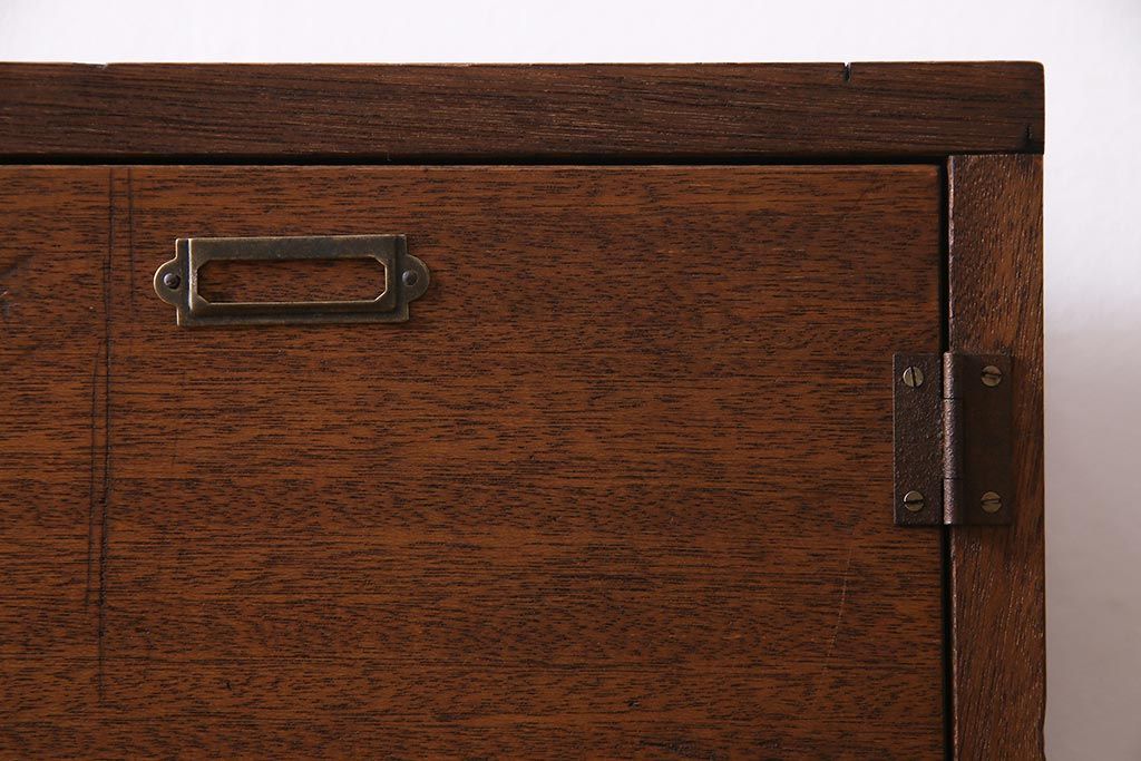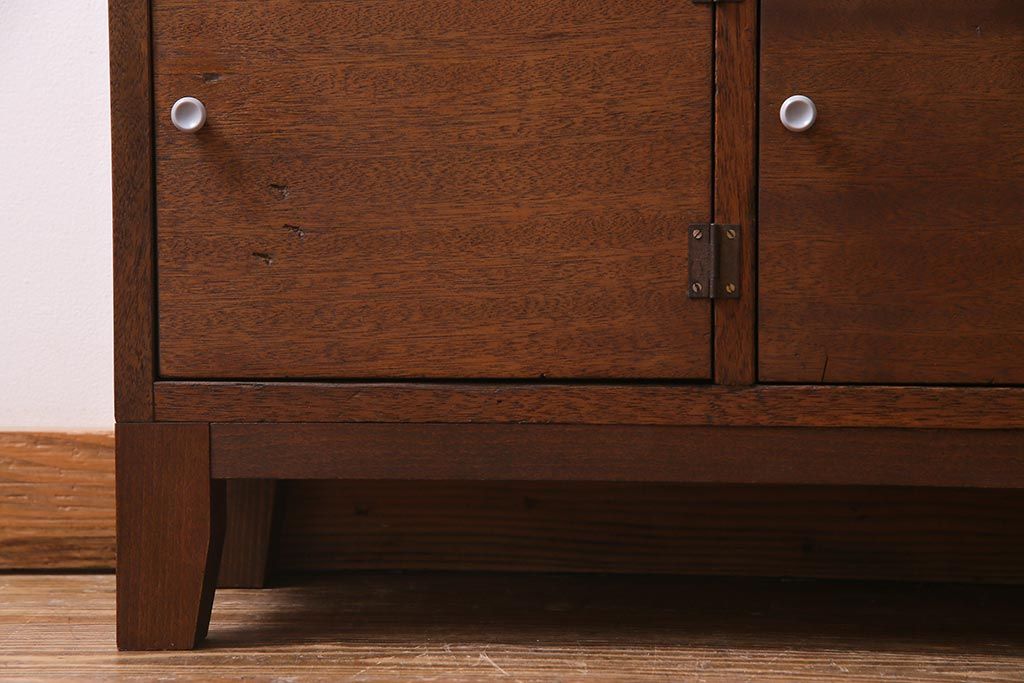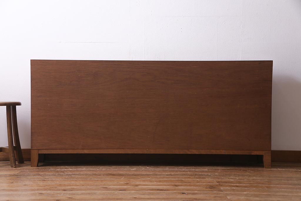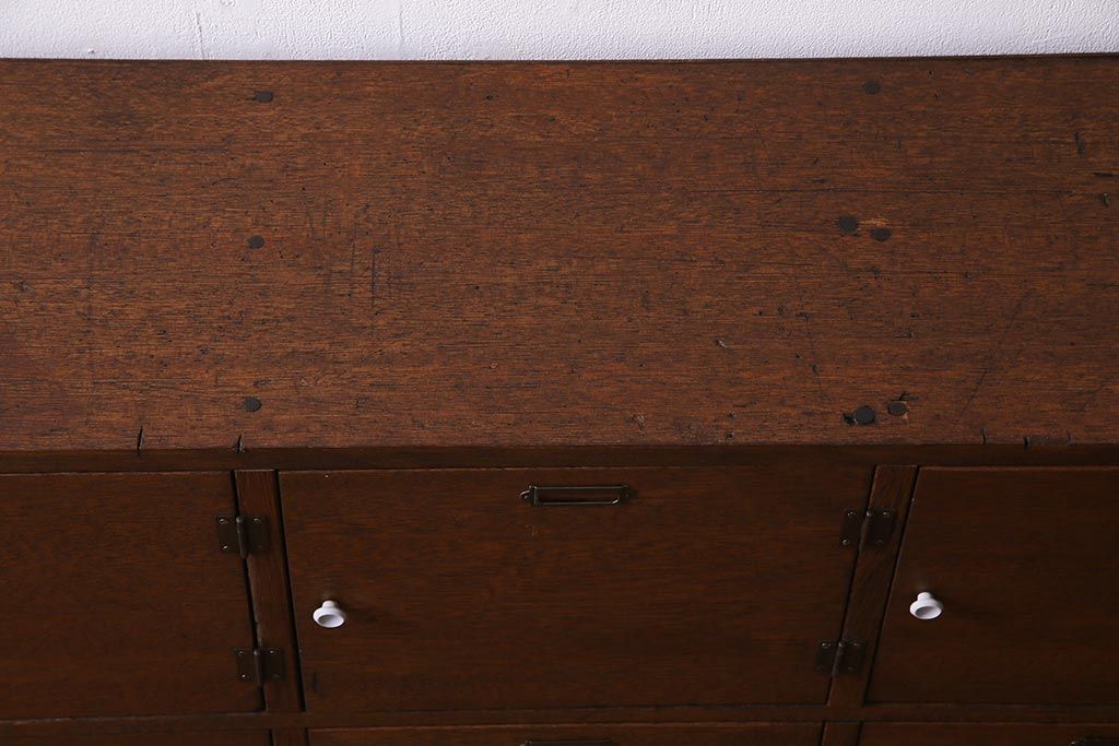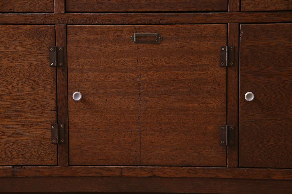レトロ家具 木製脚付き レトロやナチュラルインテリアにぴったりなネームプレート付きの横型ロッカー(マス目戸棚)(R-037594)