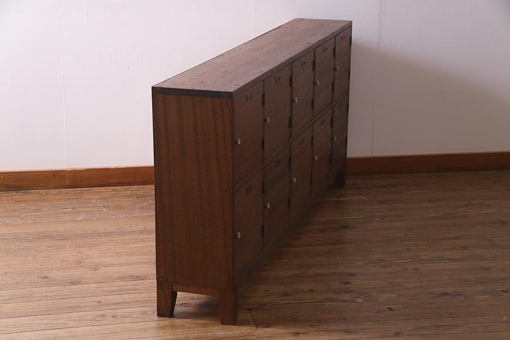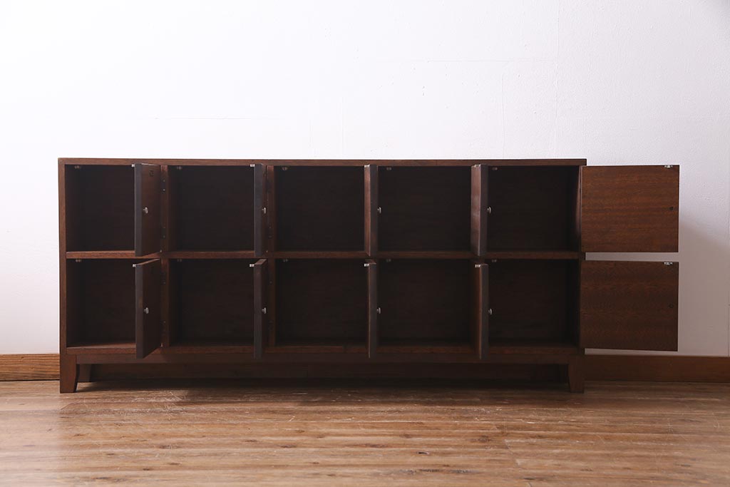 レトロ家具 木製脚付き レトロやナチュラルインテリアにぴったりなネームプレート付きの横型ロッカー(マス目戸棚)(R-037594)です。