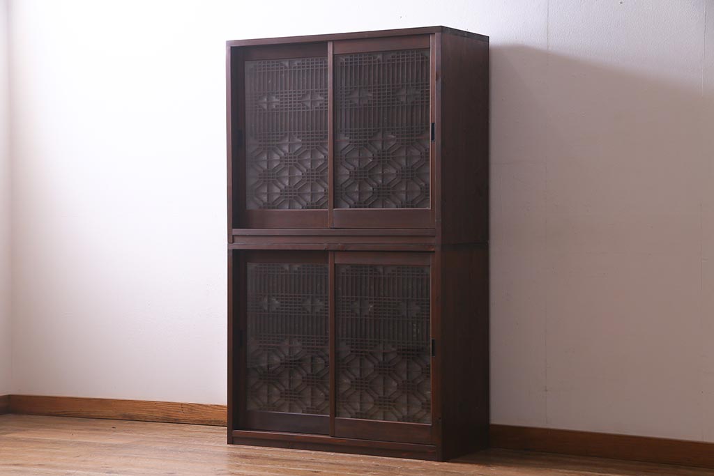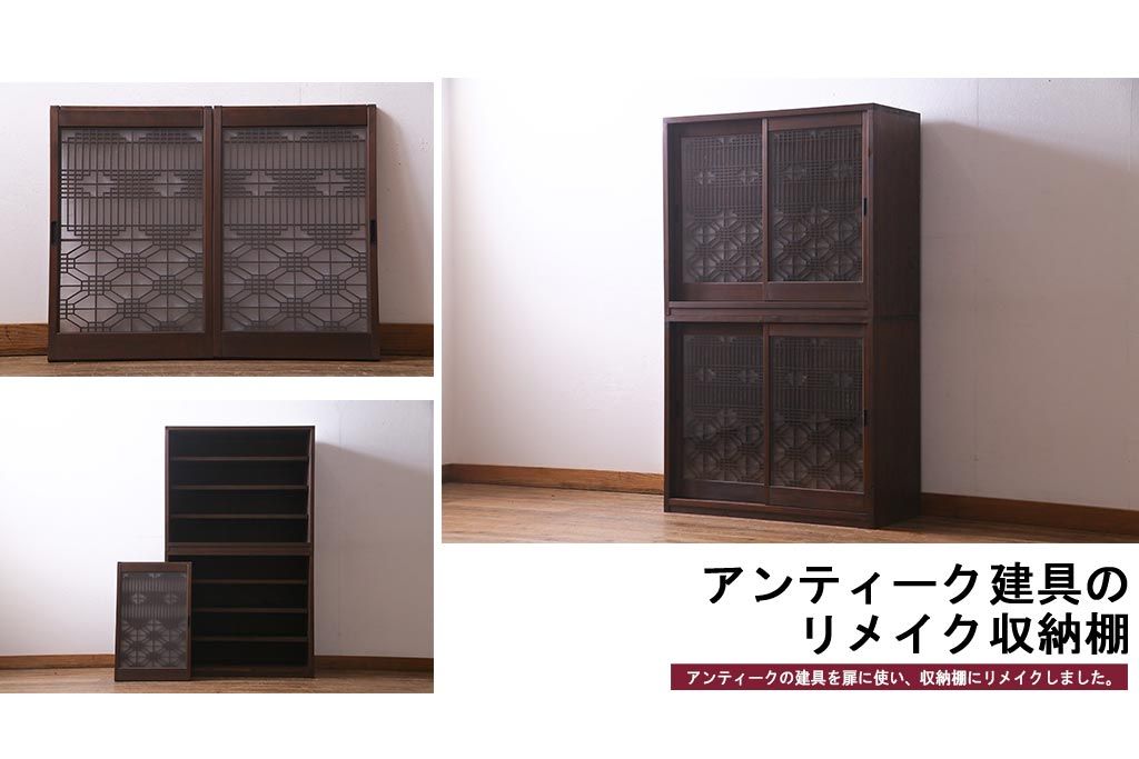 ラフジュ工房オリジナル アンティーク建具リメイク 和の風情漂う重ね戸棚(書院戸、組子、キャビネット)(R-037653)です。