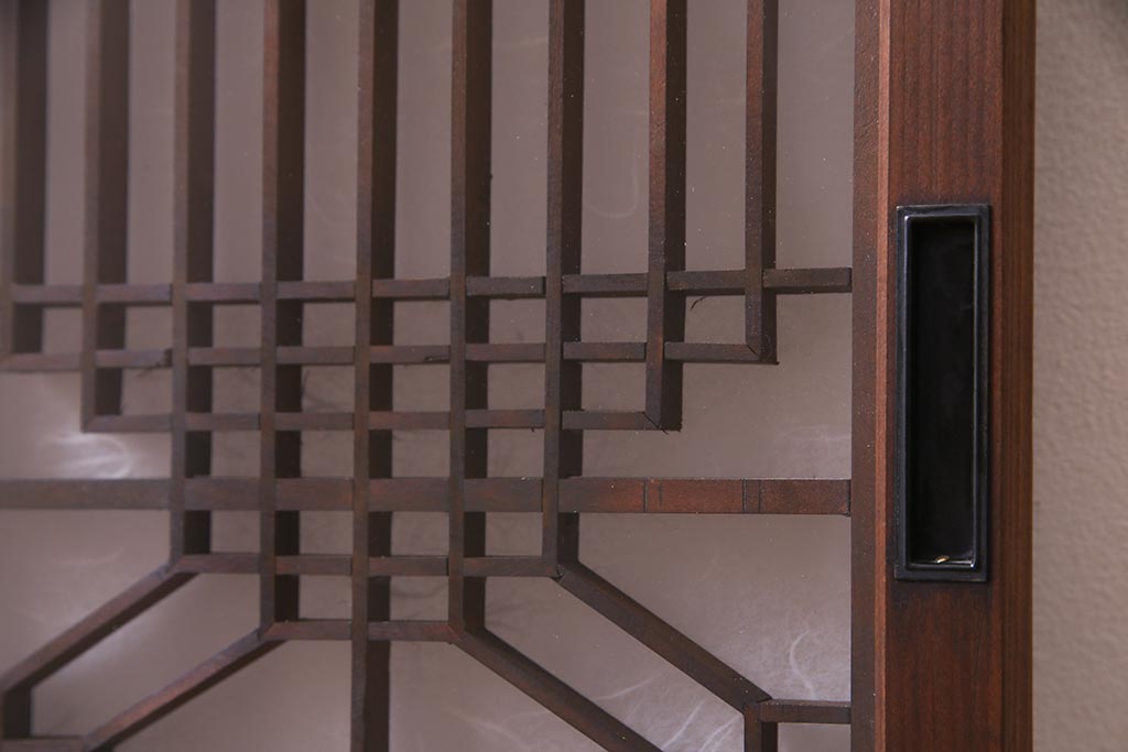 建具の表面にはクリアガラス、裏面には障子紙柄のアクリルパネルが入っております。