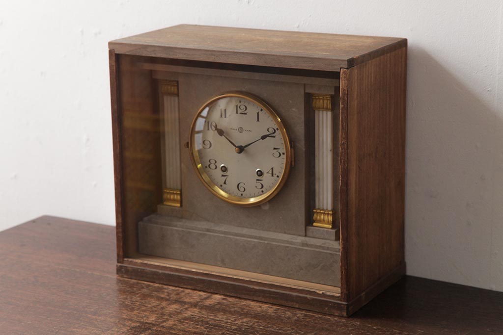 アンティーク雑貨 SEIKOSHA(精工舎、セイコー) 手巻き式 高級感のあるデザインの置き時計・箱付き(振り子時計)(R-037557)