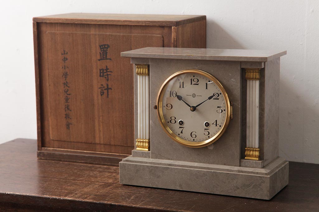 時計> 置き時計 > アンティーク雑貨 SEIKOSHA(精工舎、セイコー) 手巻き式 高級感のあるデザインの置き時計・箱付き(振り子時計)(R-037557)