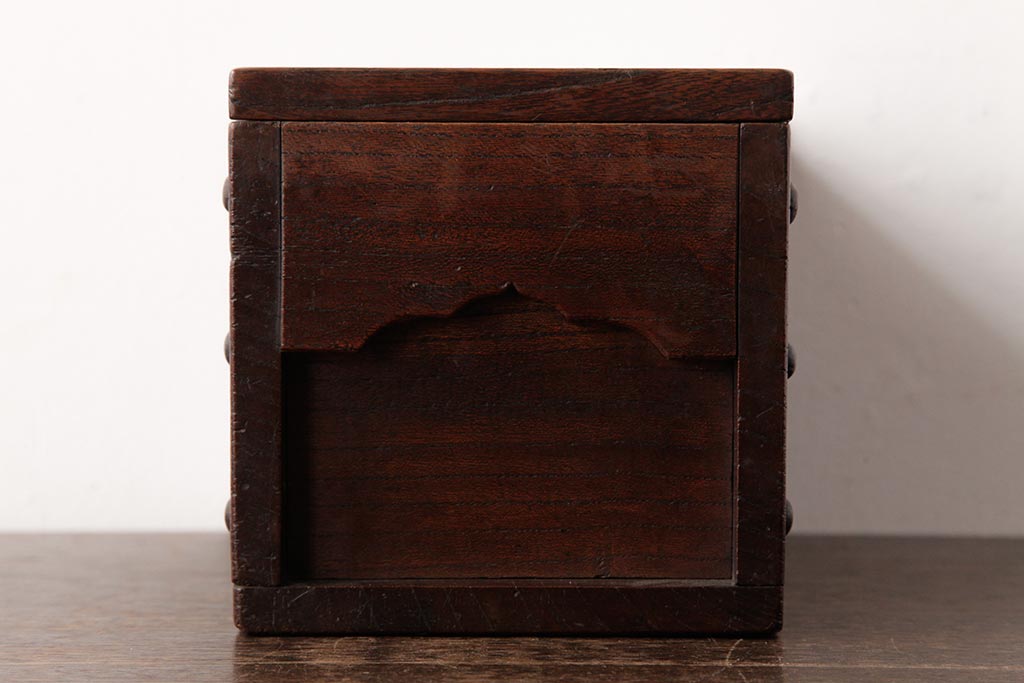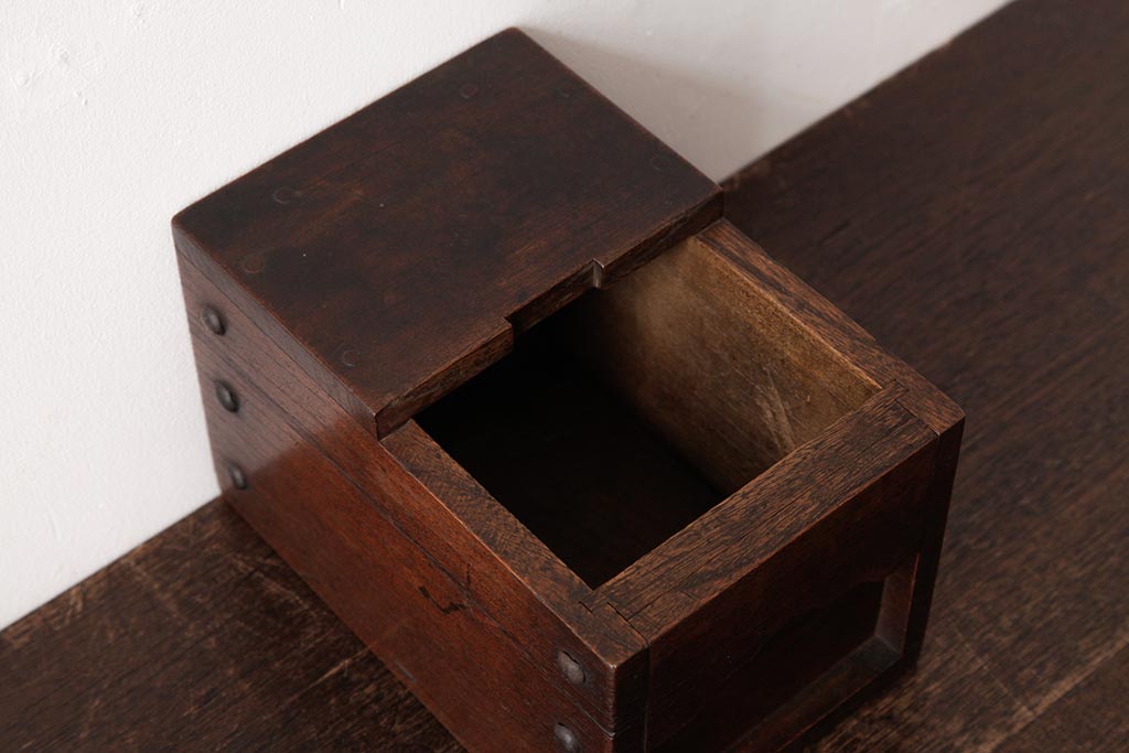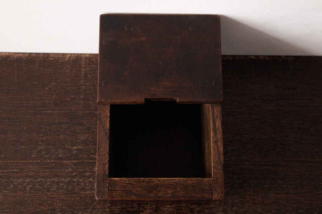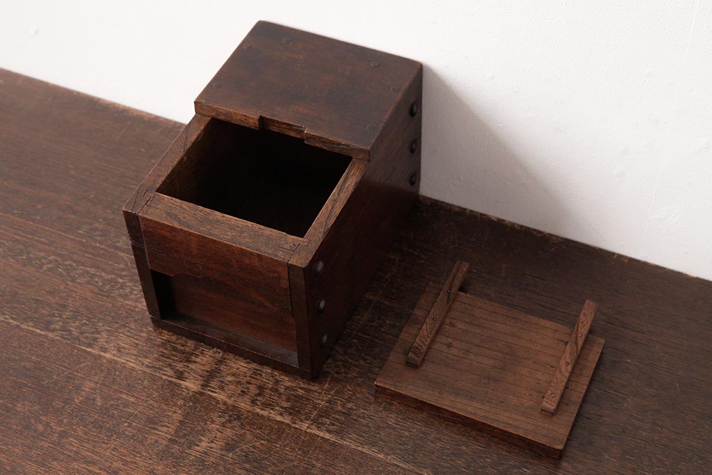 小物収納・トランク> 木箱 > アンティーク雑貨 古民具 明治大正期 総ケヤキ材 古い質感が味わい感じる銭箱(銭函)(R-037422)