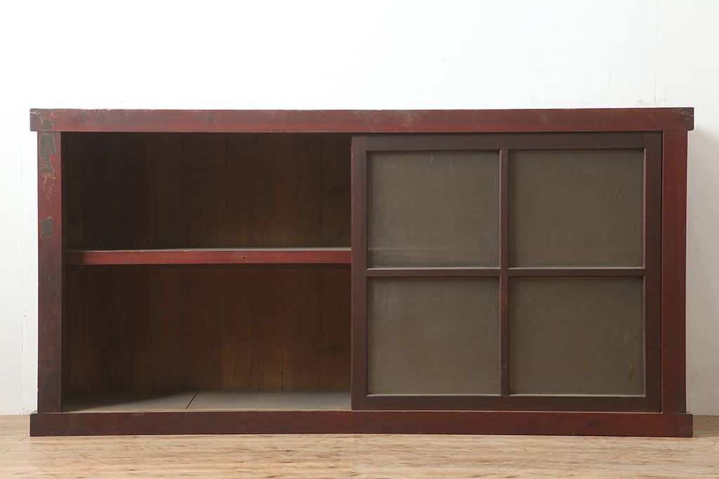 ラフジュ工房> キャビネット・戸棚> サイドキャビネット > 和製アンティーク 大正期 漆塗り 水屋キャビネット・上段(戸棚、水屋箪笥、収納棚)(R-036615)