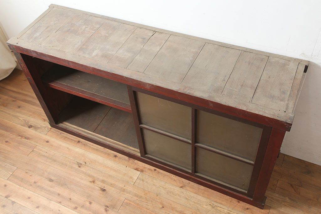 和製アンティーク 大正期 漆塗り 水屋キャビネット・上段(戸棚、水屋箪笥、収納棚)(R-036615)