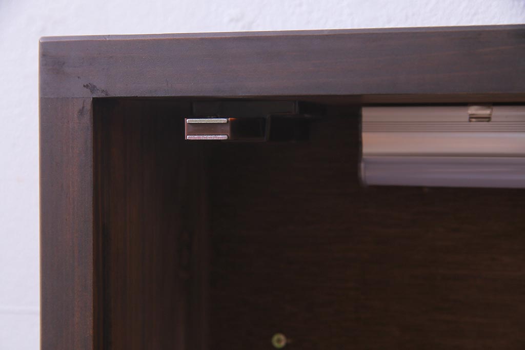 開口部にはマグネットキャッチを取り付けております。押すと開きます。