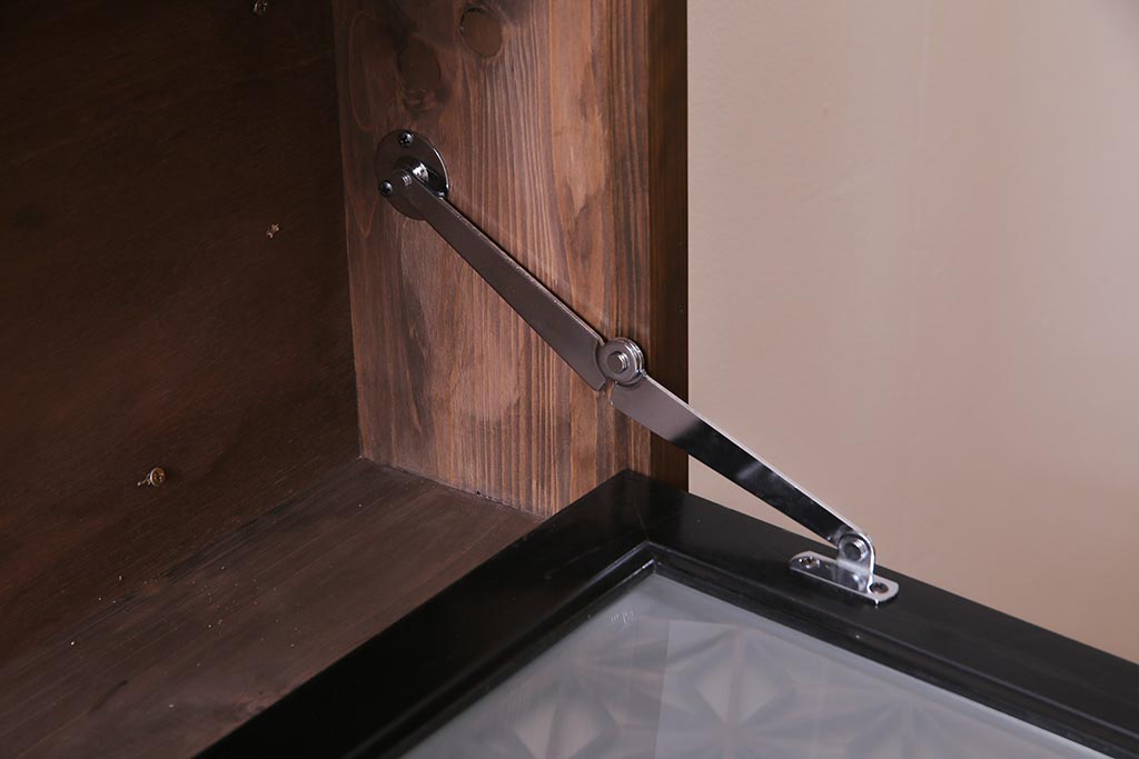 開口部にはマグネットキャッチを取り付けております。押すと開きます。