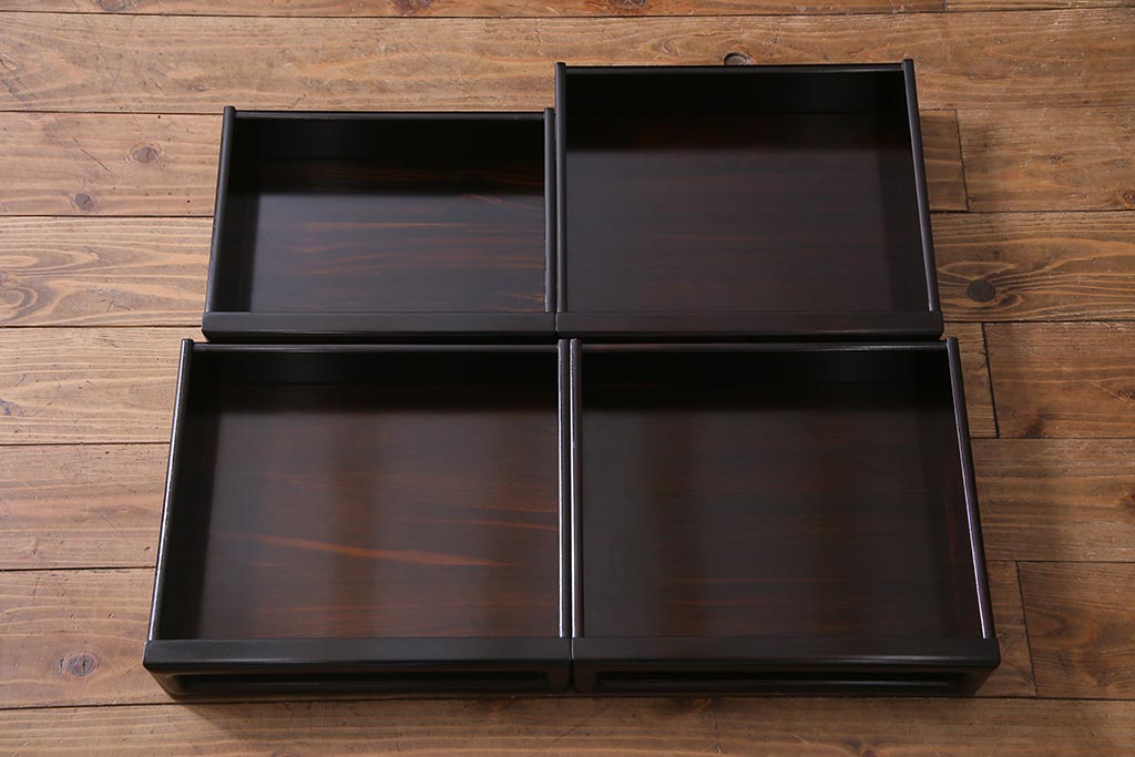 和箪笥 > 中古 民芸家具 和製 唐木 縞黒檀材 蒔絵と螺鈿の細工が高級感を放つ茶棚(違い棚、収納棚、飾り棚)(R-037648)