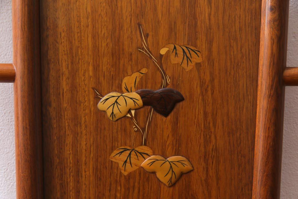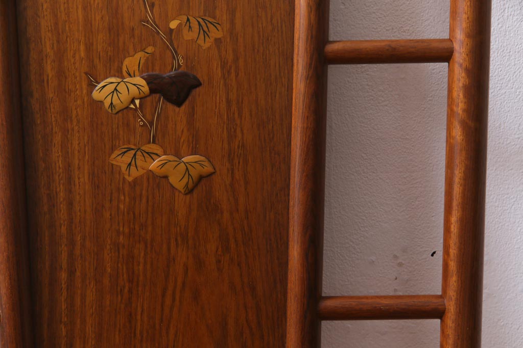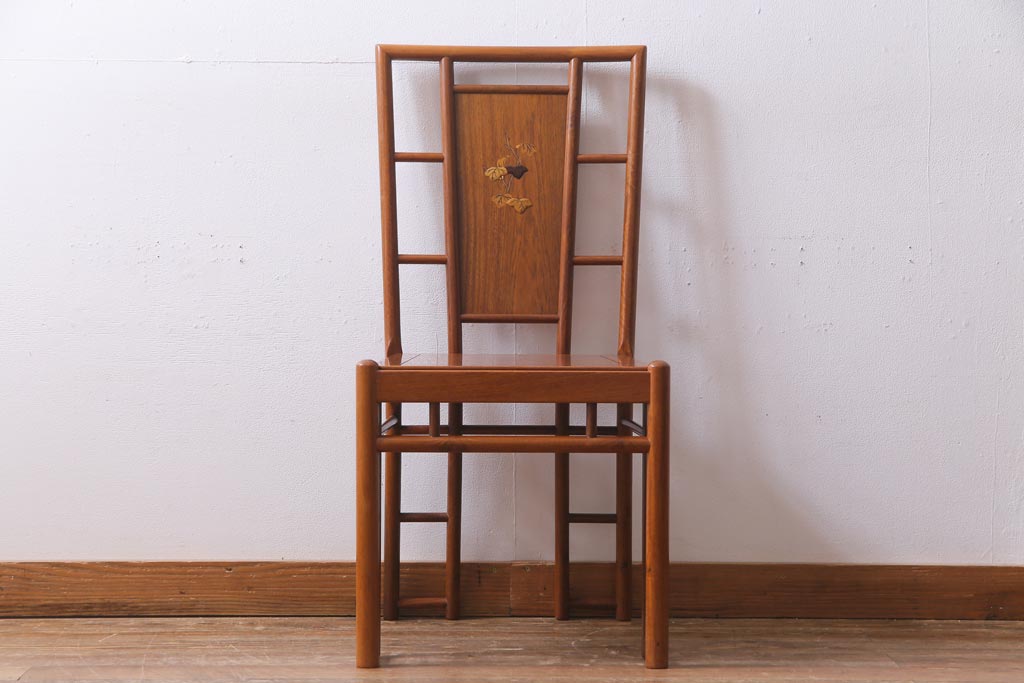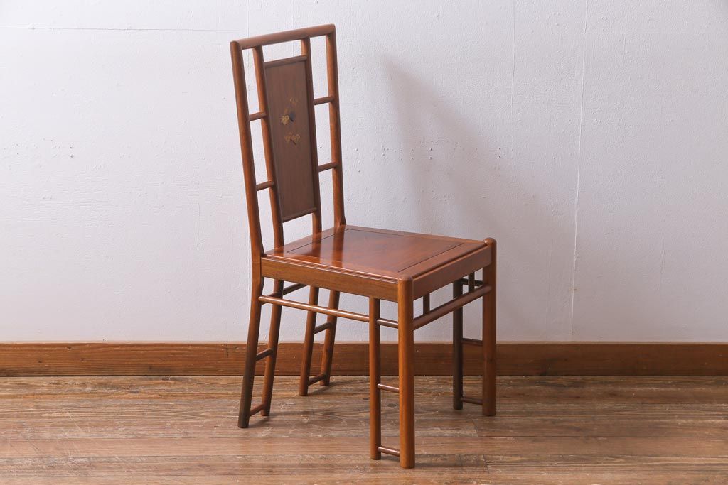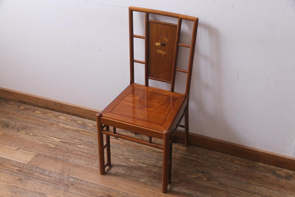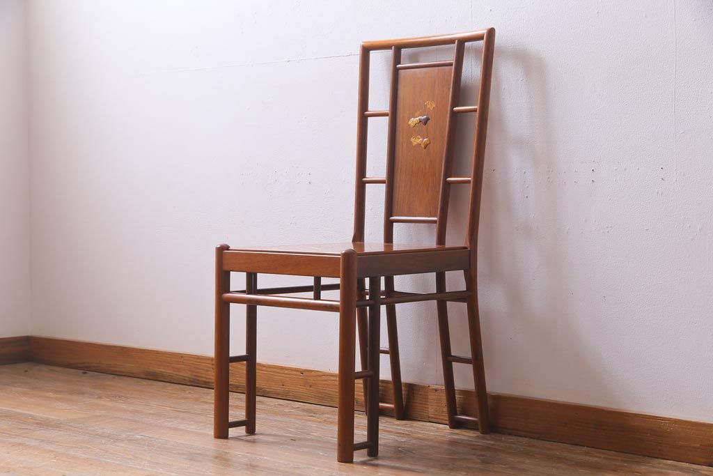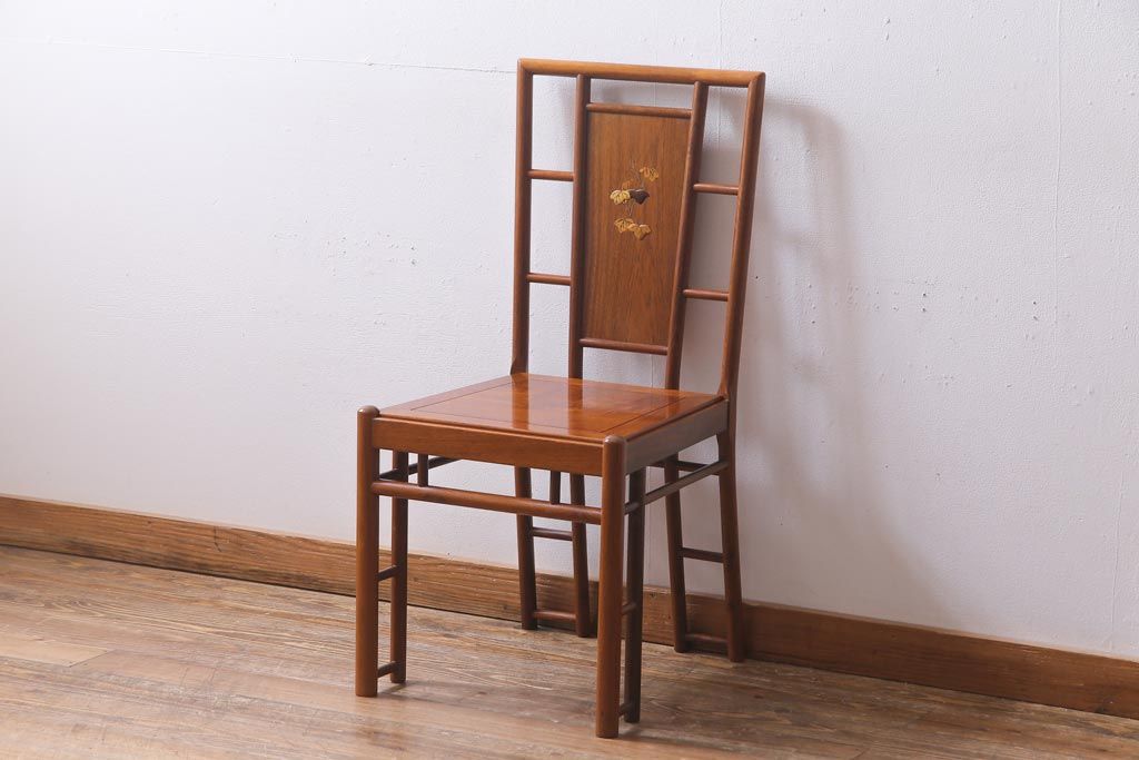 中古 唐木材 蔦の葉の図 象嵌風意匠とフレームのデザインが目を引くダイニングチェア(椅子)(R-037712)