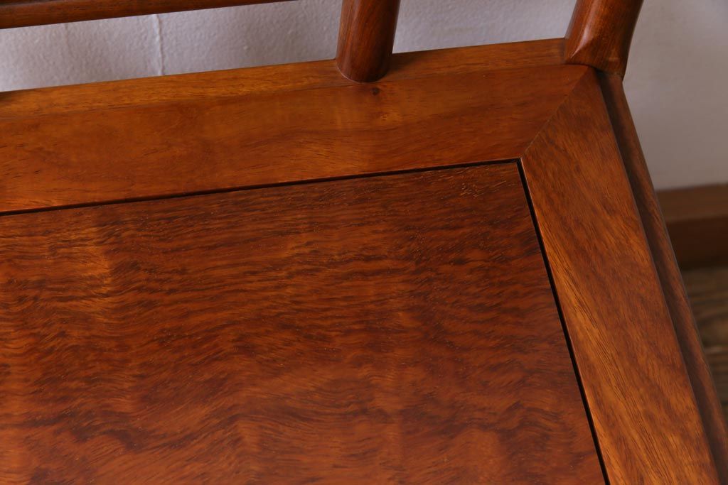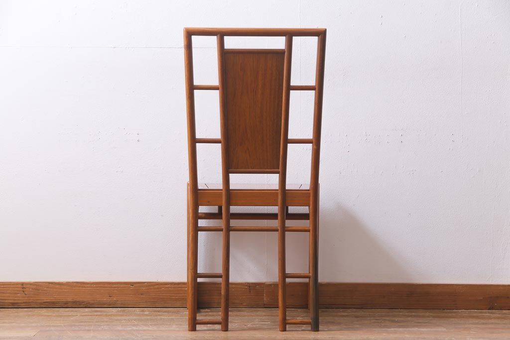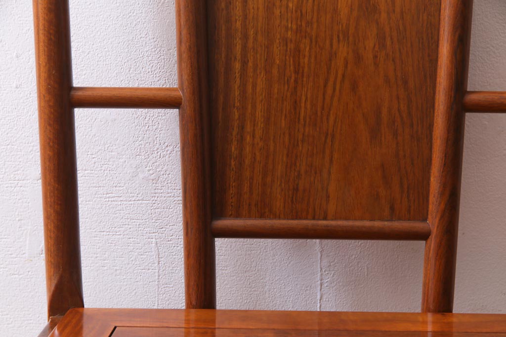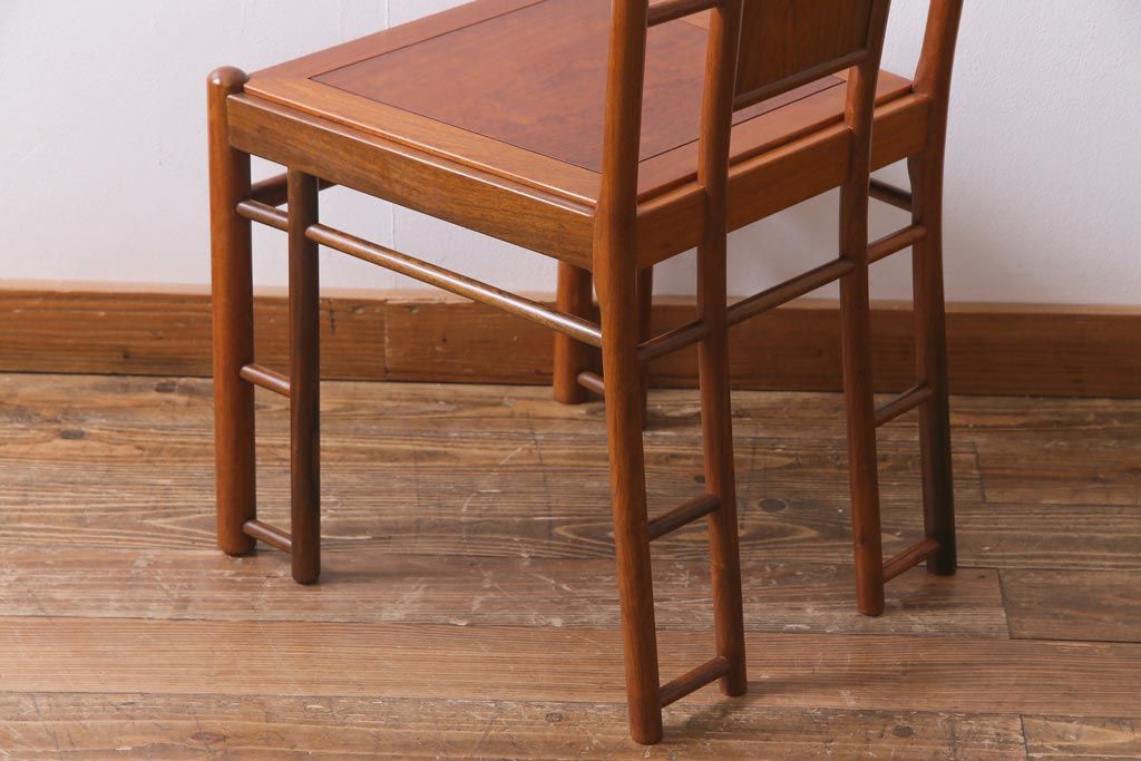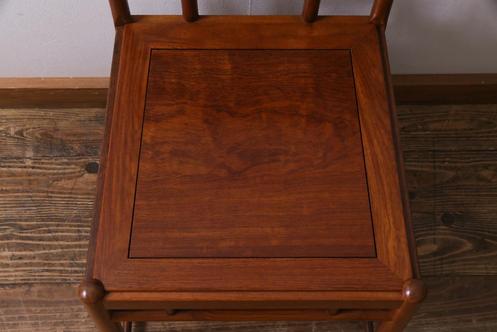 中古 唐木材 蔦の葉の図 象嵌風意匠とフレームのデザインが目を引くダイニングチェア(椅子)(R-037712)です。