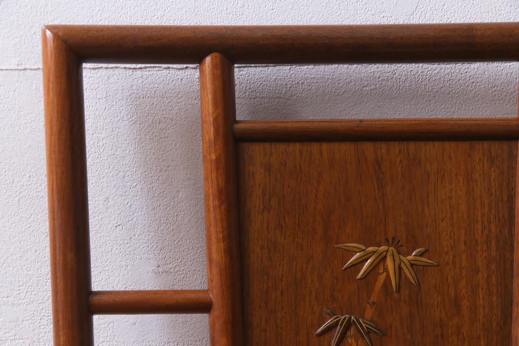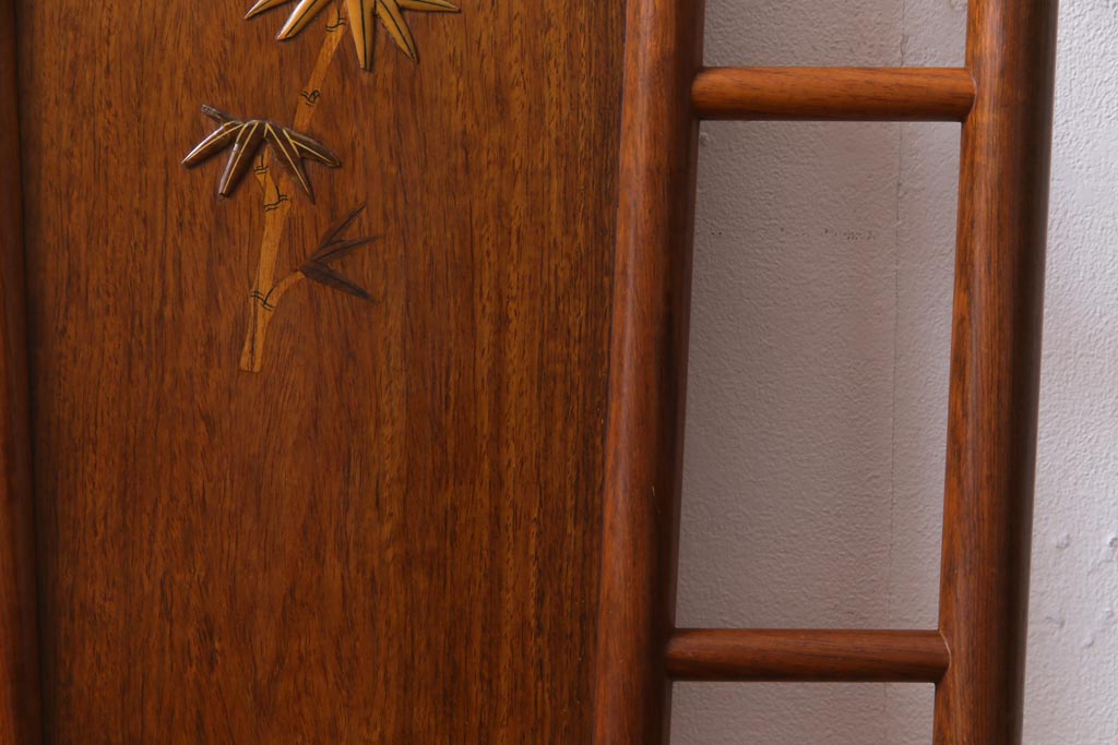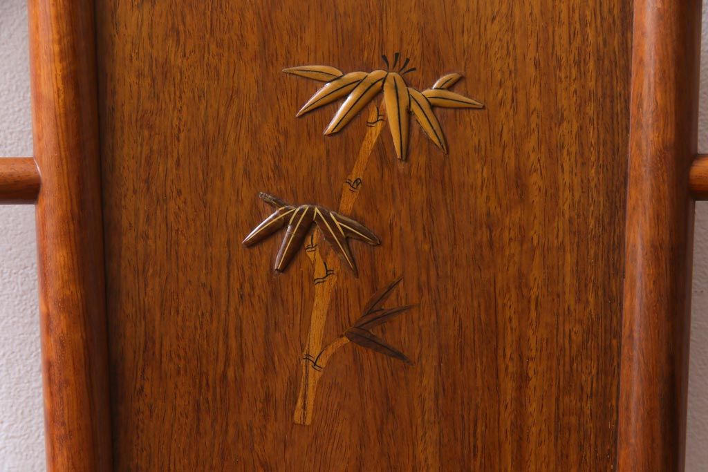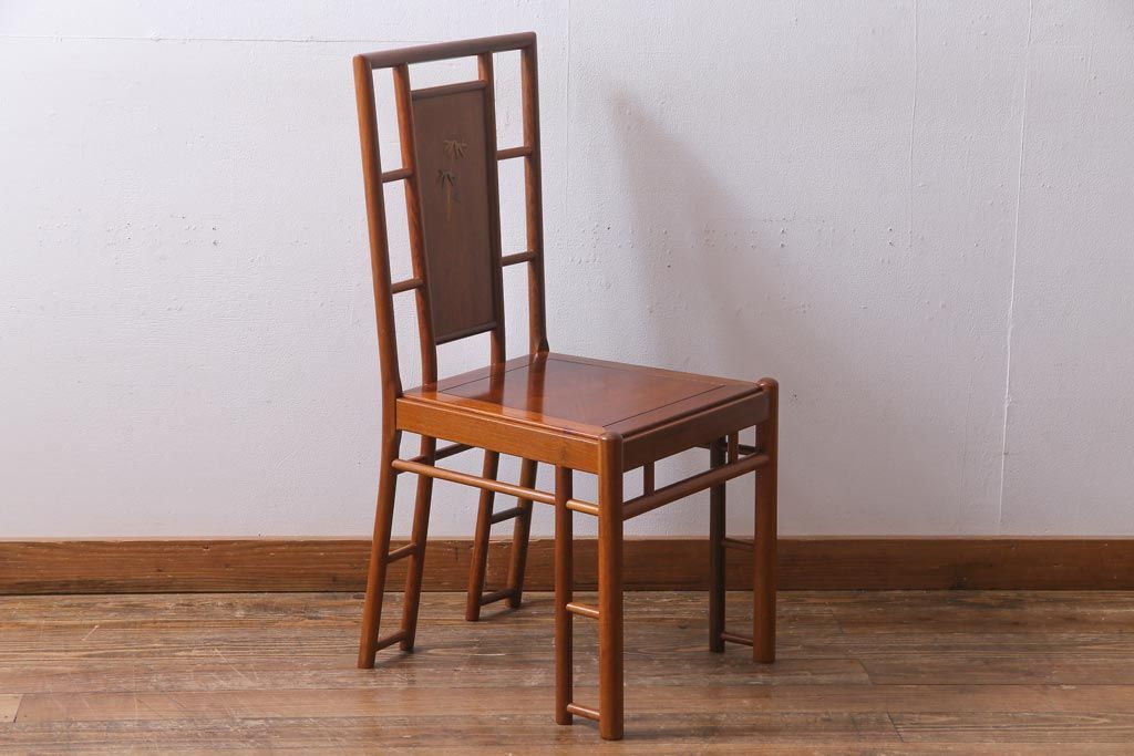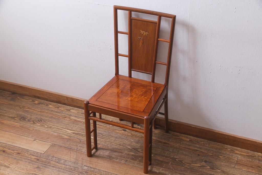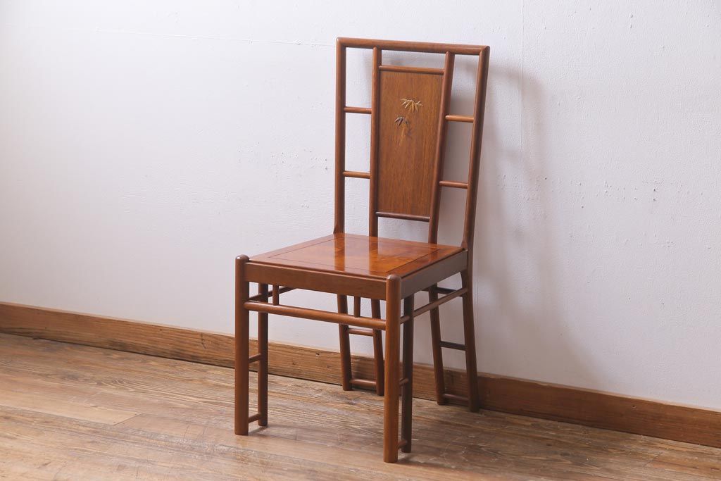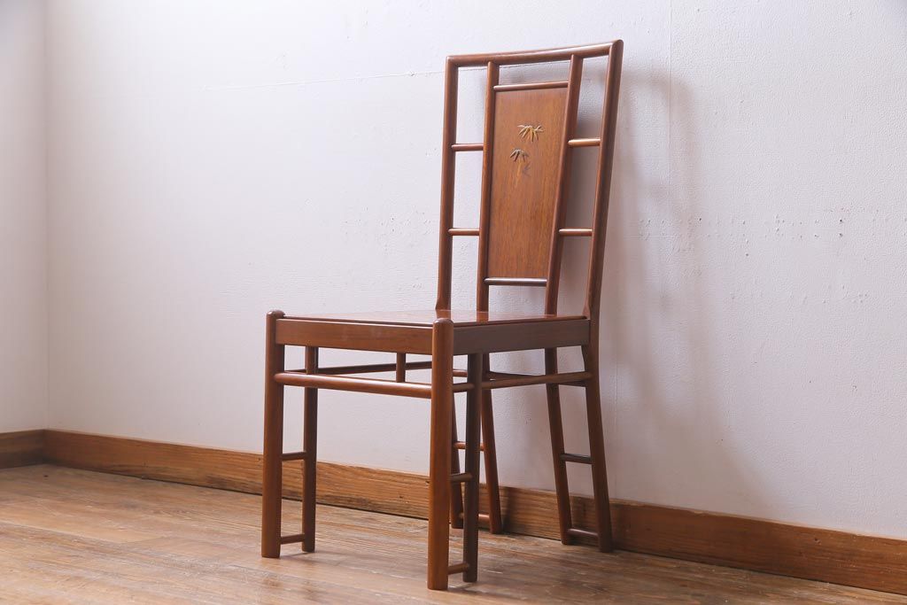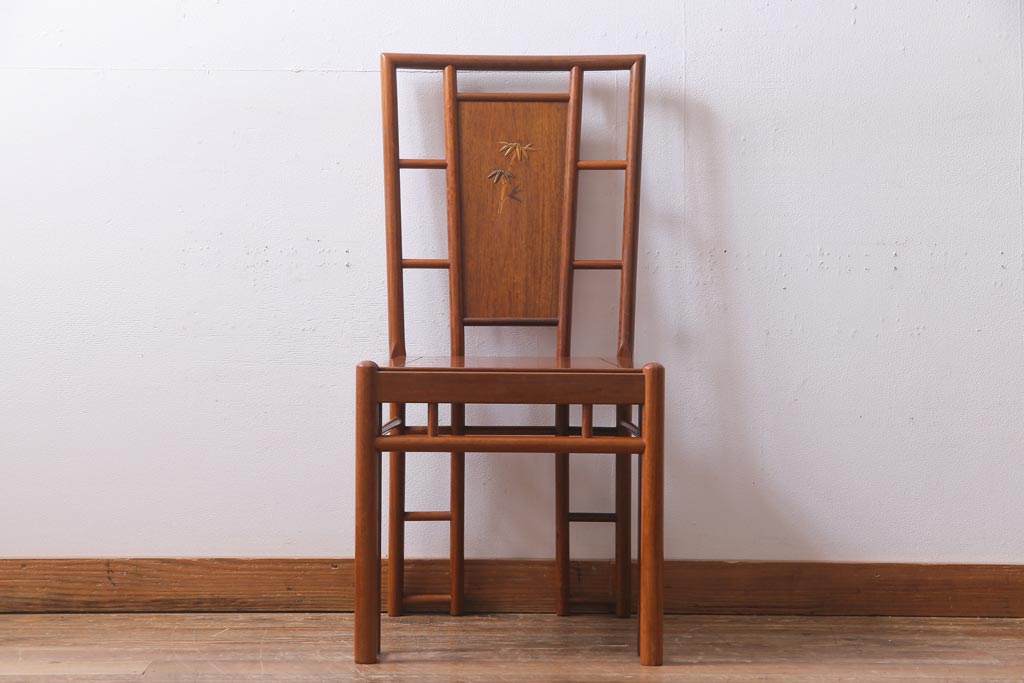 中古 唐木材 竹の図 象嵌風意匠とフレームのデザインが目を引くダイニングチェア(椅子)(R-037713)