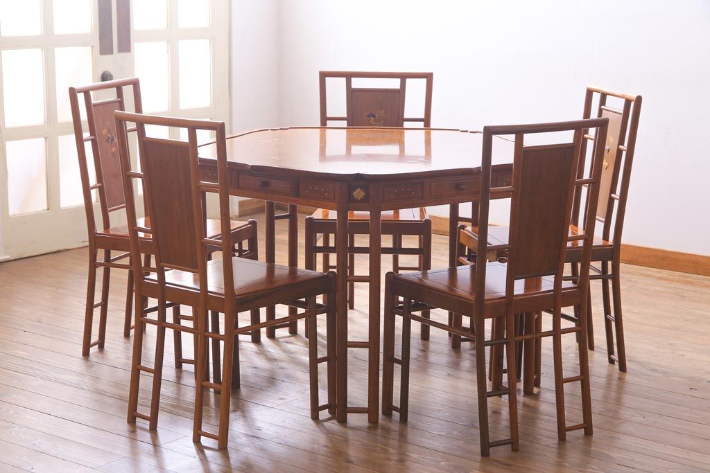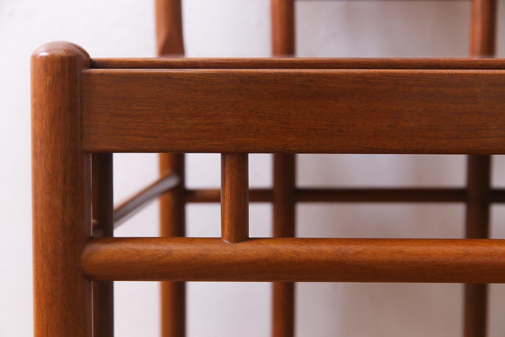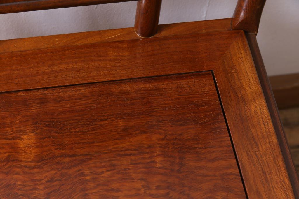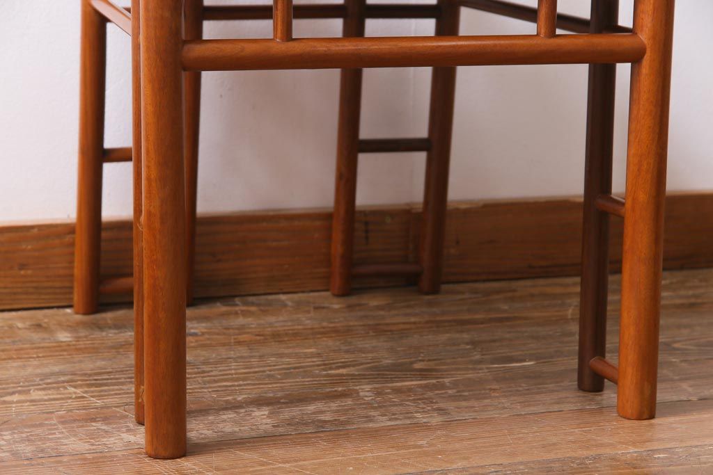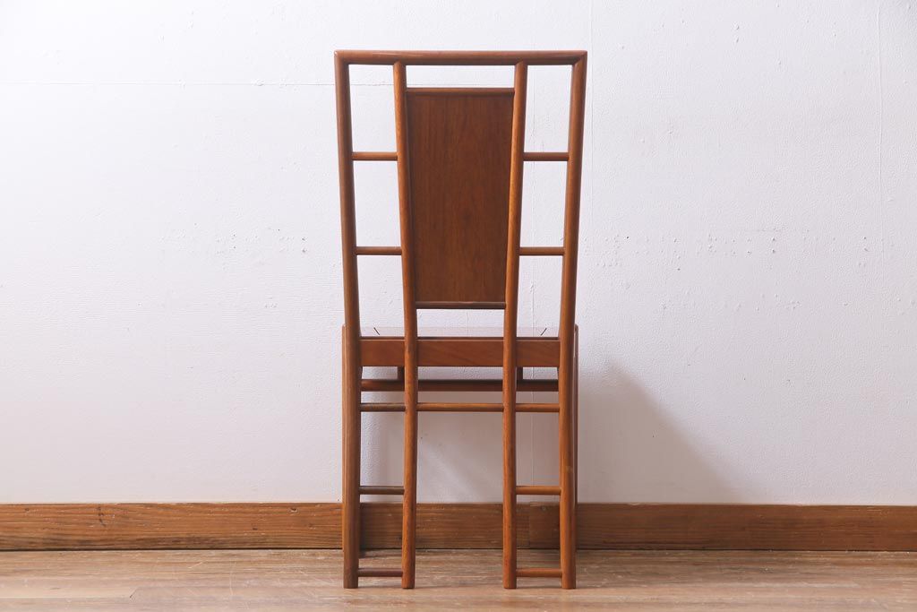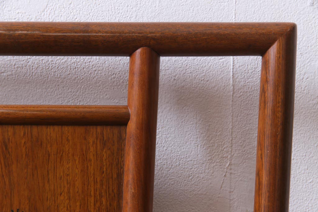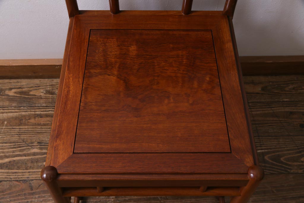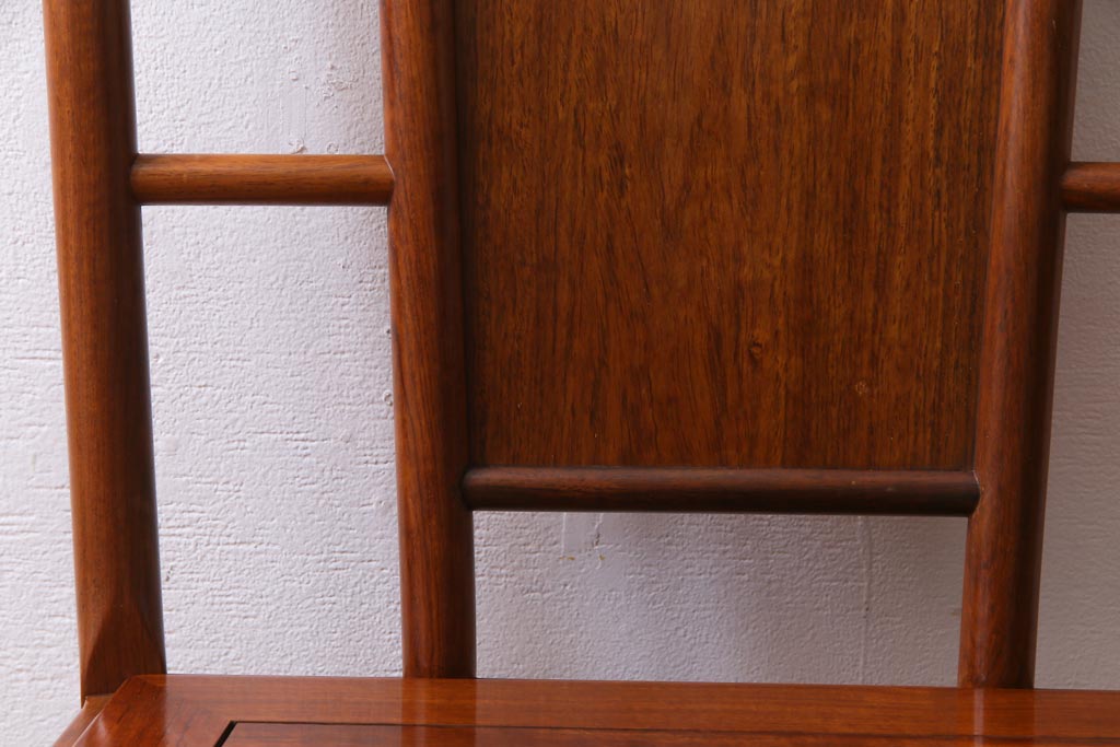 中古 唐木材 竹の図 象嵌風意匠とフレームのデザインが目を引くダイニングチェア(椅子)(R-037713)
