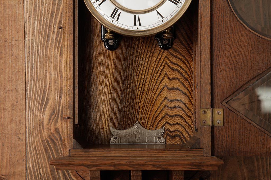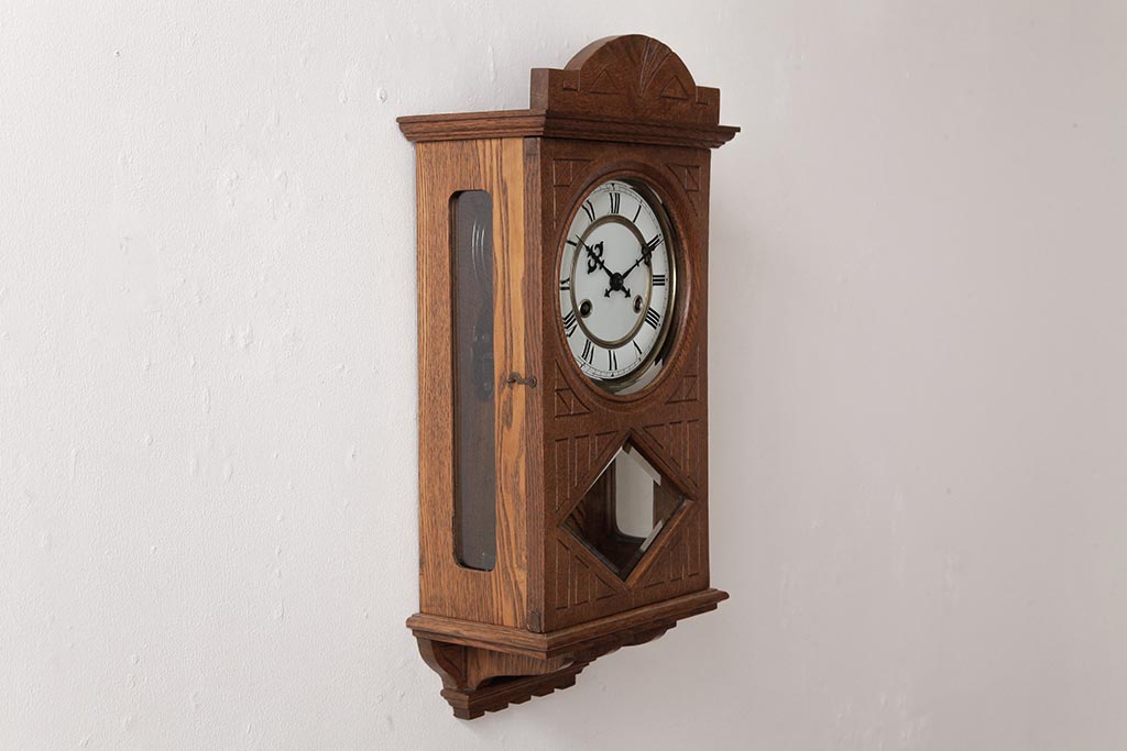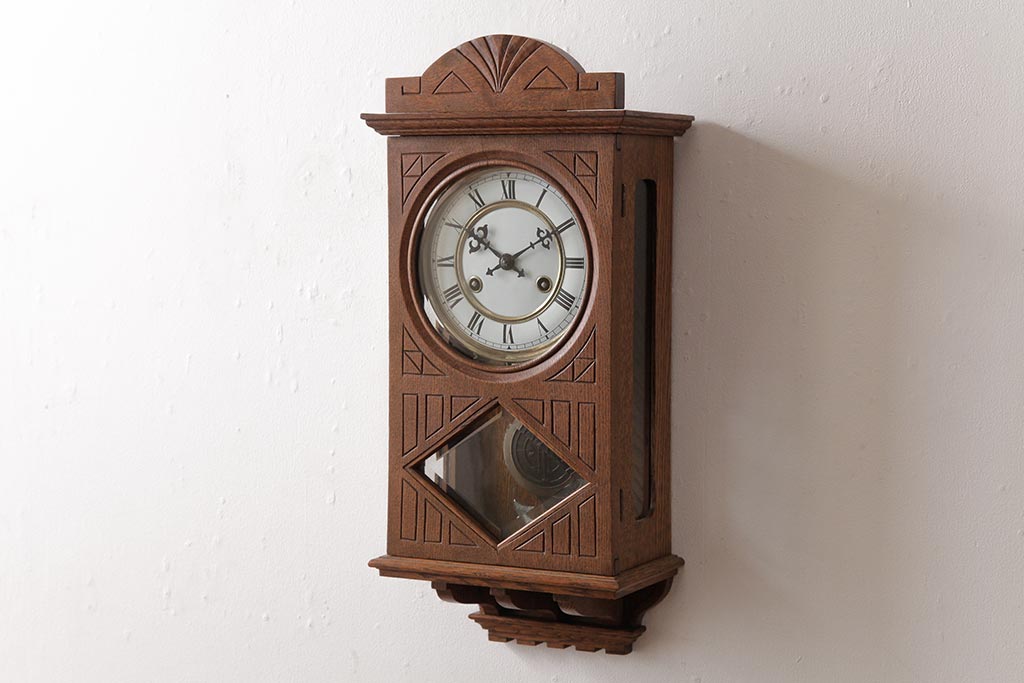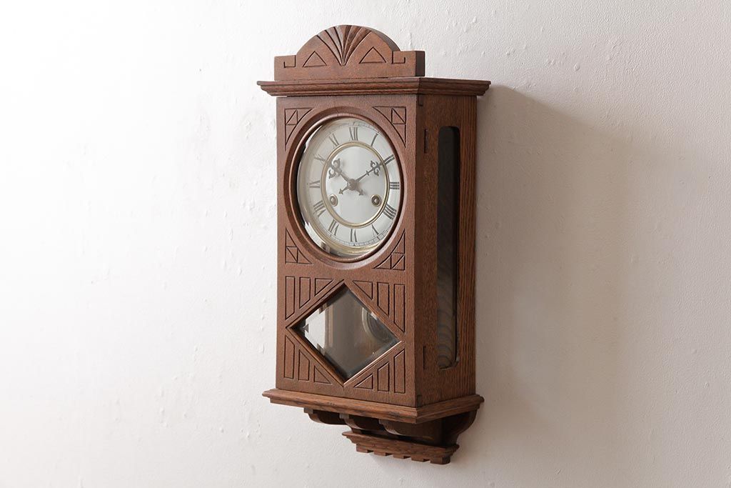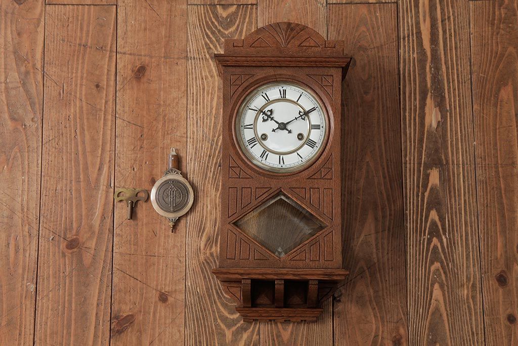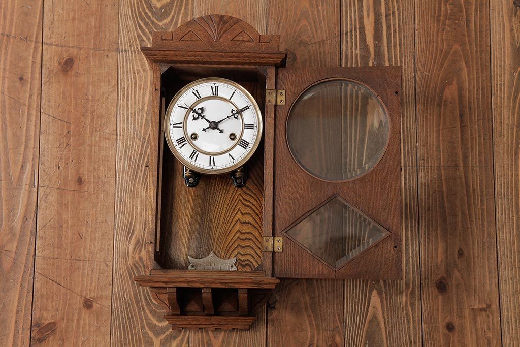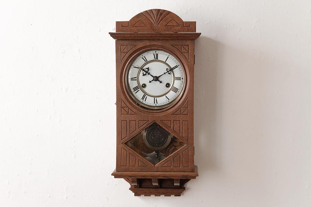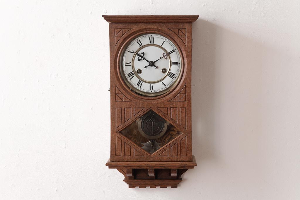 時計> 掛け時計 > アンティーク雑貨 ホーロー文字盤がおしゃれな手巻き式振り子時計(柱時計、掛け時計、古時計)(R-037642)