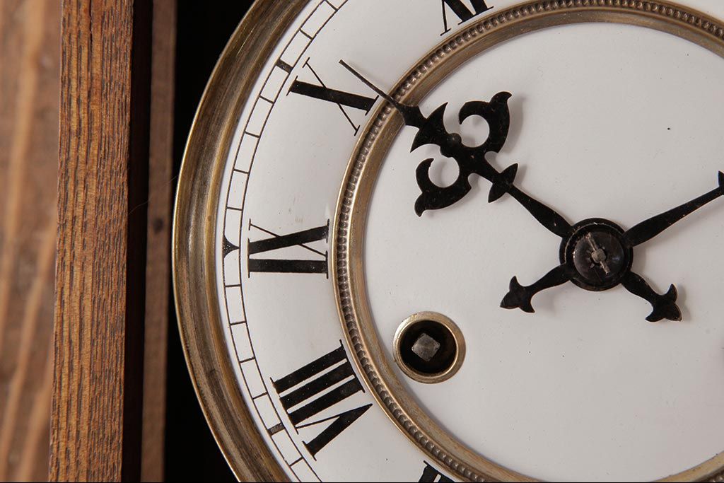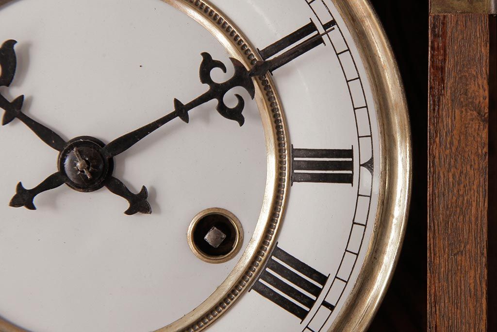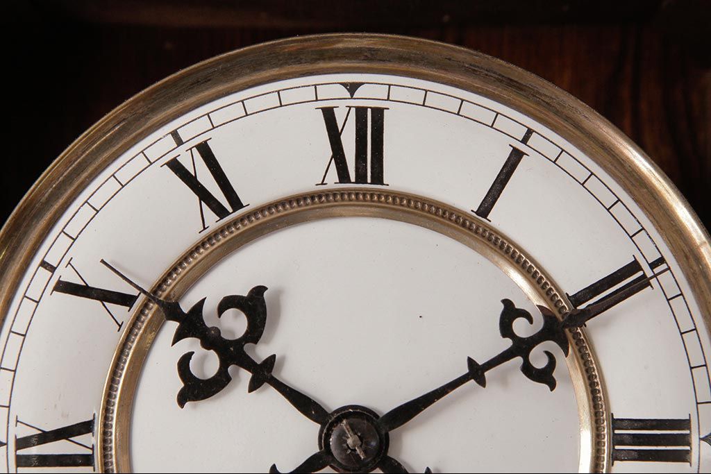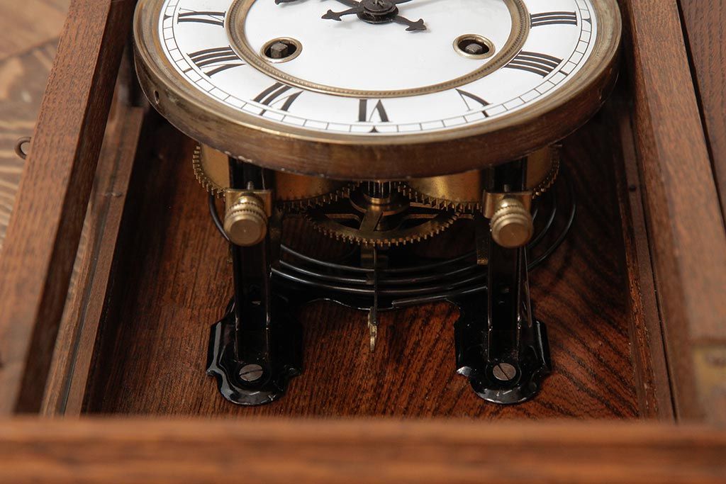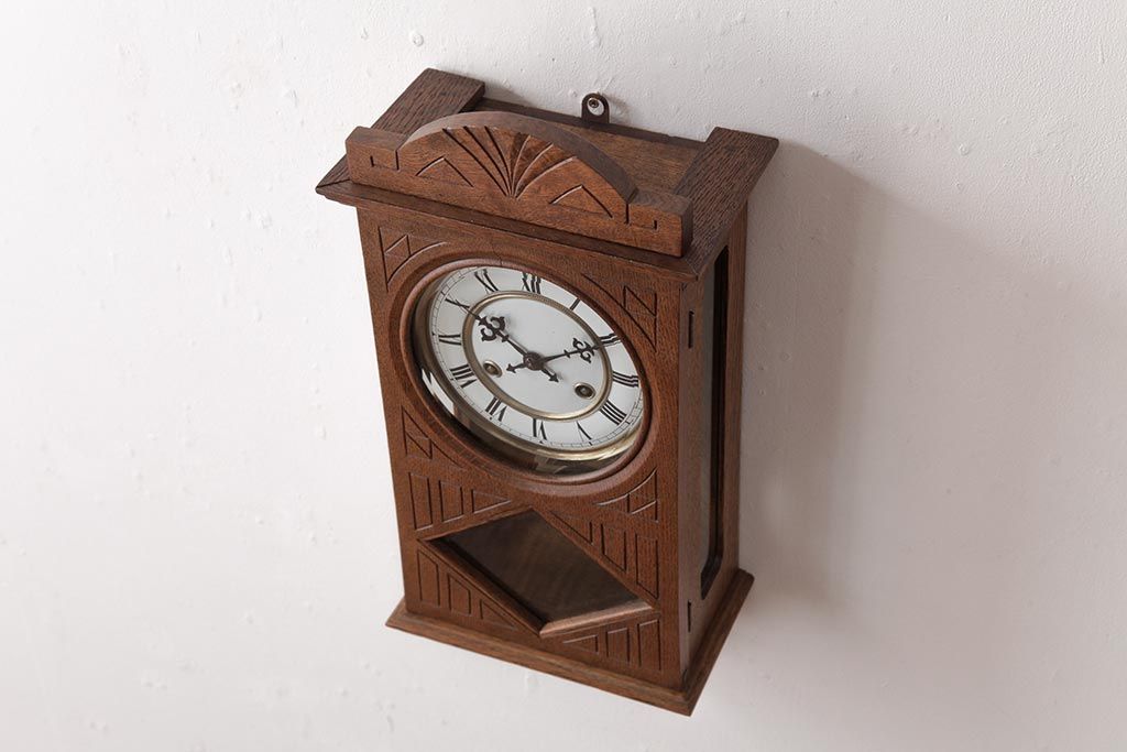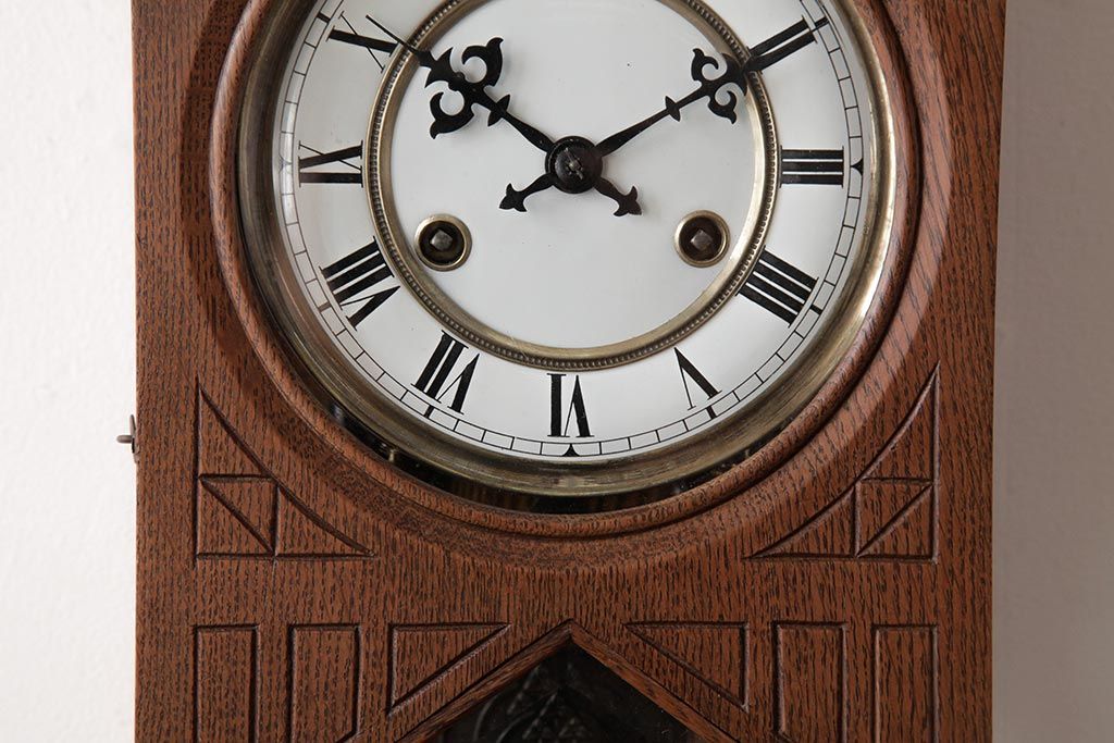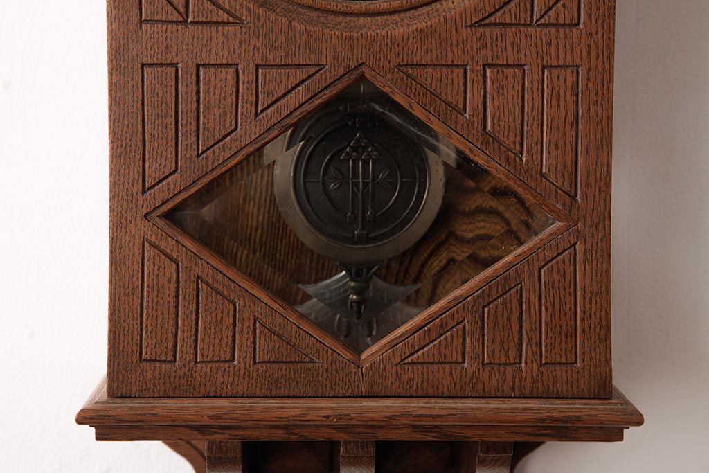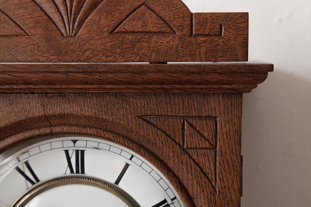 時計> 掛け時計 > アンティーク雑貨 ホーロー文字盤がおしゃれな手巻き式振り子時計(柱時計、掛け時計、古時計)(R-037642)